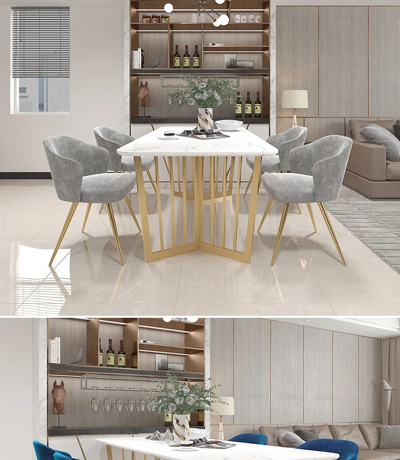 Nordic Minimalist Luxury Marble Dining Table Set for Small Spaces – Modern Rectangular Table and Chairs Combination for Home Use