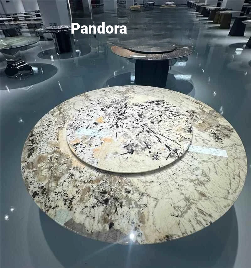 Pandora Natural Marble Round Dining Table - Luxurious Modern Design for Upscale Living Rooms and Spacious Homes