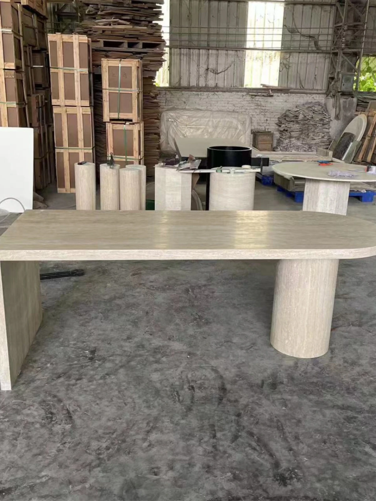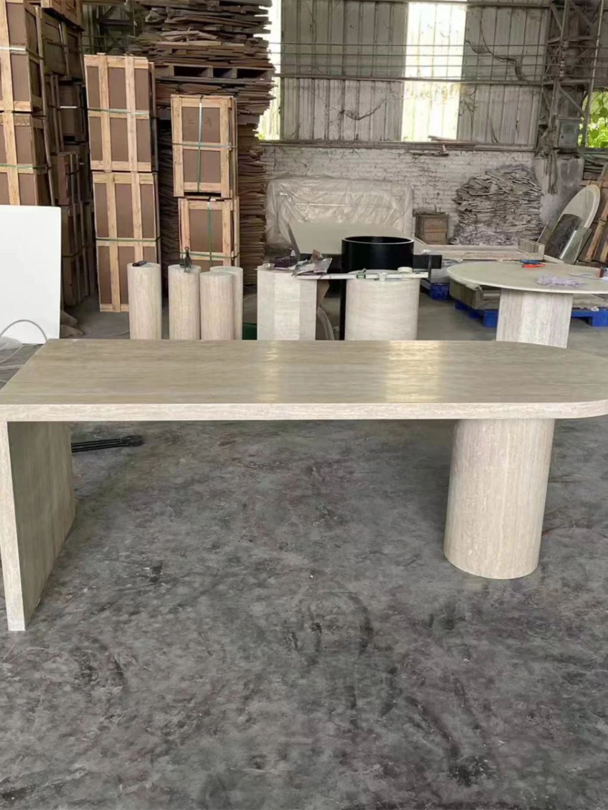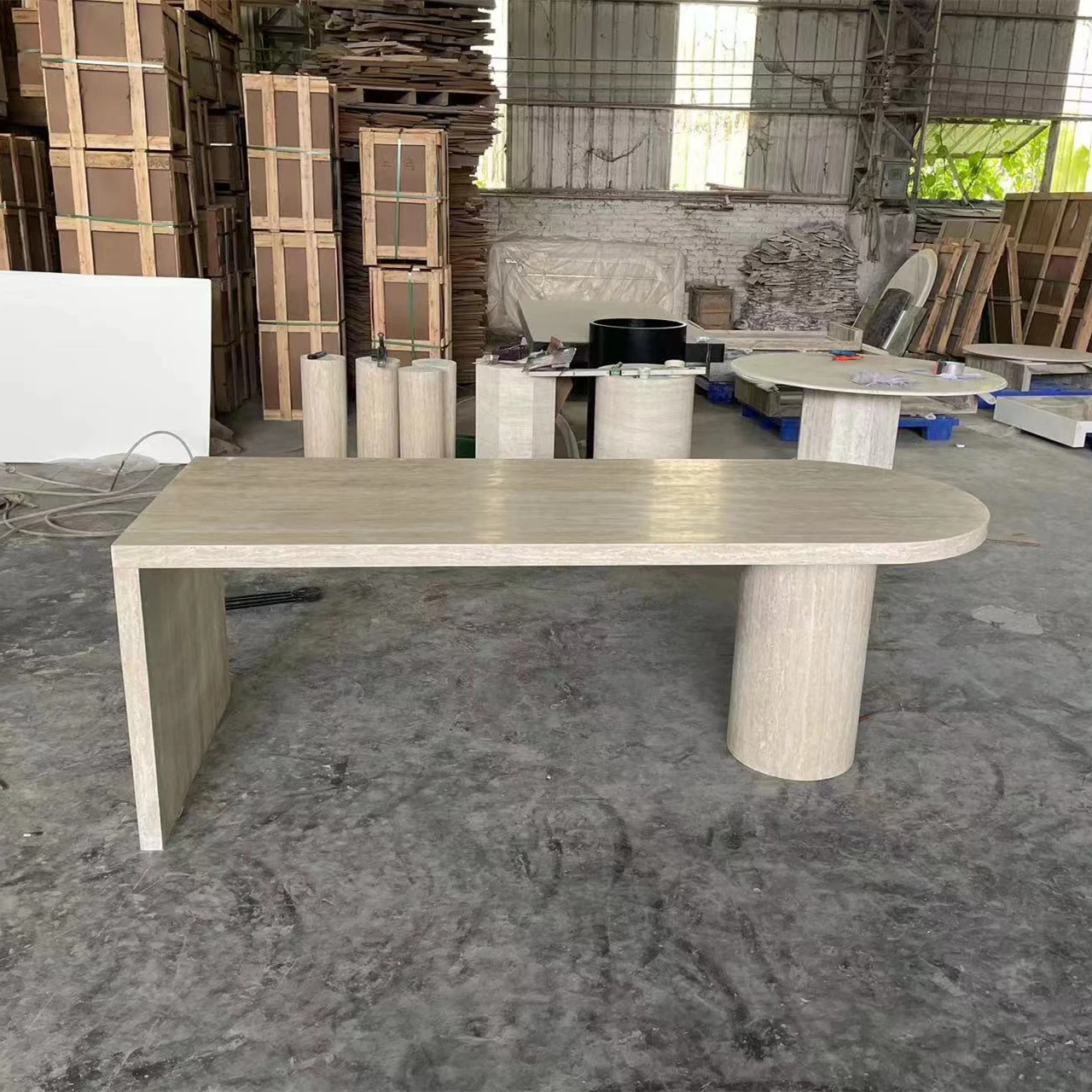 Premium European Style Natural Stone Dining Table - Elegant Rectangular Marble Island Table for Living Room and Home Use