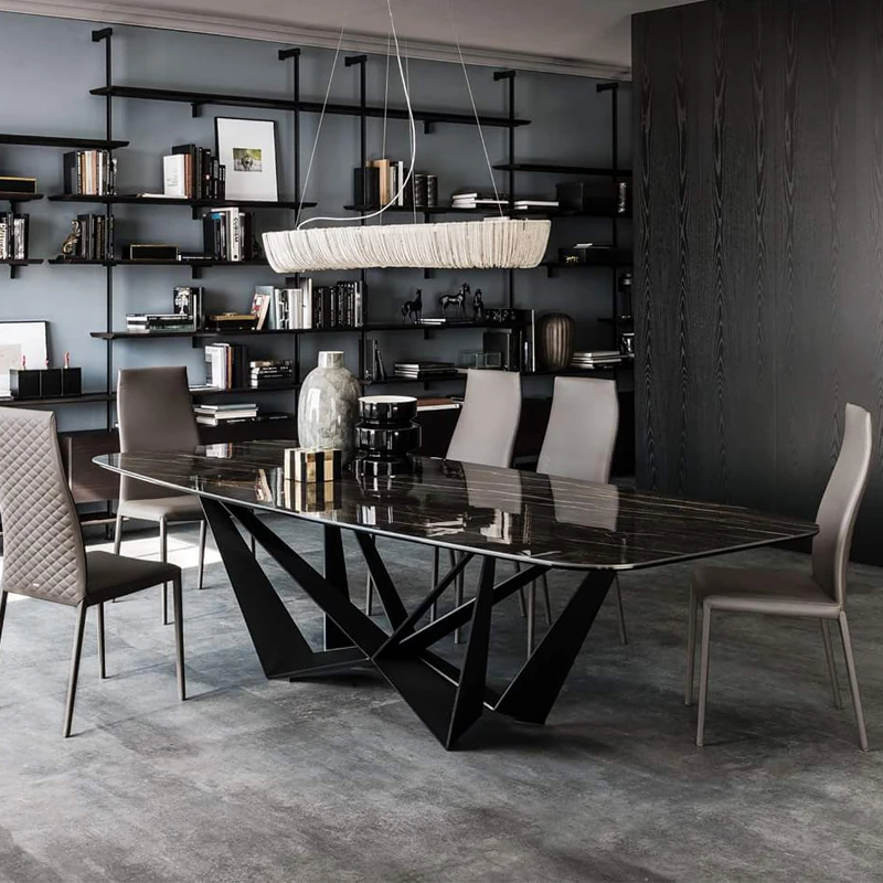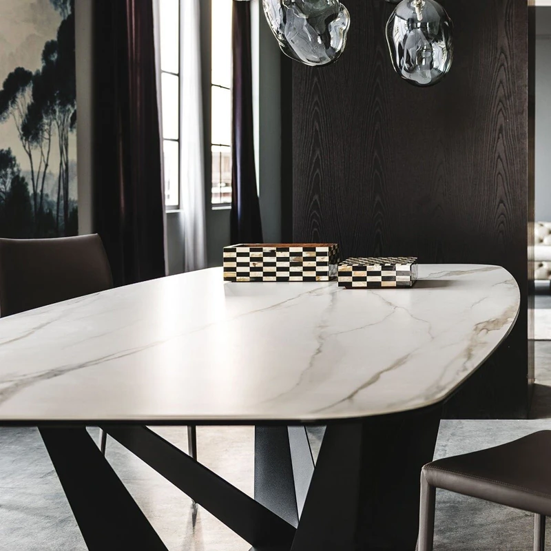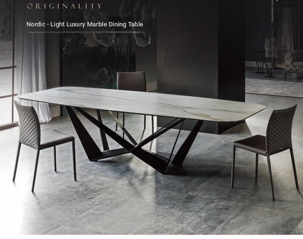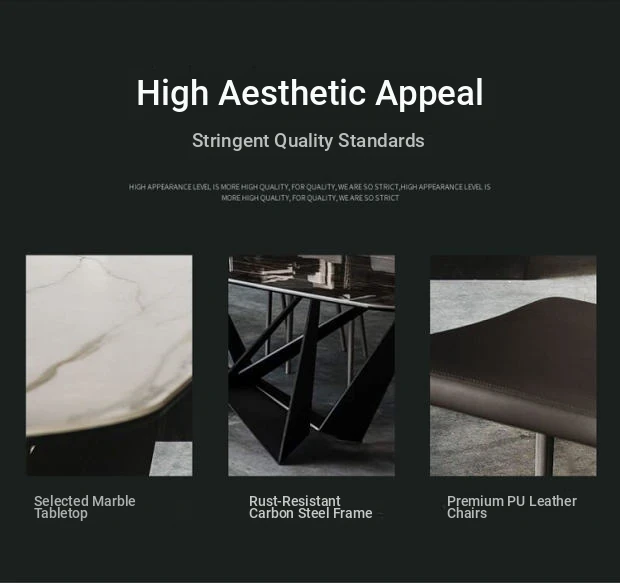 Scandinavian Marble Dining Table Set - Elegant Minimalist Design for Small Spaces, Modern Rectangular Table with Chairs, Perfect for Cozy Homes