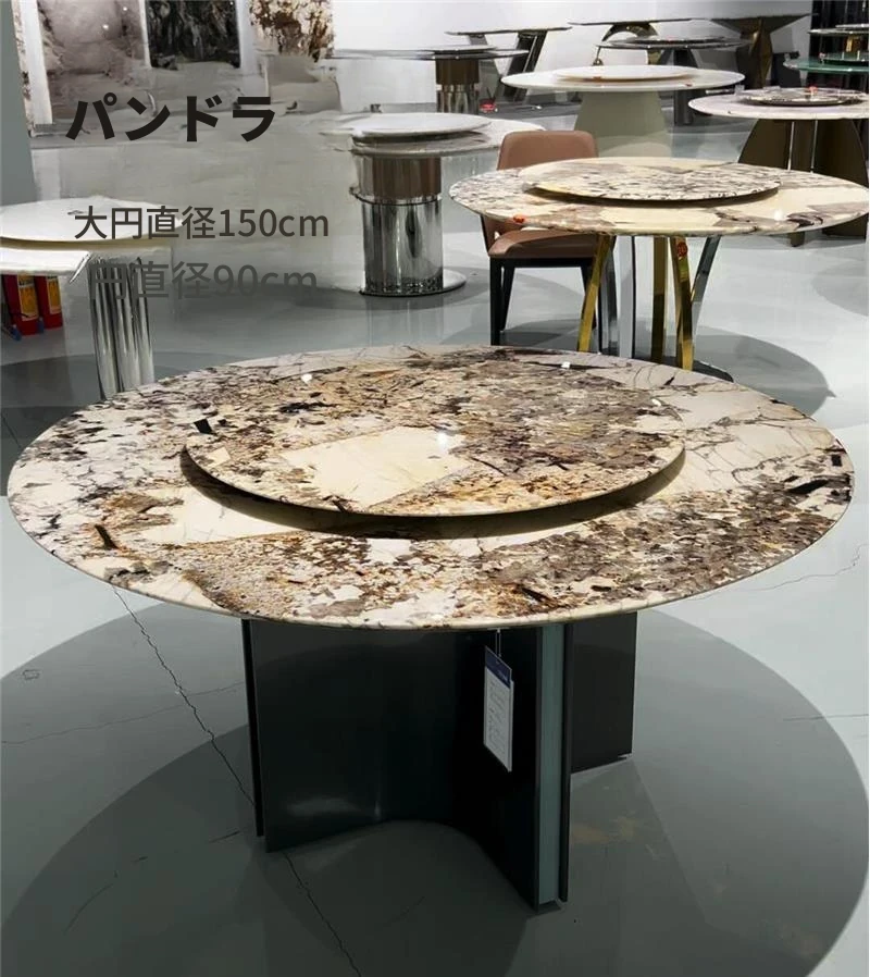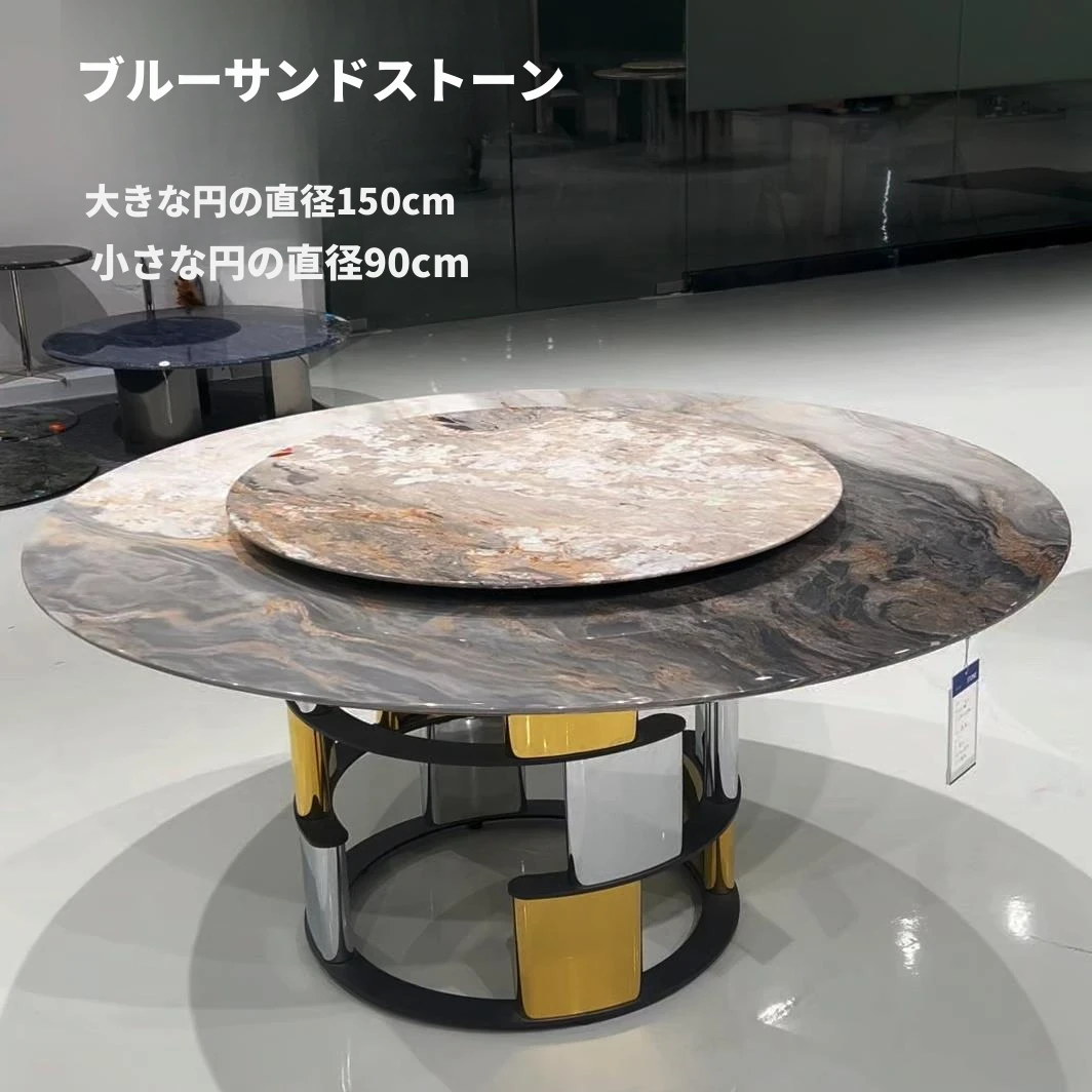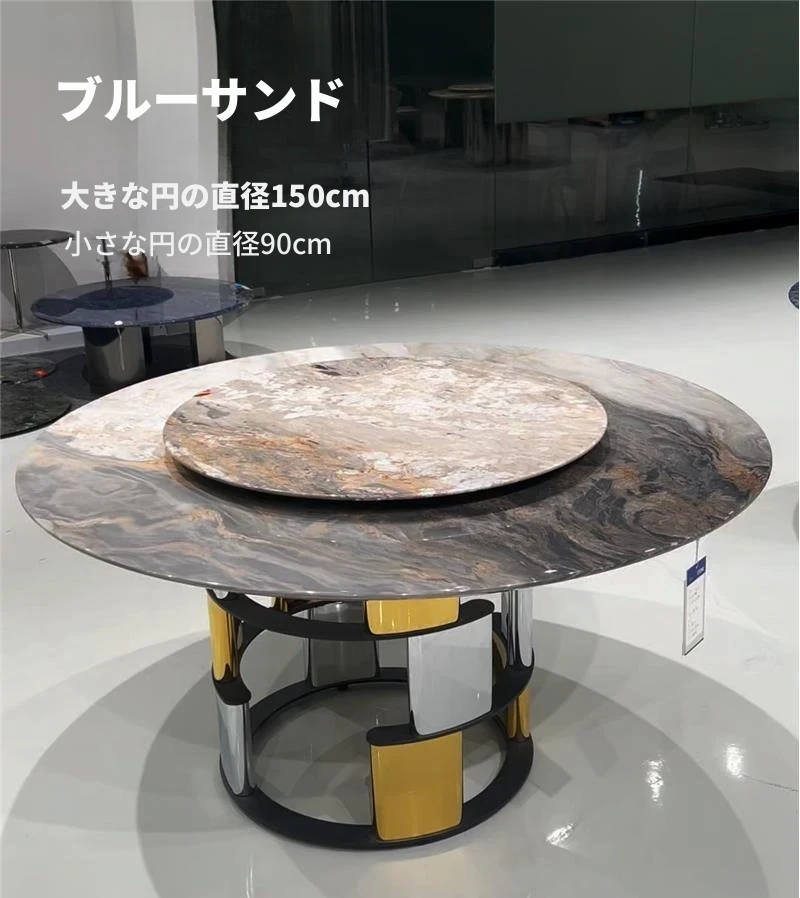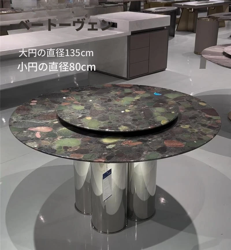 ベートーヴェン大理石ラウンドダイニングテーブル - 高級イタリアンシック&エレガントな回転式テーブルセット、家庭用ダイニングチェア付き。贅沢な食事空間を演出し、特別なひとときをお楽しみください。