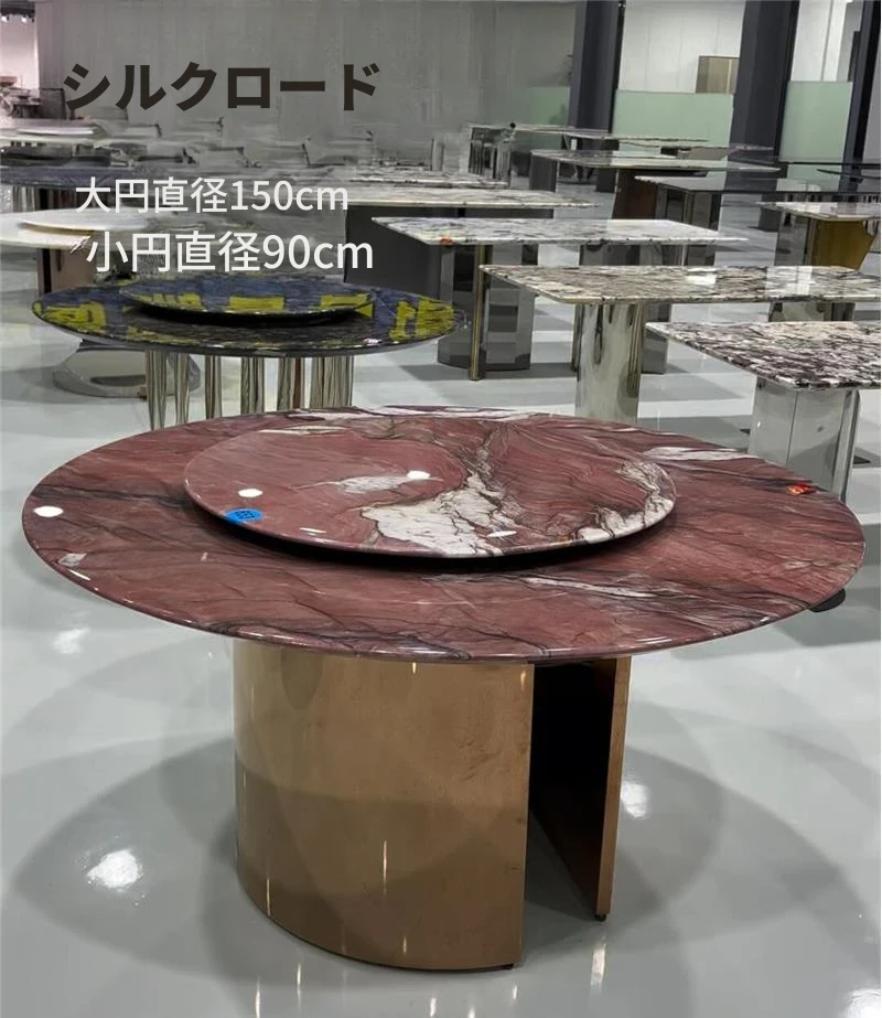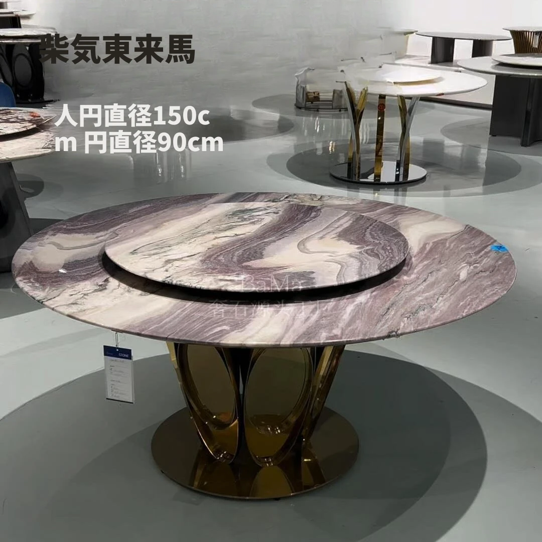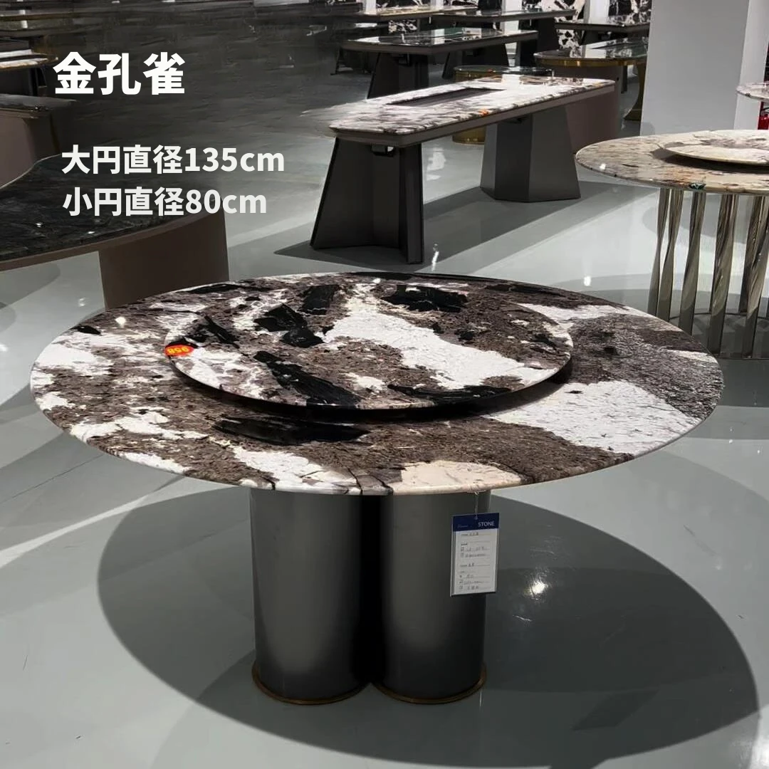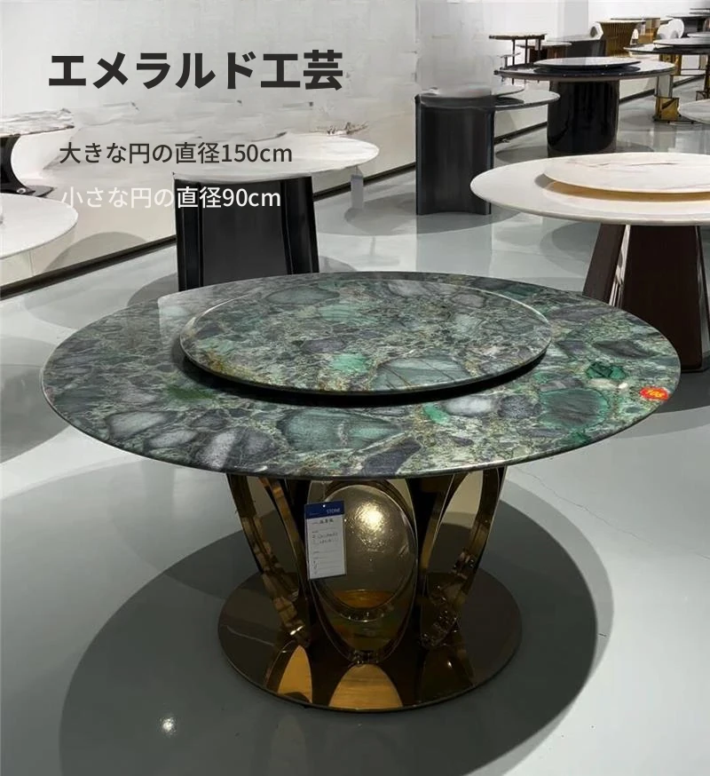 ベートーヴェン大理石ラウンドダイニングテーブル - 高級イタリアンシック&エレガントな回転式テーブルセット、家庭用ダイニングチェア付き。贅沢な食事空間を演出し、特別なひとときをお楽しみください。