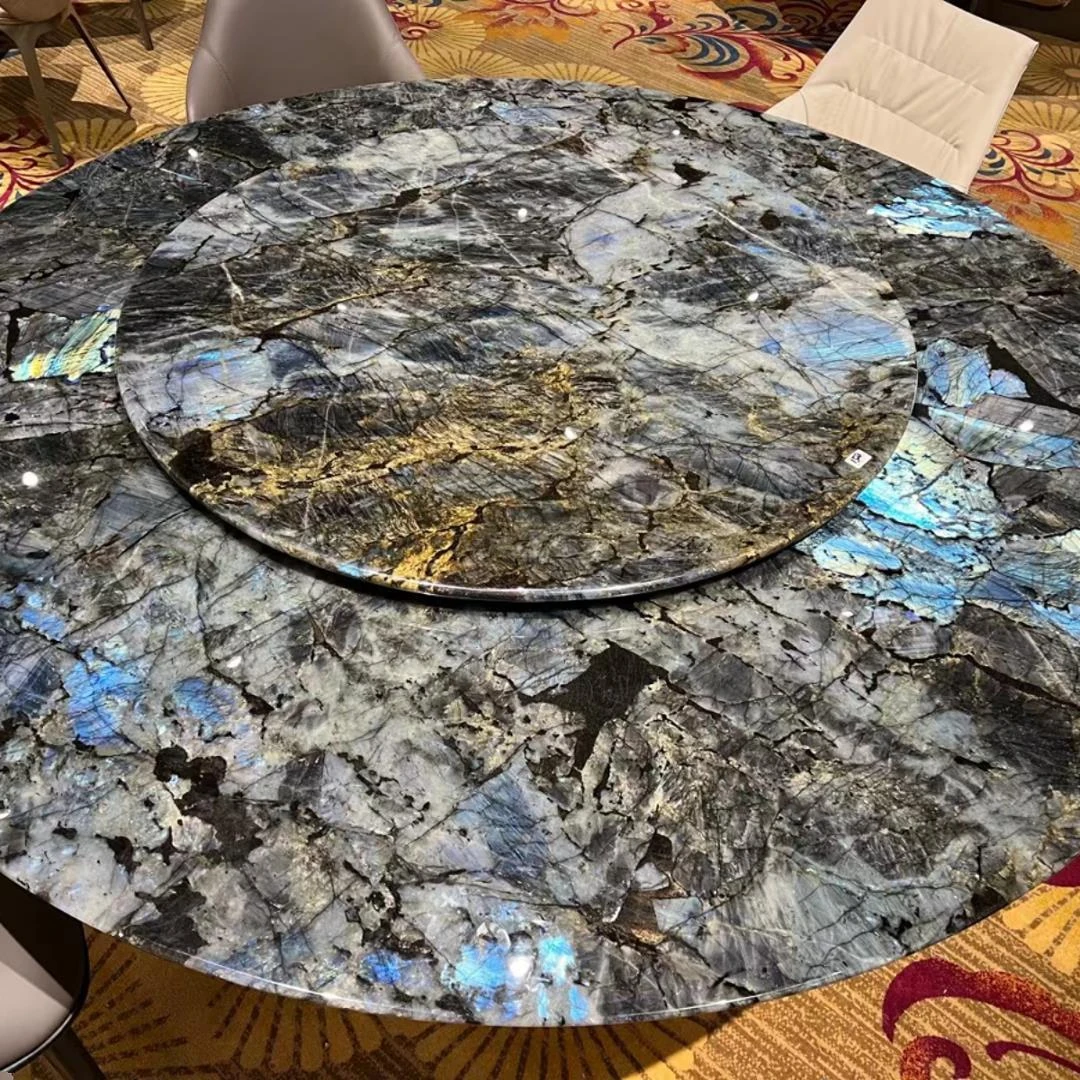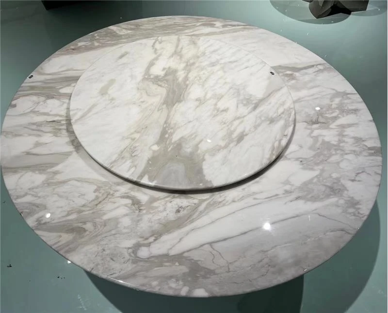 デザイナー完全プロデュース!天然大理石ラウンドダイニングテーブル - 高級ホテルや豪邸にぴったりのモダンリビング向け、上質な家用テーブルで、洗練された空間を演出します。