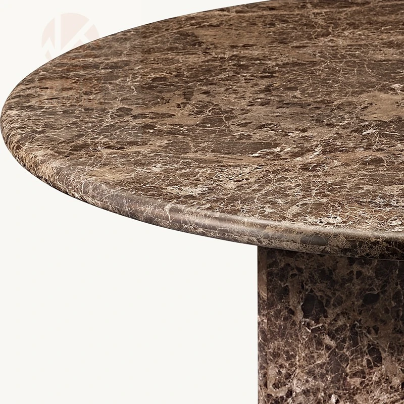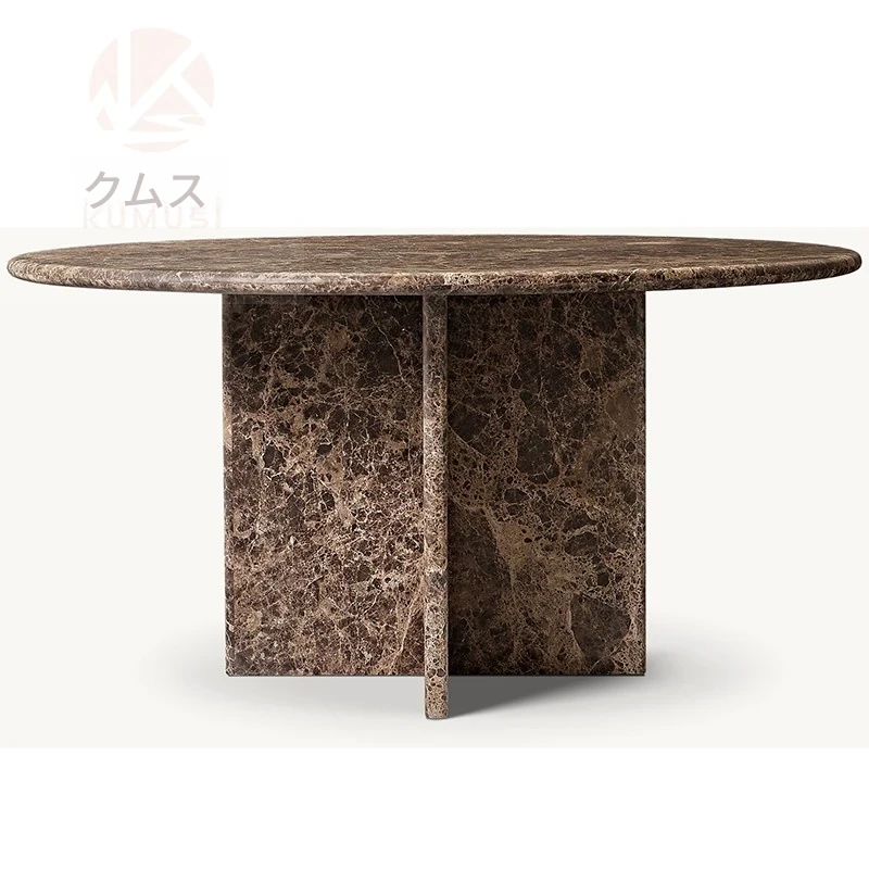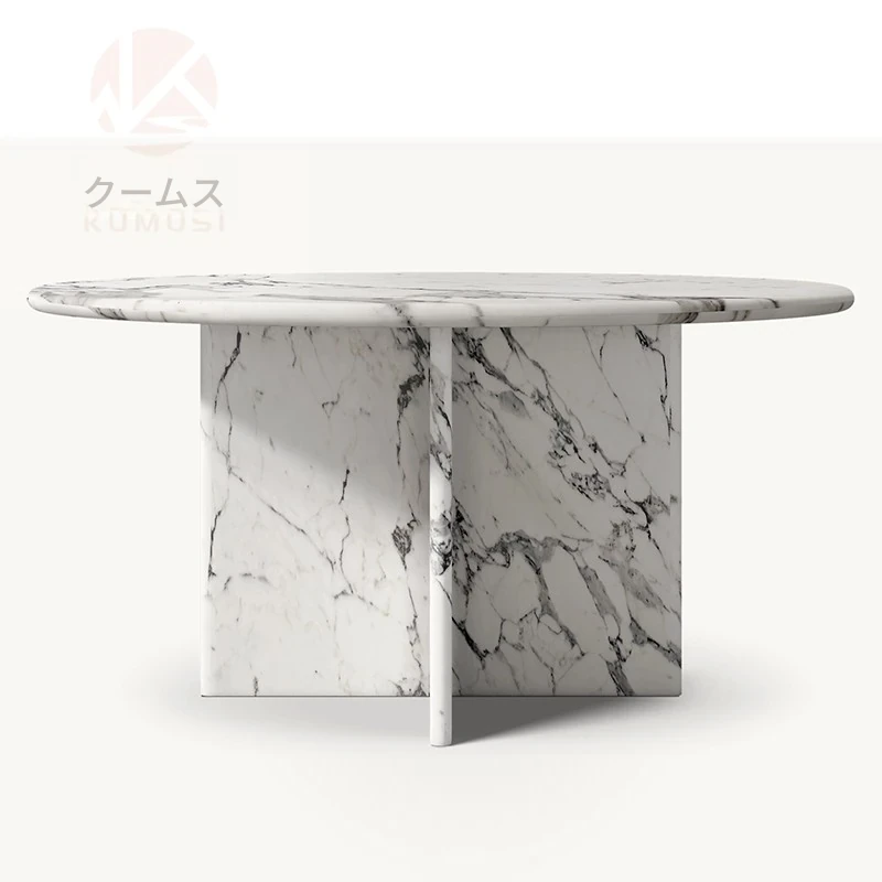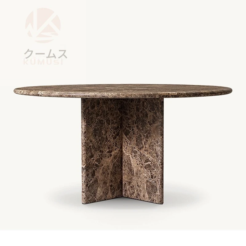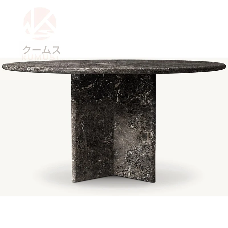 イタリア産天然大理石のデザイナーラウンドテーブル - ラグジュアリーな侘寂スタイルで、別荘やリビングに最適!優雅な雰囲気を演出し、家族や友人との特別なひとときを彩ります。