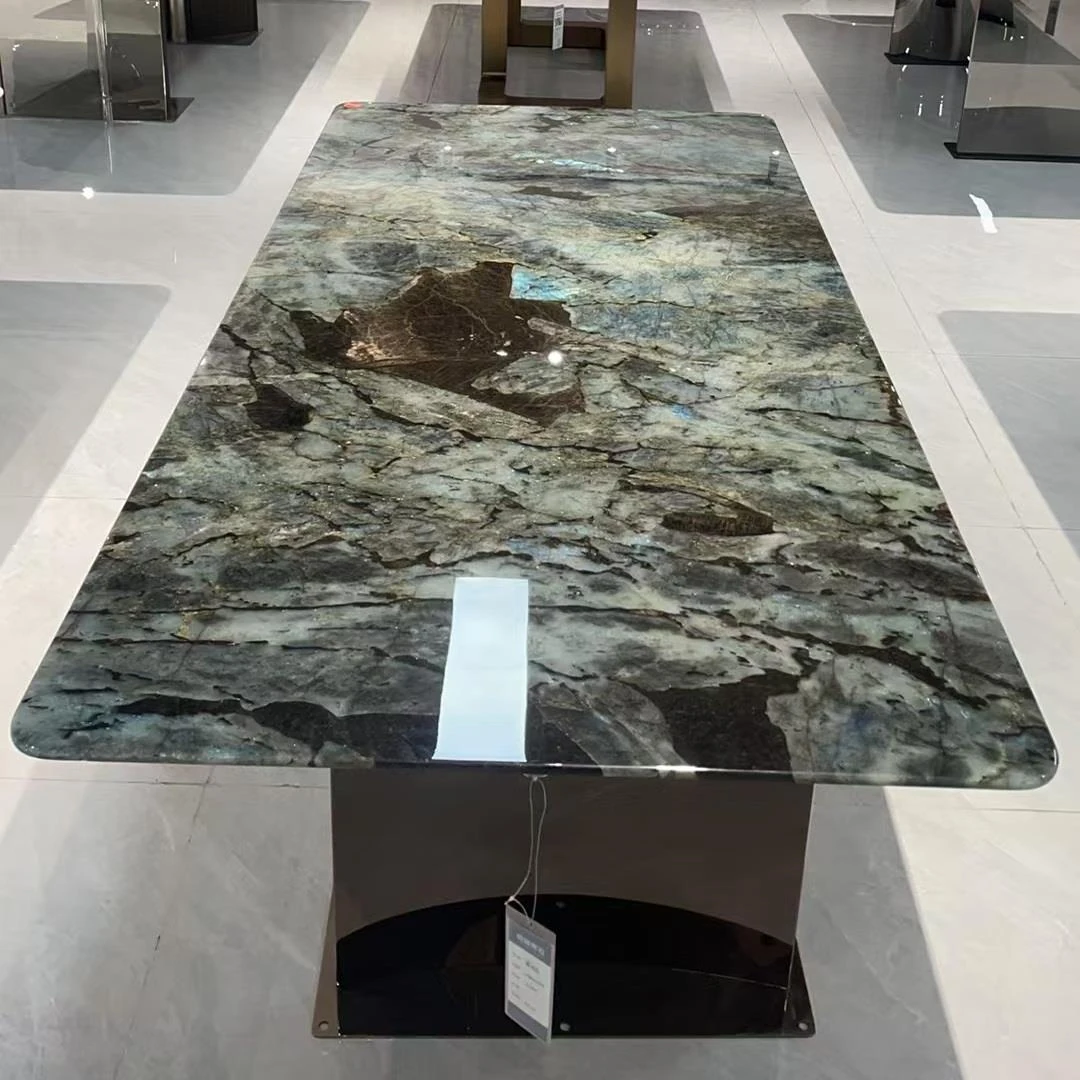 デザイナー全案の豪華輸入天然大理石ダイニングテーブル&チェアセット - エレガントな長方形の食卓で、贅沢な食事体験をお楽しみください。高品質な素材と洗練されたデザインで、あなたのダイニングルームを特別な空間に演出します。