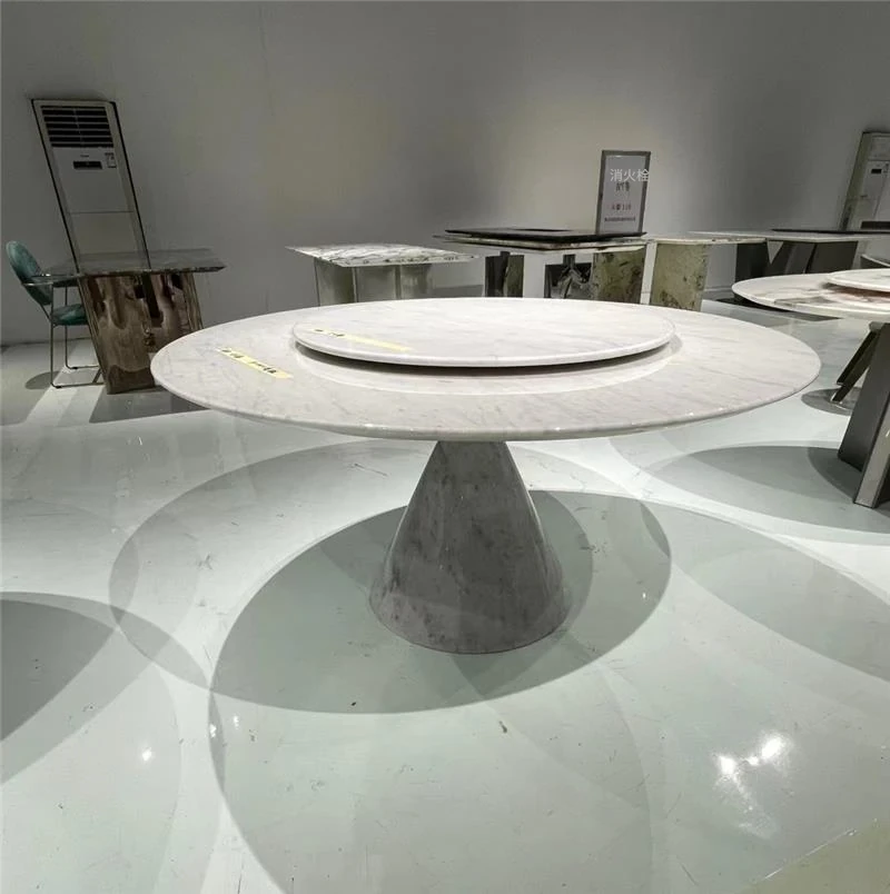 デザイナーによるフルプラン大平面ラグジュアリー天然大理石ダイニングテーブル - モダンでシンプルな高級食卓、上質な空間を演出!