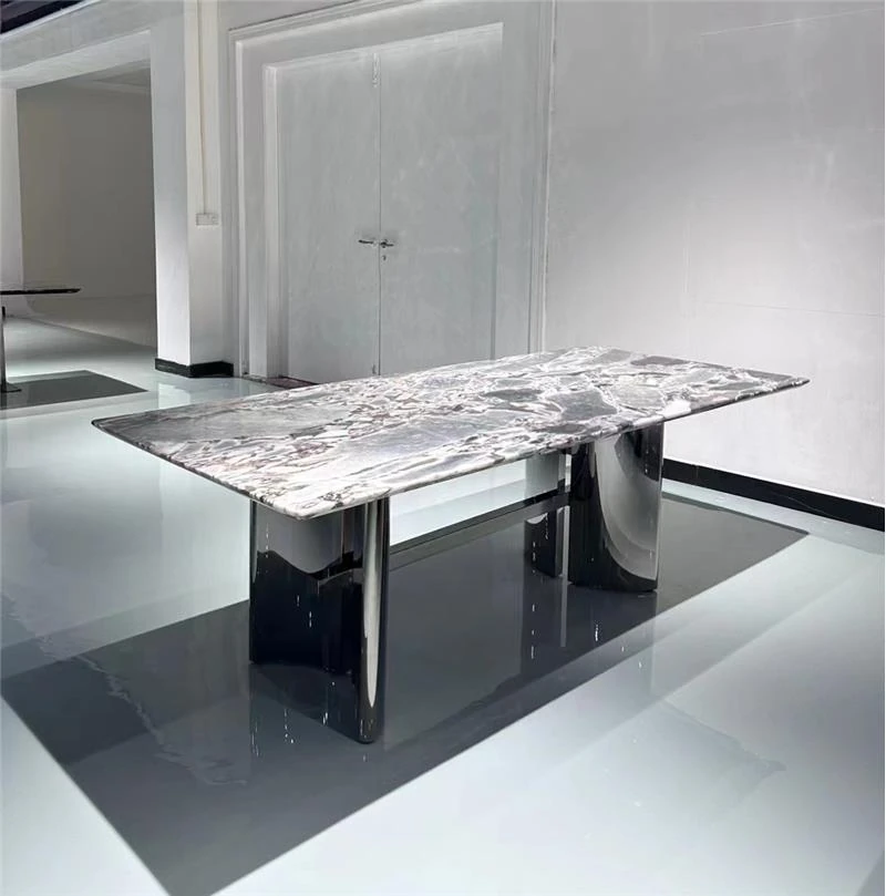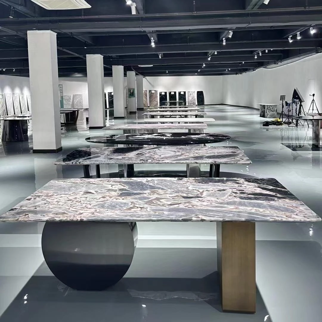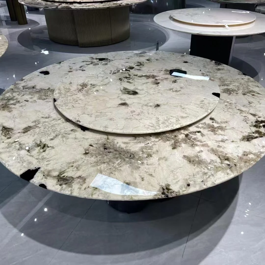 デザイナーが手掛けた高級輸入石材のダイニングテーブル&チェアセット、天然大理石のラウンドテーブル。別荘や家庭にぴったりの洗練されたデザインで、上質な食事のひとときを演出します。