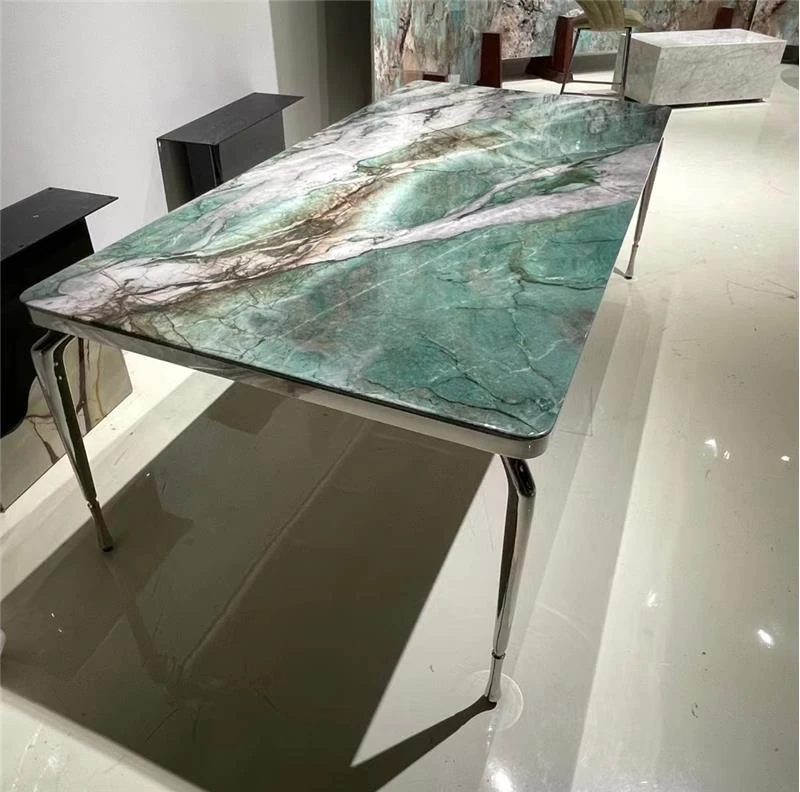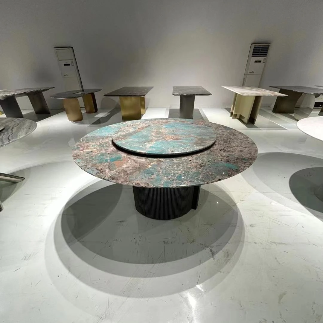 デザイナー完全提案のラグジュアリー天然大理石ダイニングテーブル、10人用!ホテルやクラブにぴったりのイタリアン軽豪華スタイル、別荘にも最適な贅沢な石の美しさを体感してください。