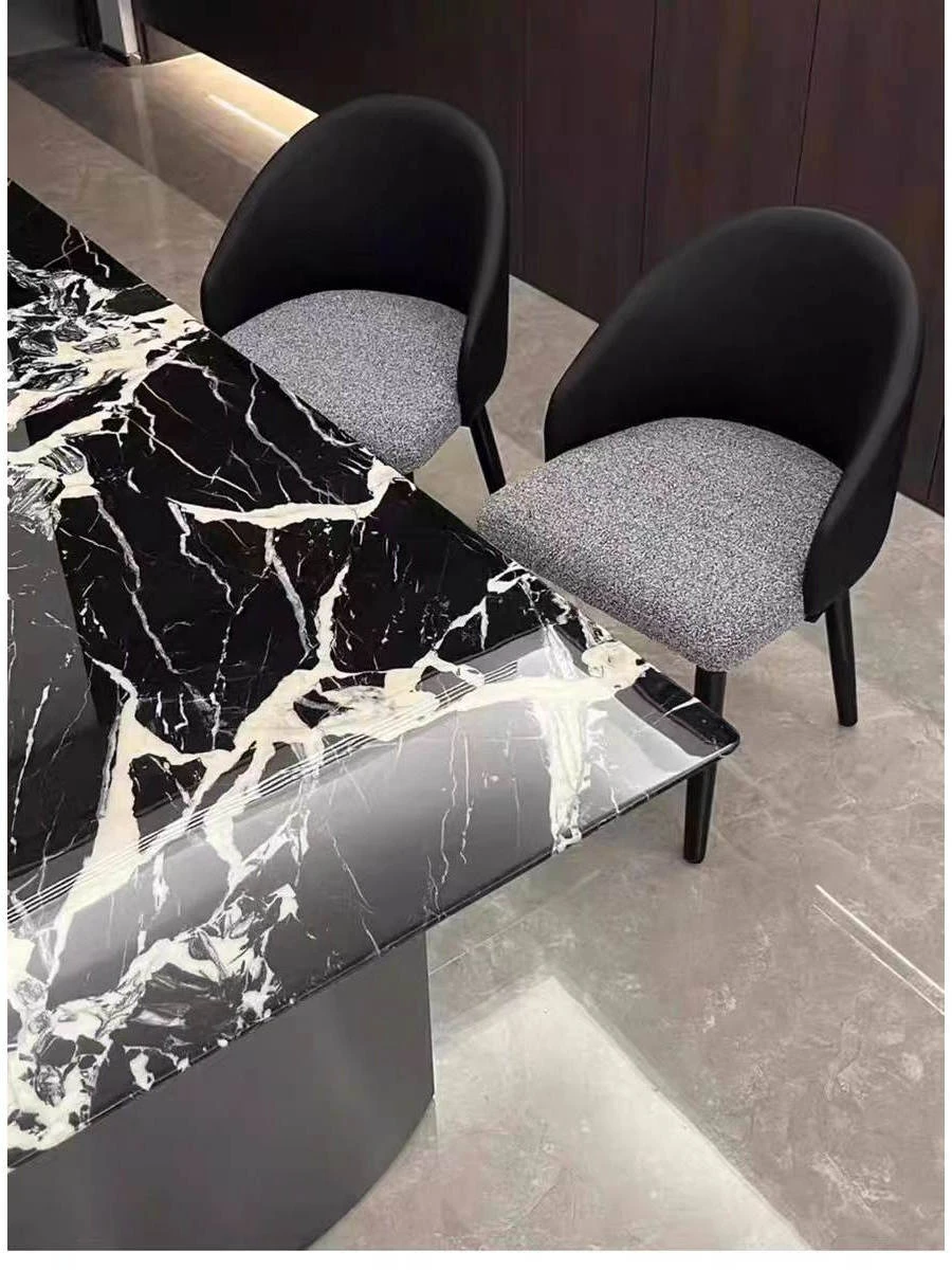 デザイナーの小型ダイニングルームに最適!現代的な長方形の高級ストーンプラチナダイヤモンド天然大理石ダイニングテーブル。おしゃれで洗練された空間を演出し、特別な食事のひとときを提供します。