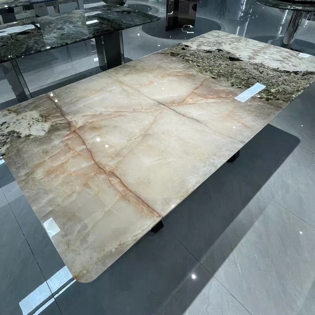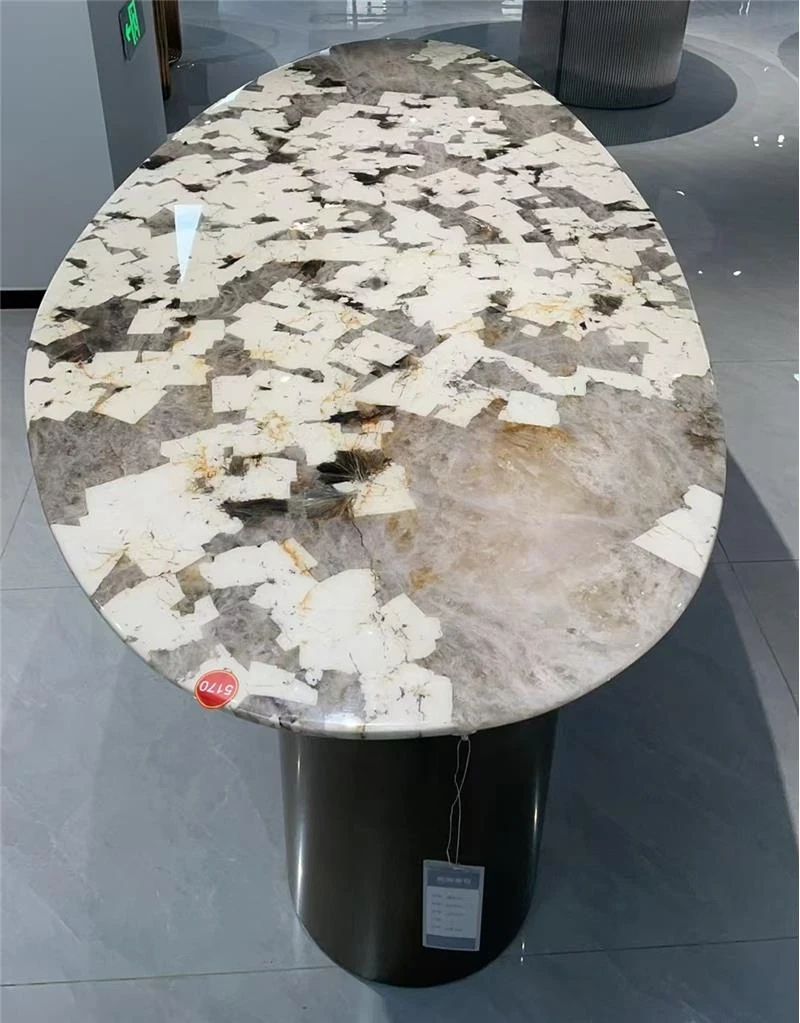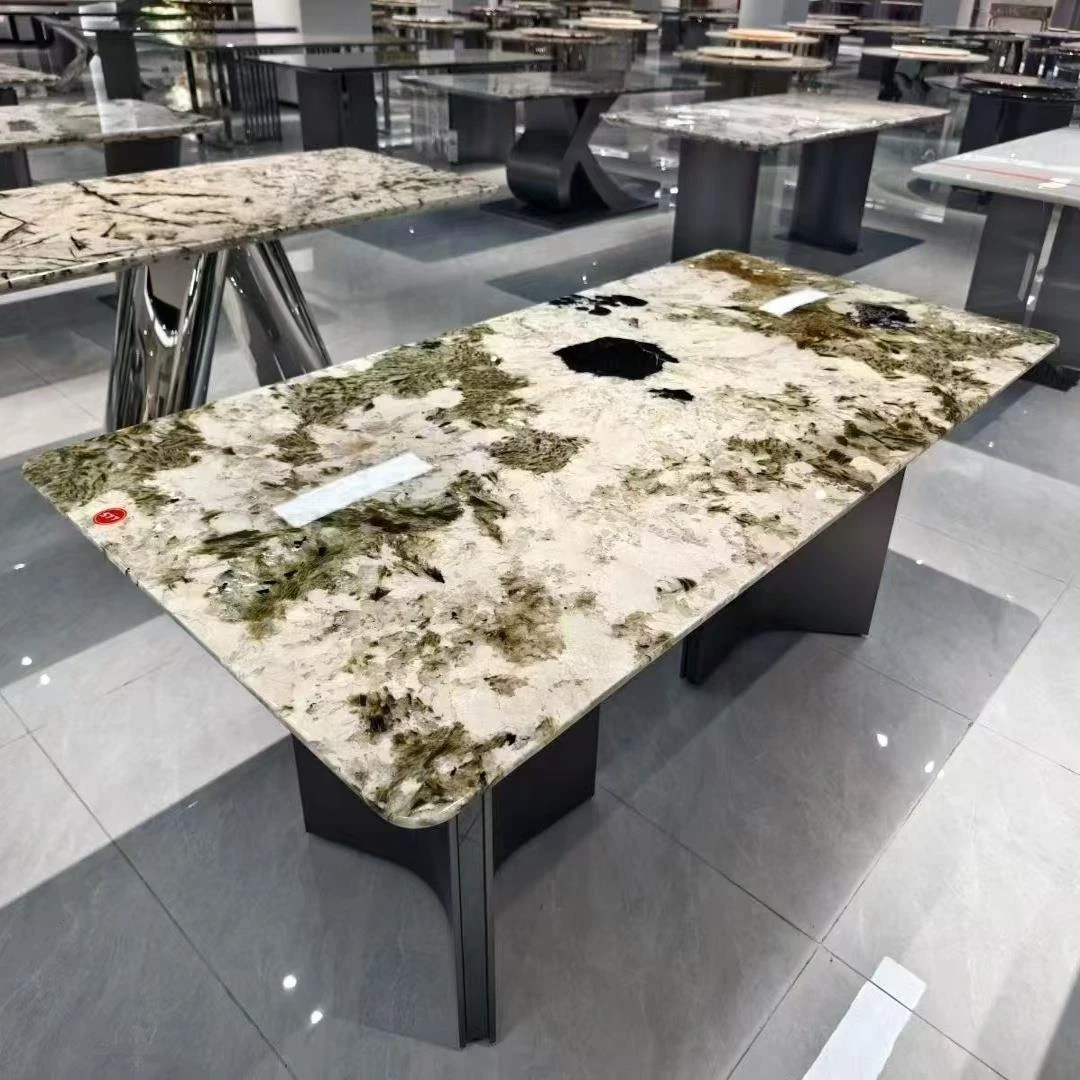 デザイナー完全プロデュースの天然大理石ラウンドテーブル - 高級感あふれるイタリアンライトラグジュアリー、別荘や広々とした住居に最適な高級ダイニング体験を提供します。