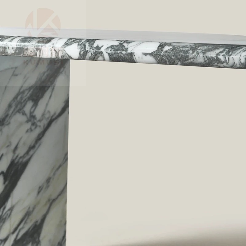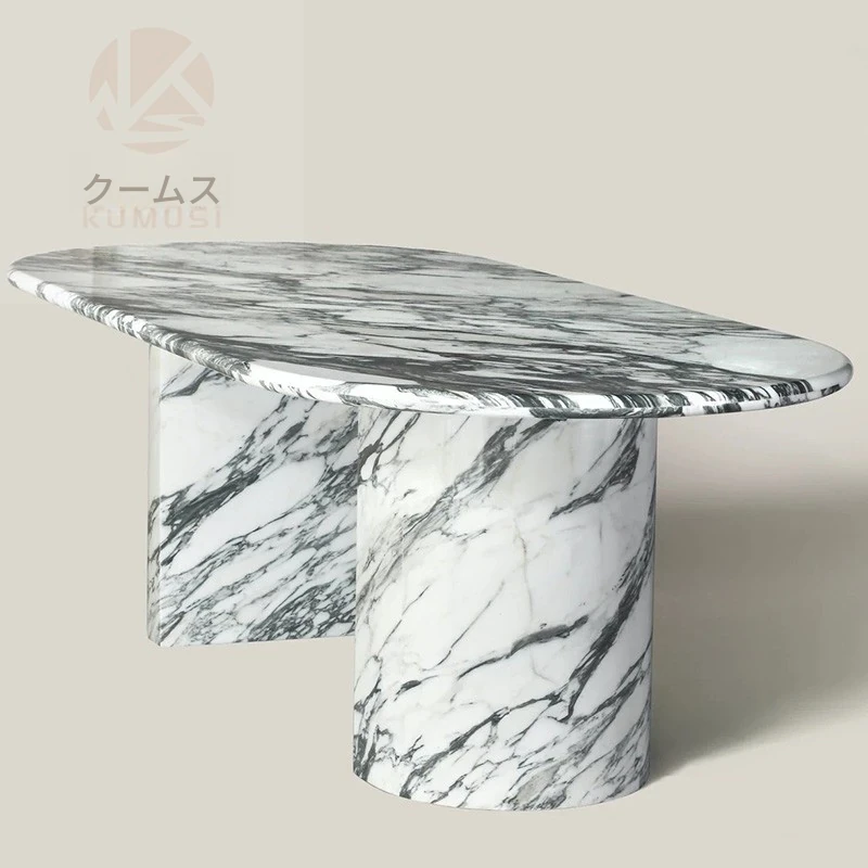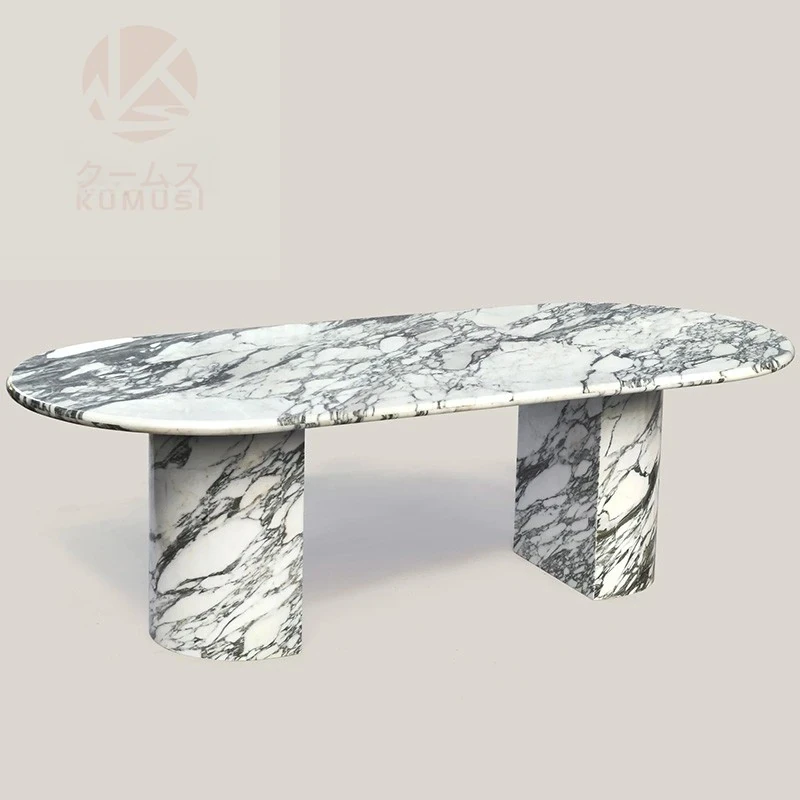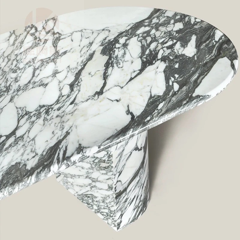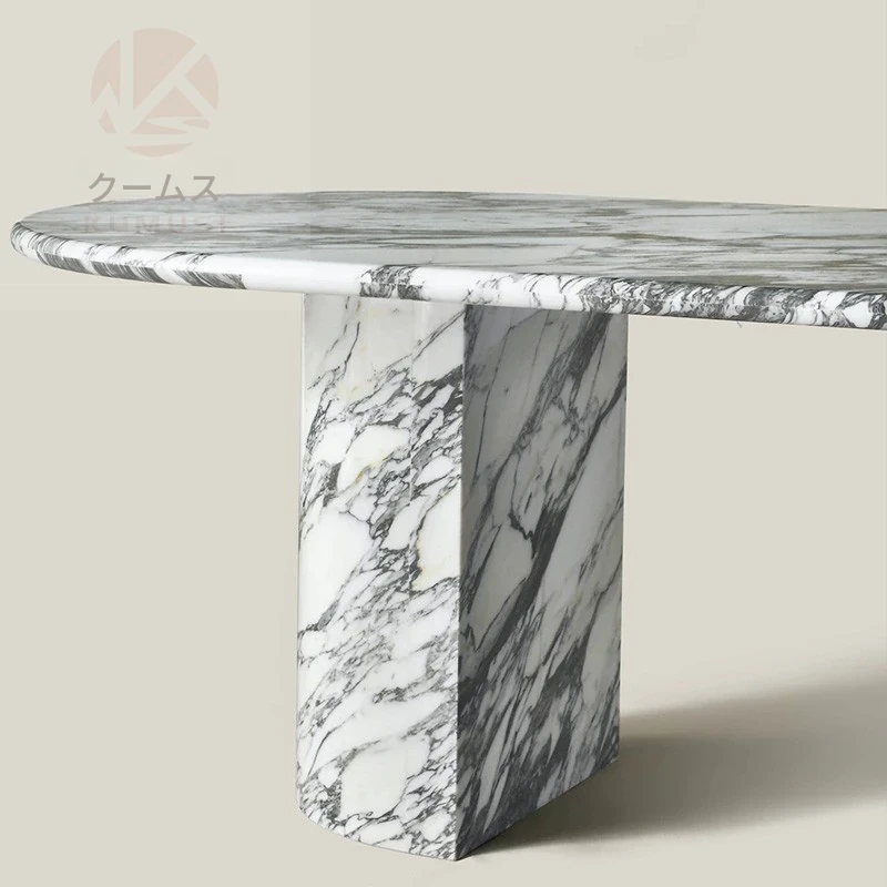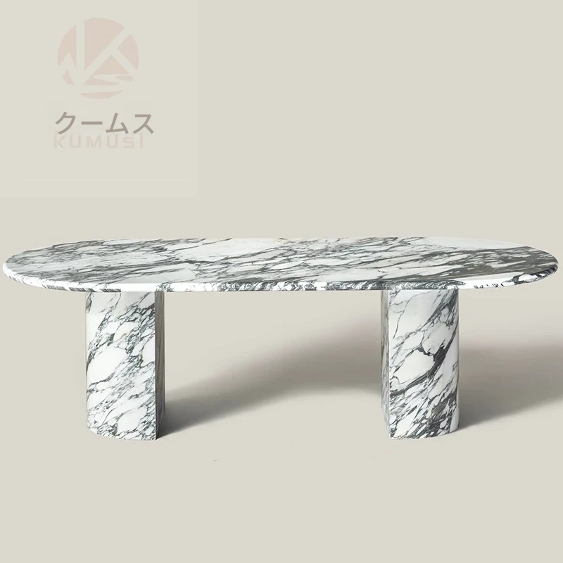 天然大理石のデザイナーズダイニングテーブル - ヴィラやリビングにぴったりな軽奢モダン・シンプルな楕円形デザイン。おしゃれで優雅な空間を演出し、特別なひとときをお届けします。