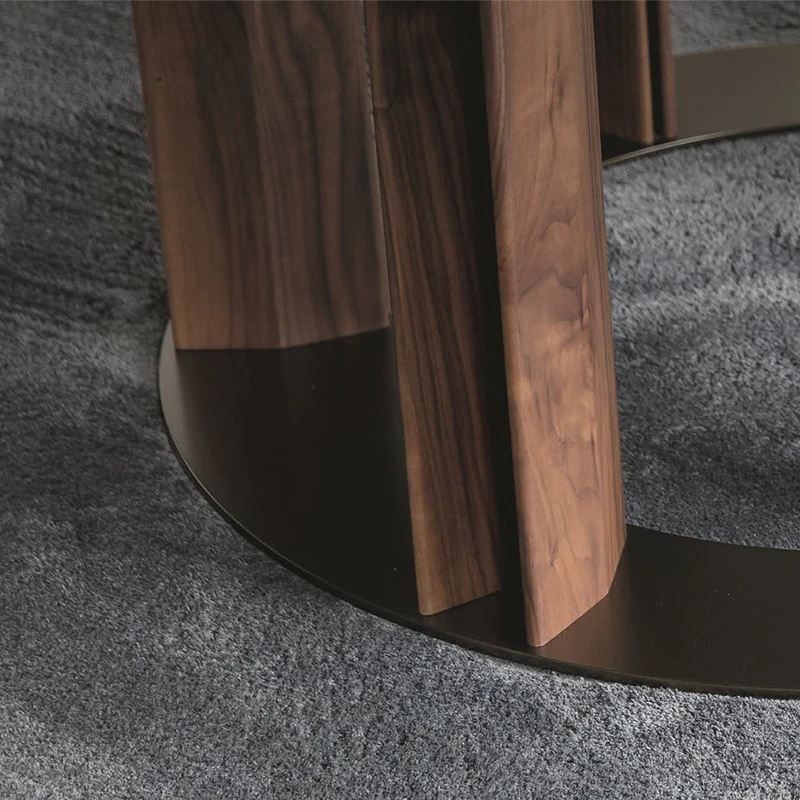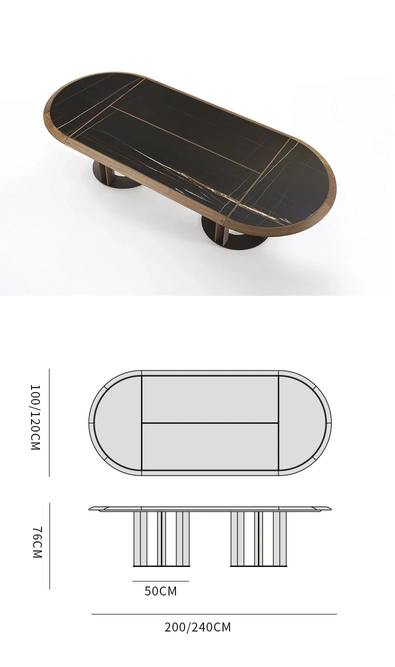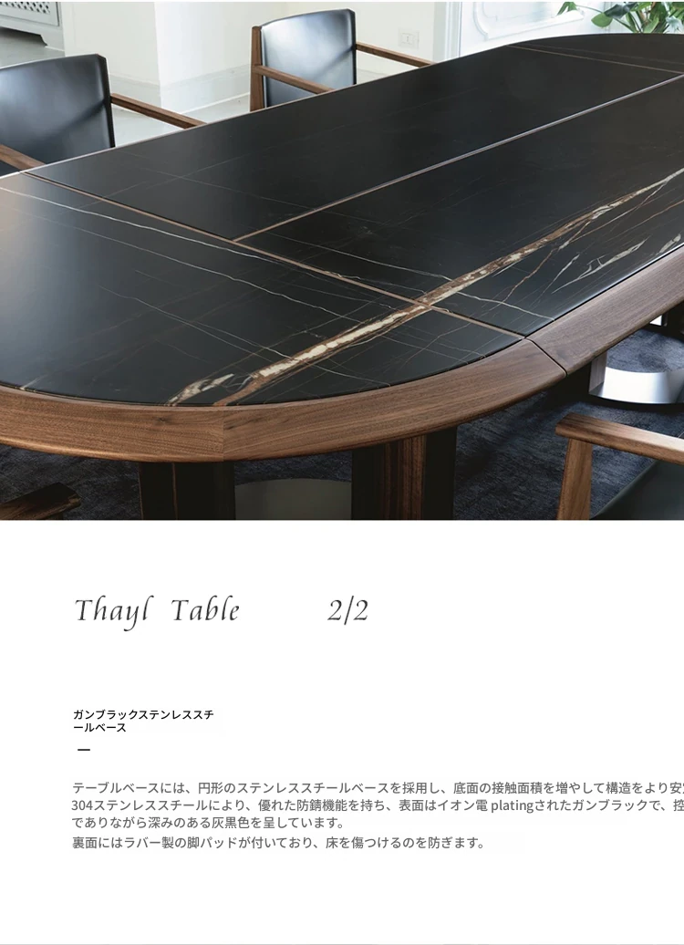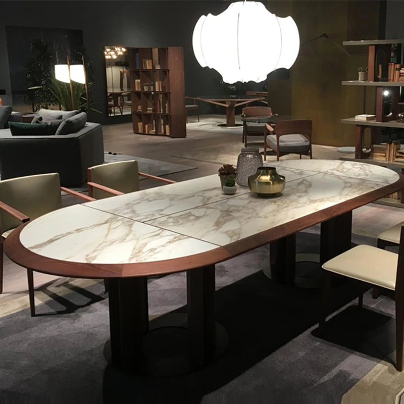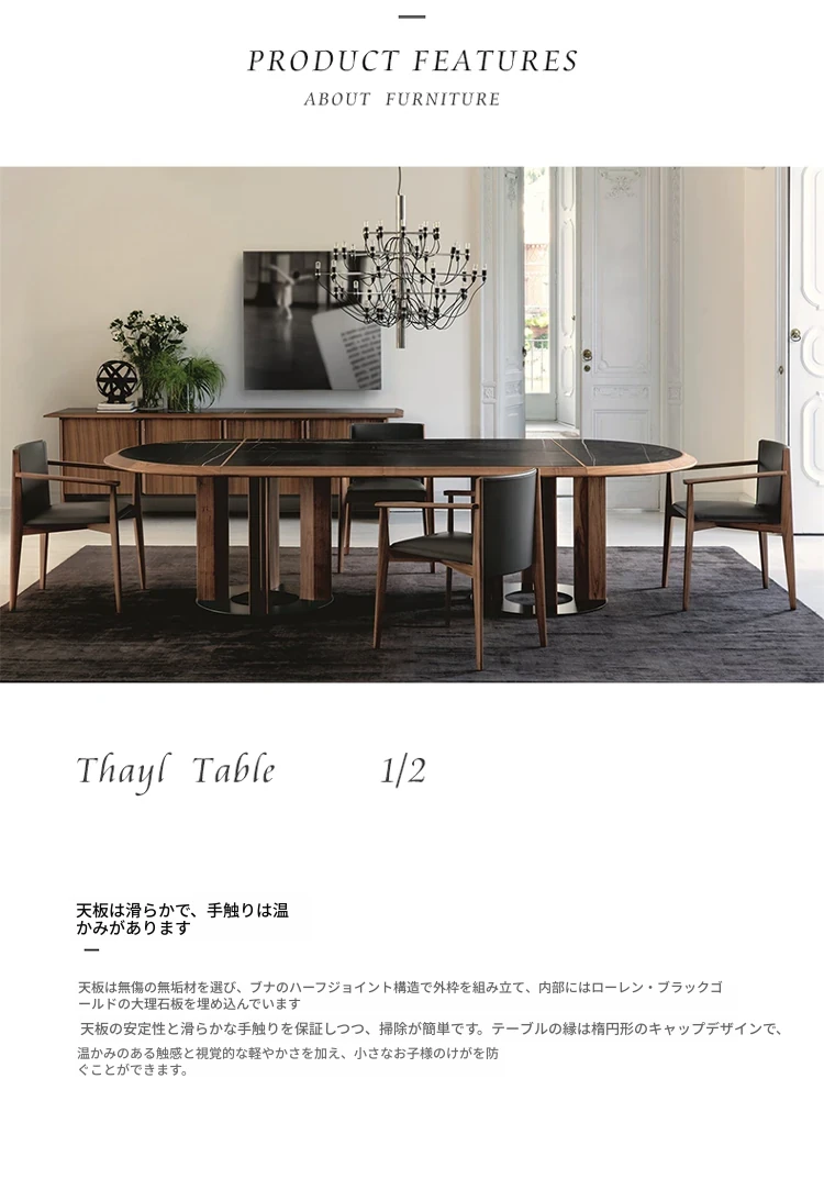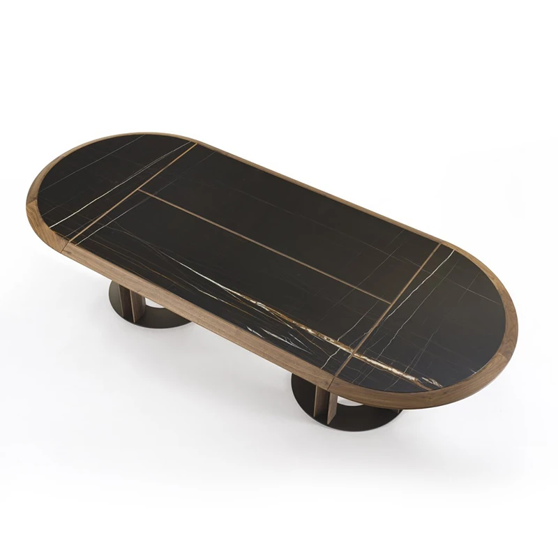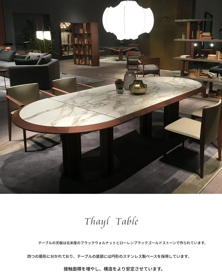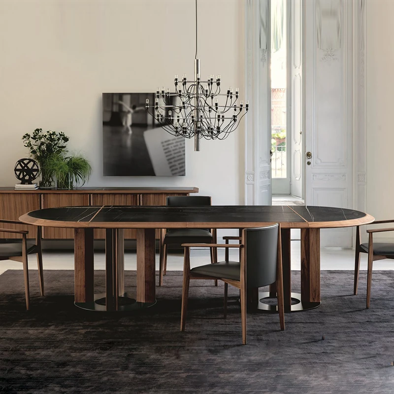 イタリアン・ブラックウォールナット・大理石・エレガントなオーバルダイニングテーブルセット - 高級感あふれる全木製、広々とした空間に最適なヴィラスタイルのダイニング家具!