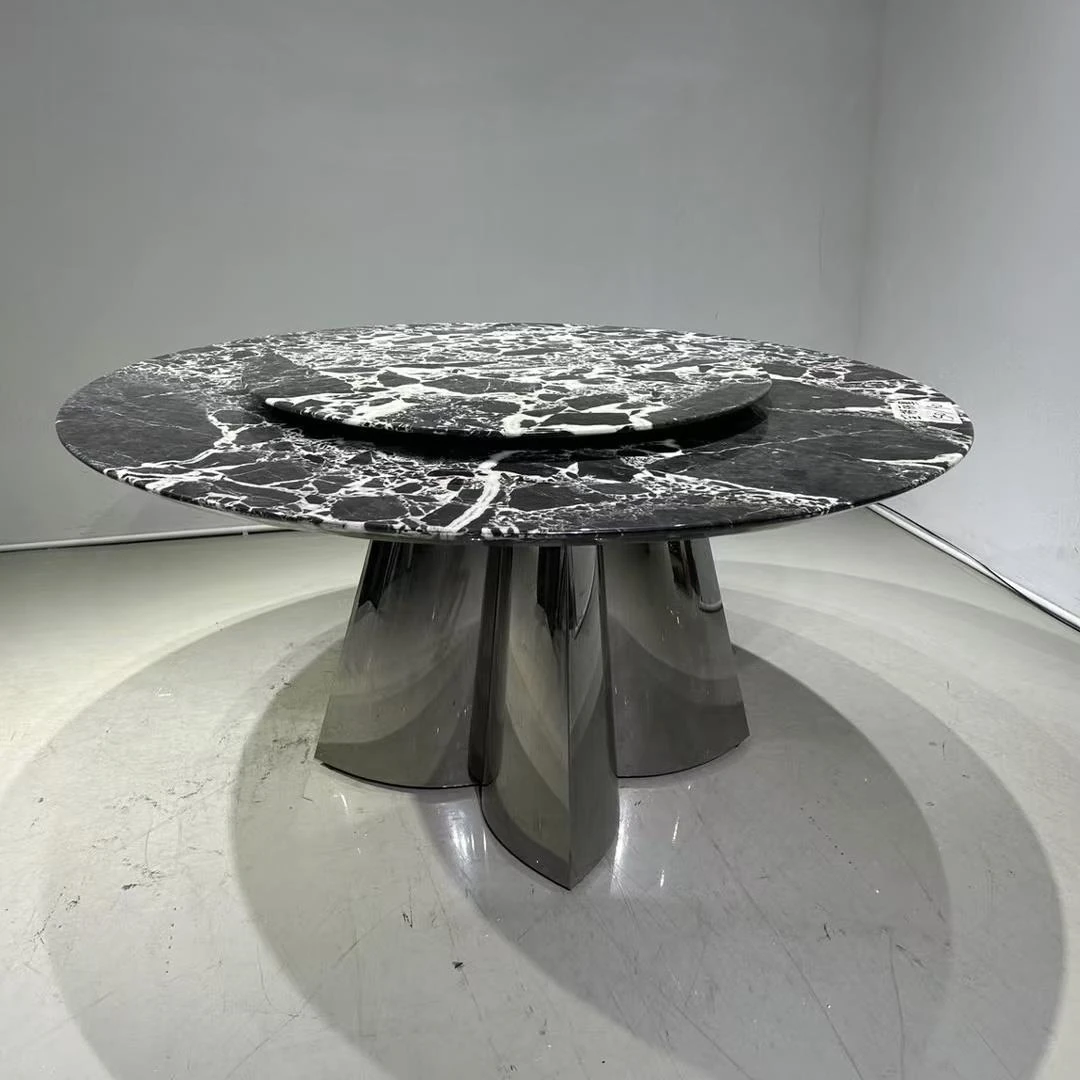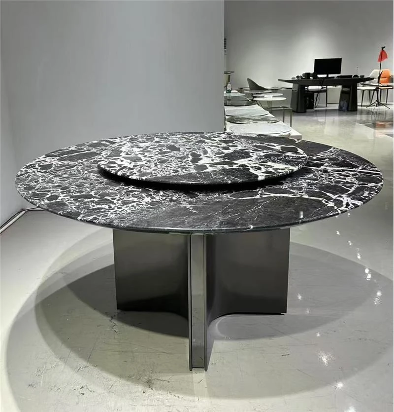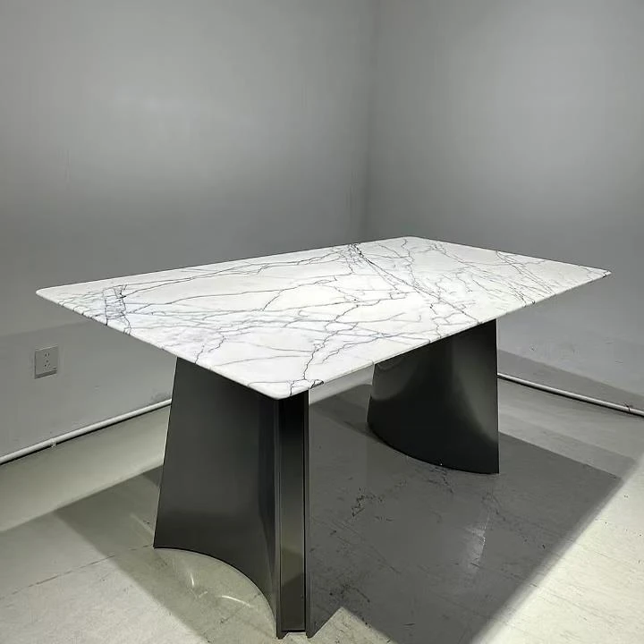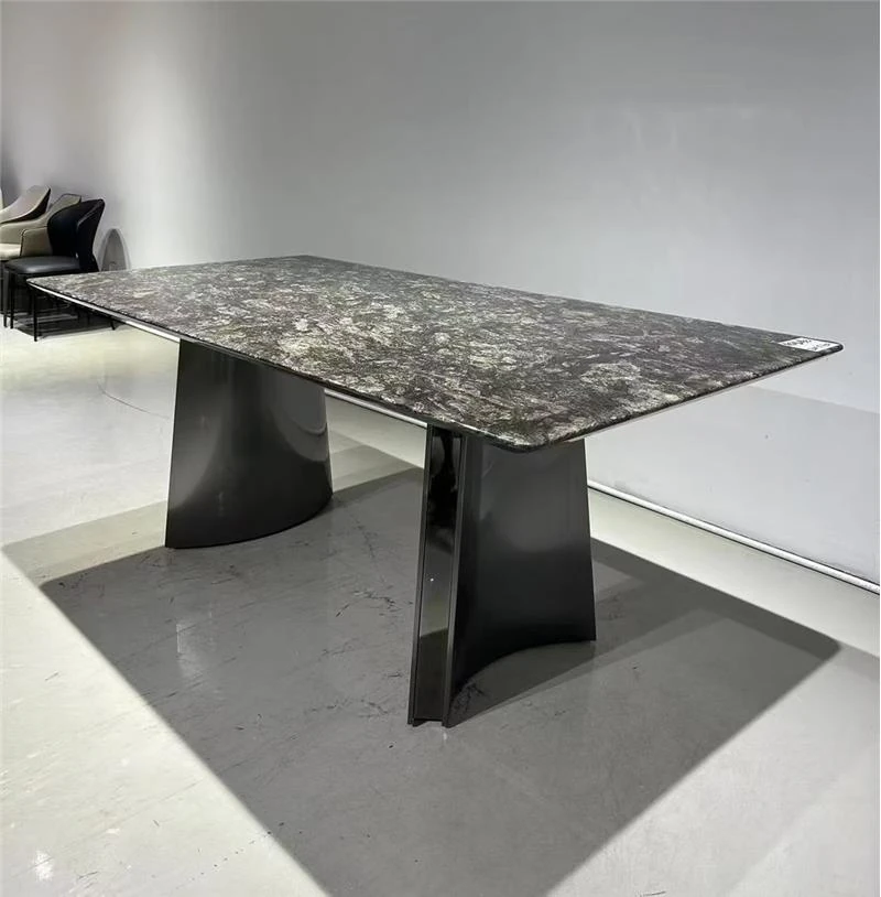 高級感溢れるイタリアンスタイルのダイニングテーブルセット - 大理石製の長方形テーブルと椅子のコンビネーション、別荘や広々としたリビングに最適!豪華な雰囲気で、家族や友人との特別な食事を演出します。