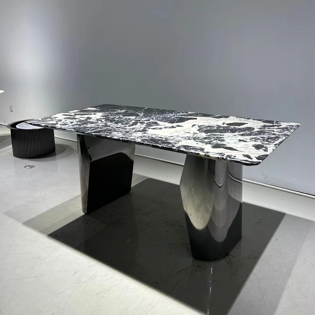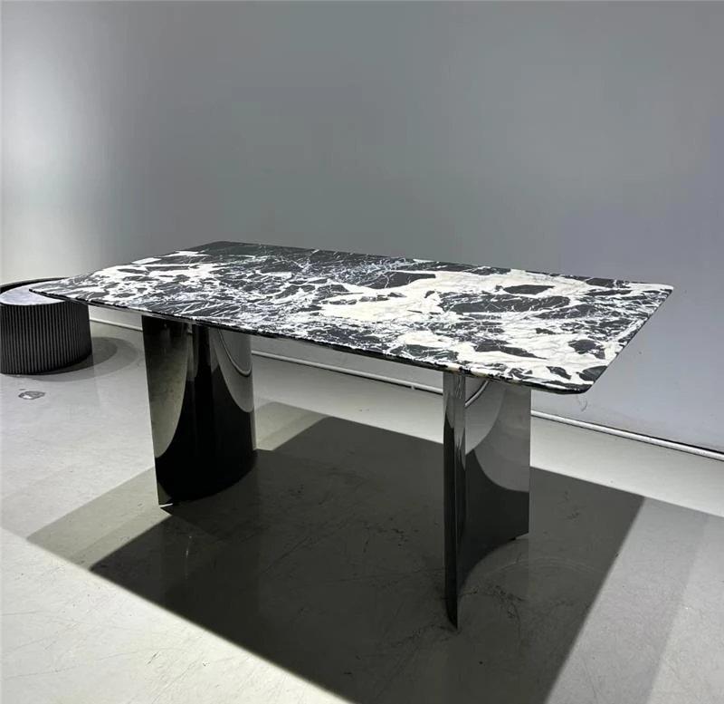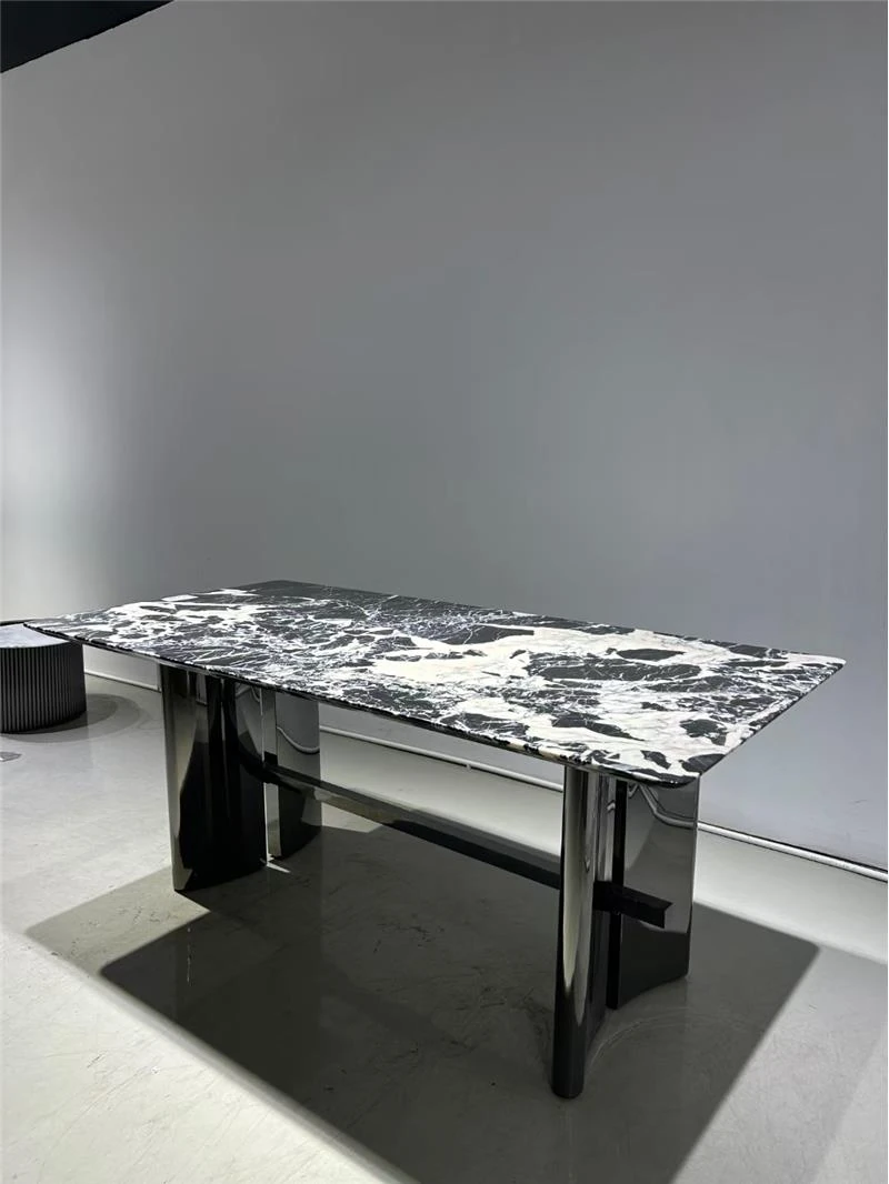 ホテルスタイルのイタリアンラグジュアリーダイニングテーブル&チェアセット、別荘や広々とした住居に最適!高級大理石の長方形ダイニングテーブルで、洗練された食卓を演出。贅沢なひとときをお楽しみください。