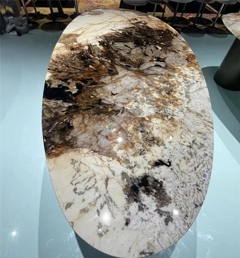 天然大理石製ラウンドテーブル|高級イタリアンデザイン|贅沢なヴィラや平屋に最適なダイニングセット|洗練されたスタイルで特別なひとときを演出