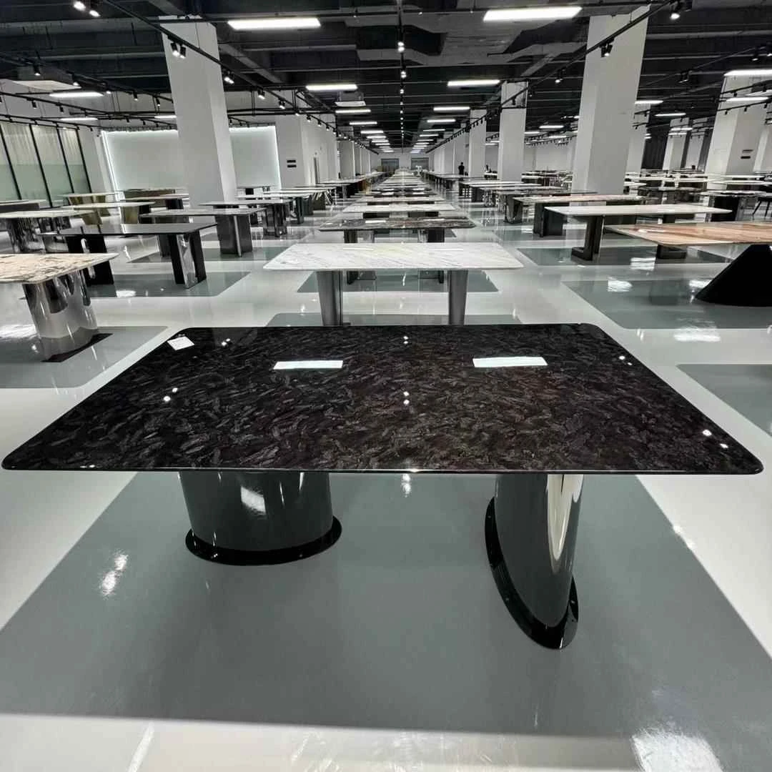 ホテル風のイタリアンラグジュアリー、マーブル素材の洗練されたダイニングテーブル&チェアセット。別荘や広々とした住居にぴったりの高級長方形テーブルで、特別な食事体験を演出します!