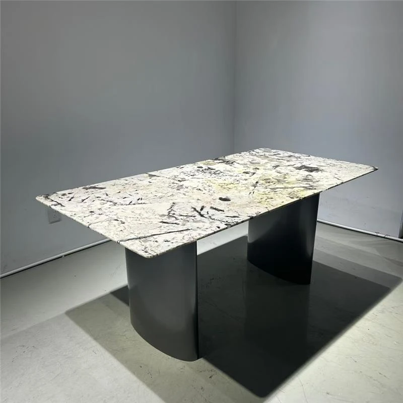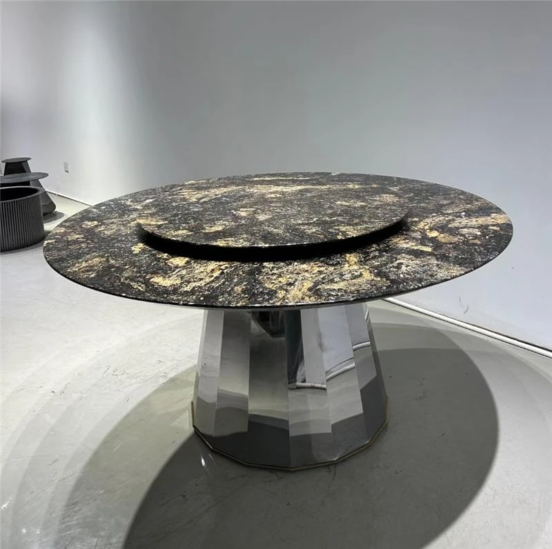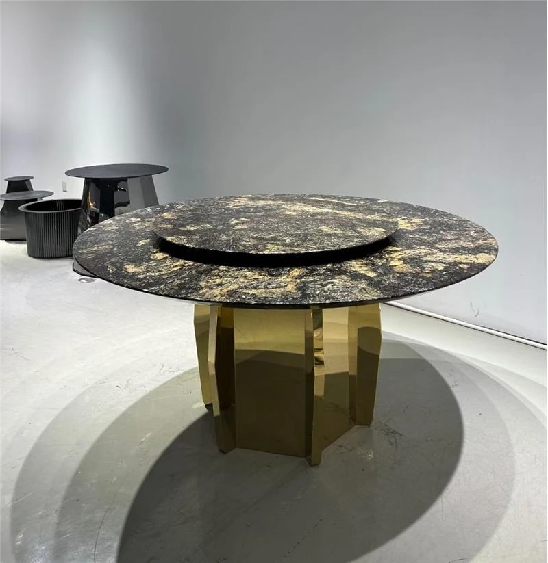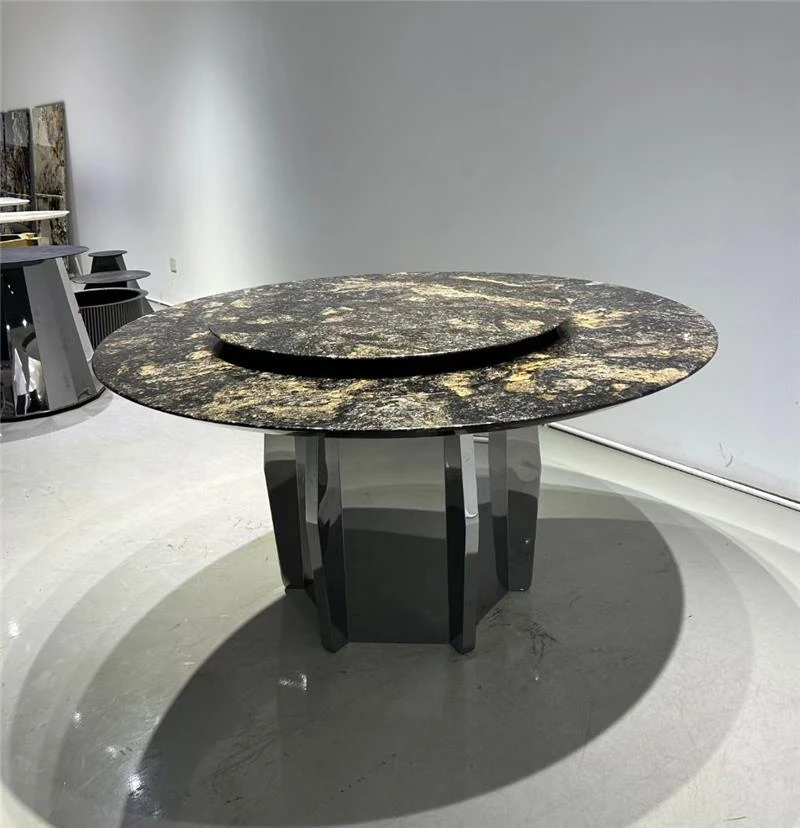 ホテル用イタリアンラグジュアリー ダイニングテーブル&チェアセット ヴィラや広々とした住居にぴったりな大理石の高級ラウンドテーブルで、特別な食事体験を演出します。