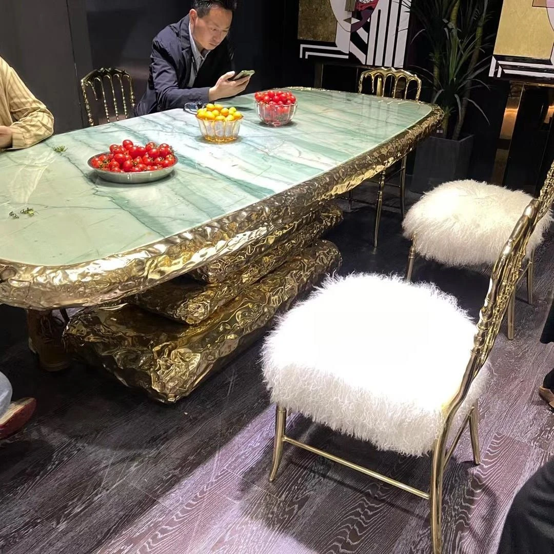 高級イタリアンデザインの天然大理石ダイニングテーブル - モダンでシンプルなリビングルームに最適なラグジュアリーな長テーブル。贅沢な別荘や豪邸にぴったりのスタイルをお楽しみください!