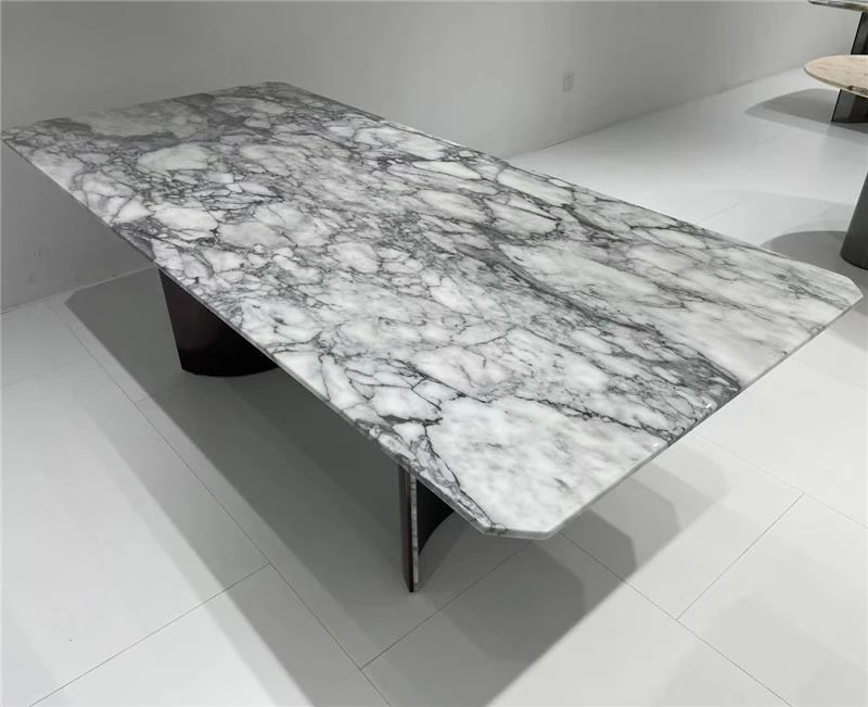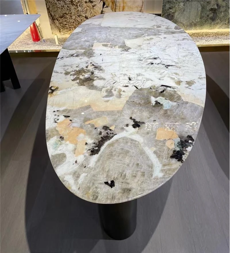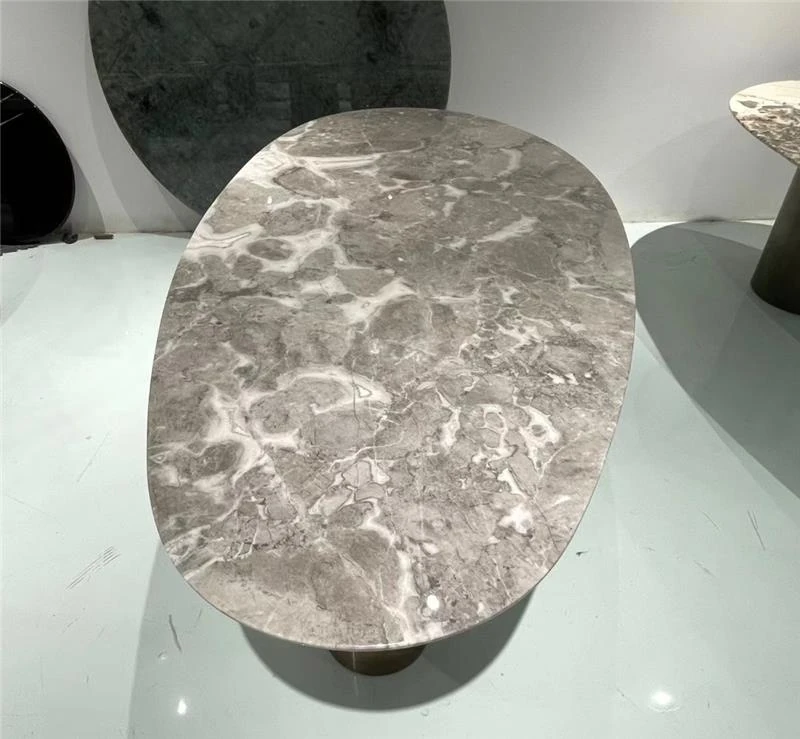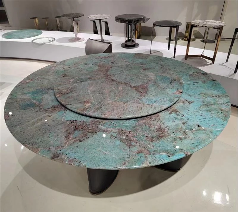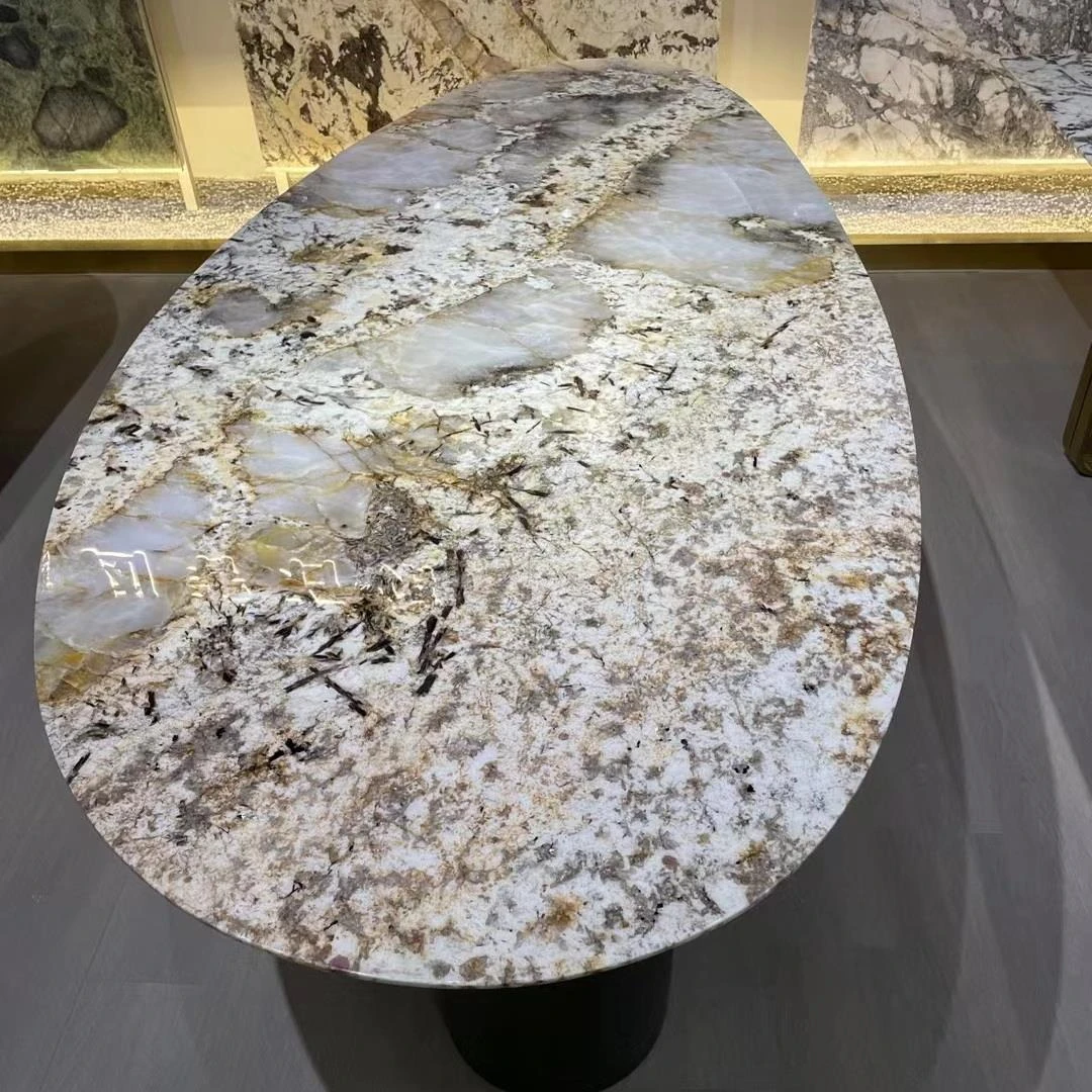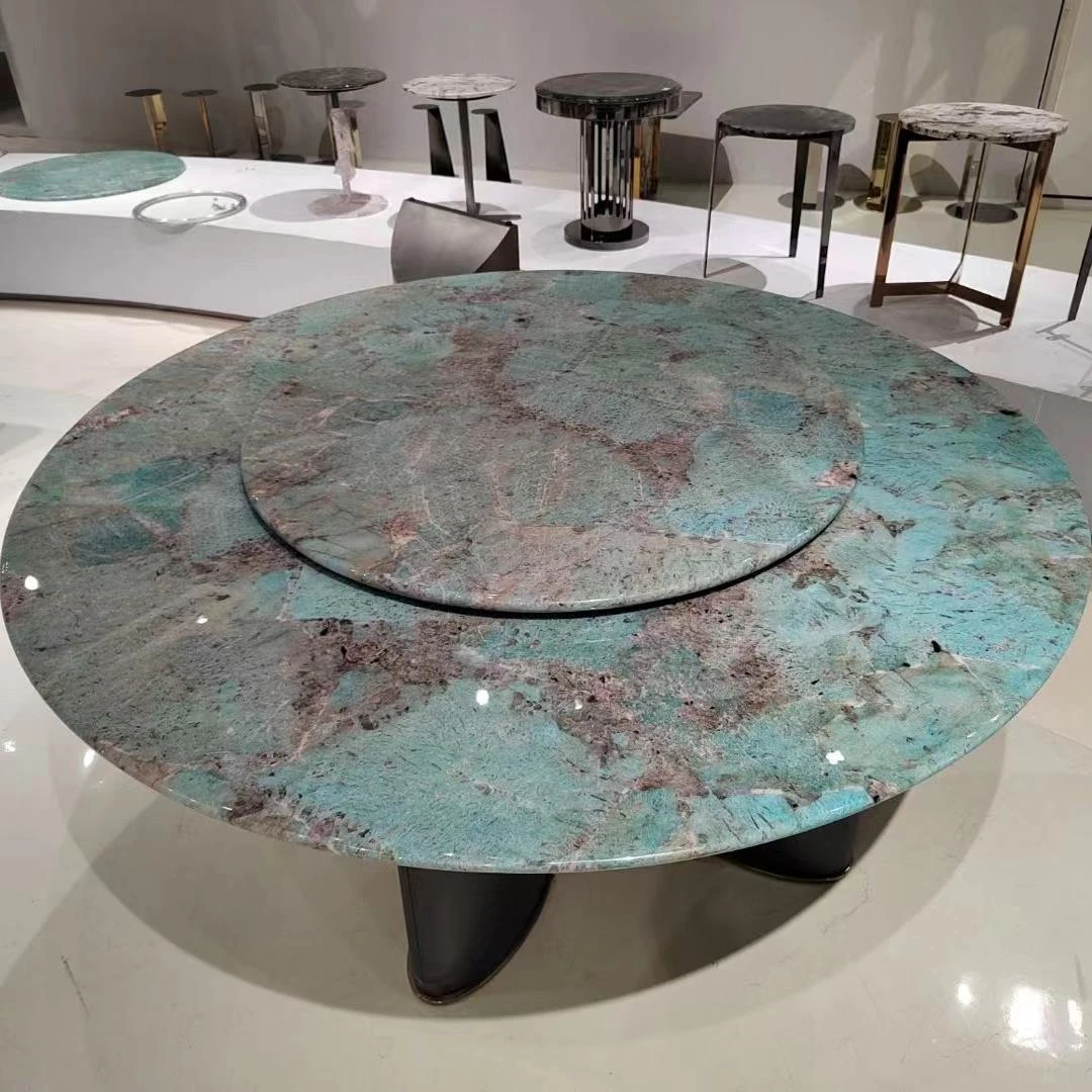天然大理石製のラウンドダイニングテーブル - 高級イタリアンスタイル、洗練されたデザインの別荘や家庭にぴったり!贅沢なひとときを演出する、丸いテーブルと椅子のセット。