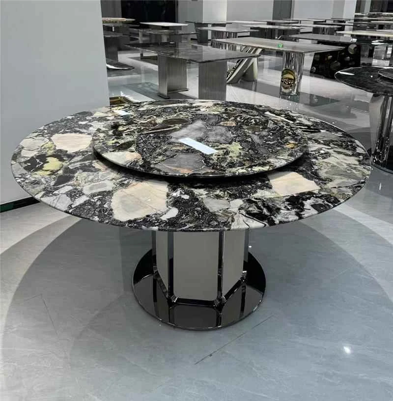 Elegant Italian-Style Natural Marble Round Dining Table Set for Villas - High-End Luxury Design for Spacious Homes, Perfect for Dining and Entertaining