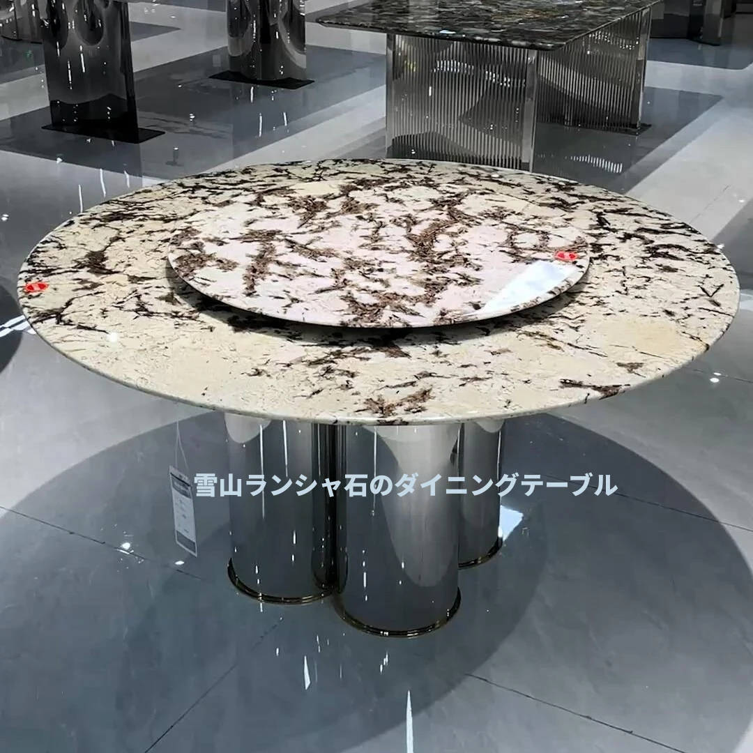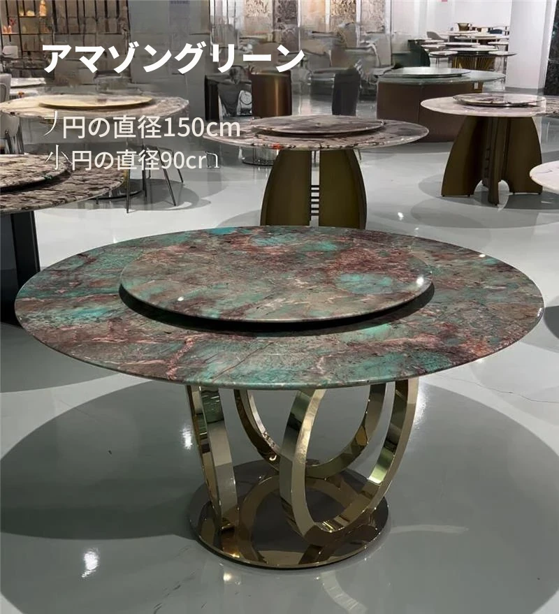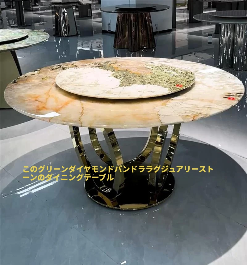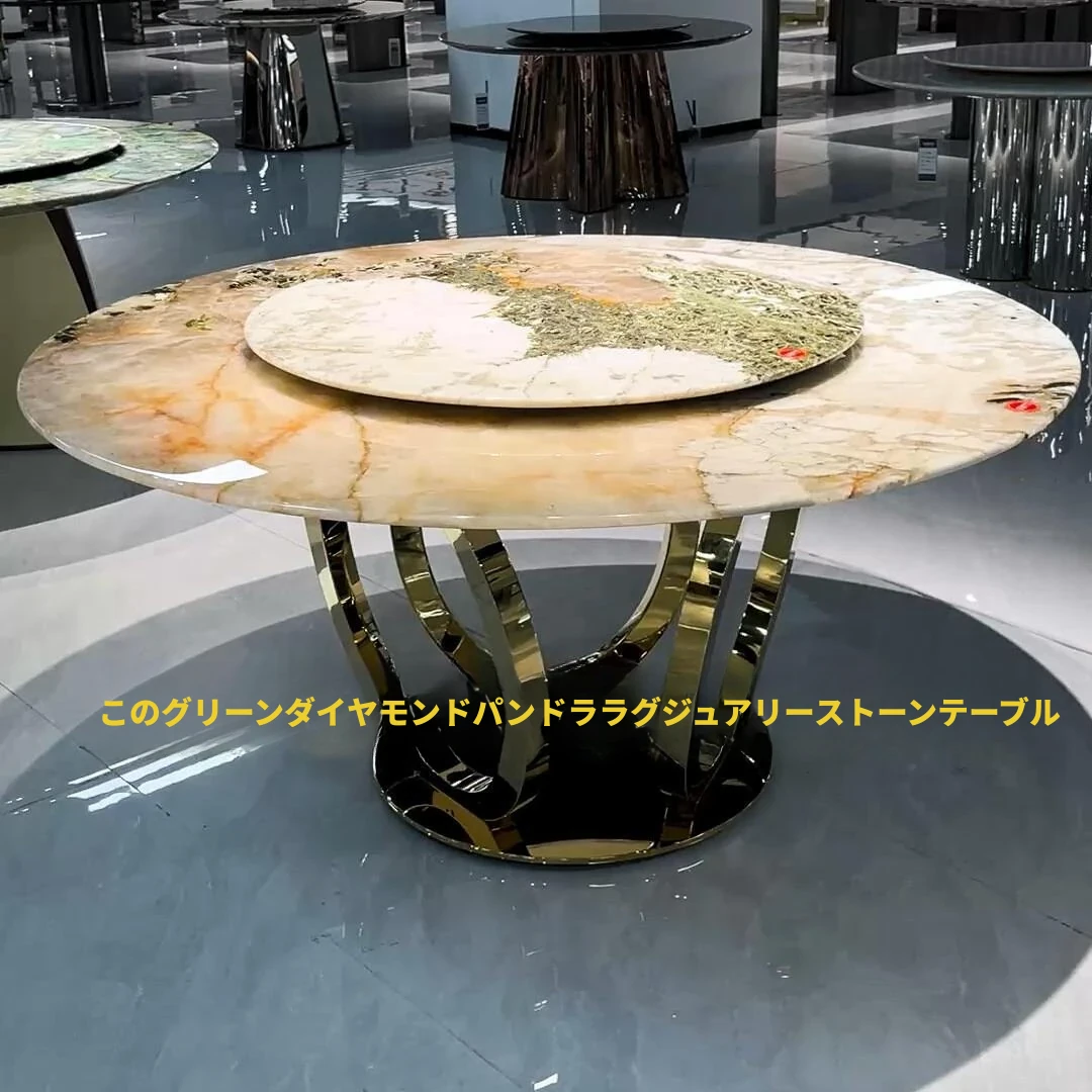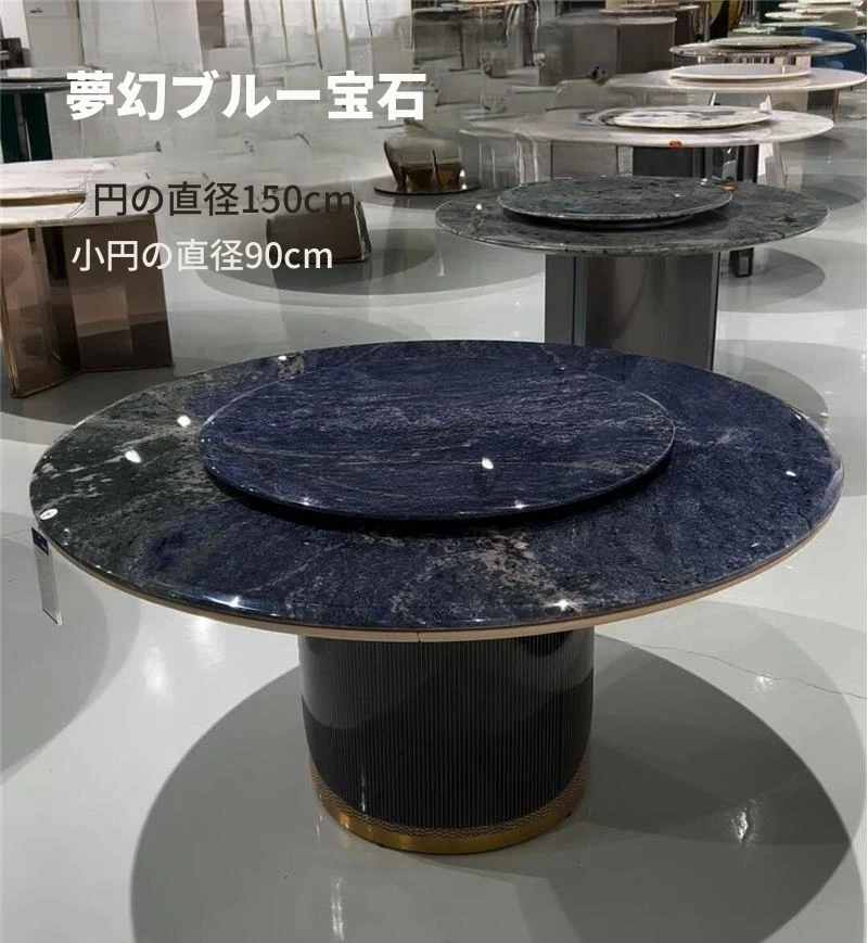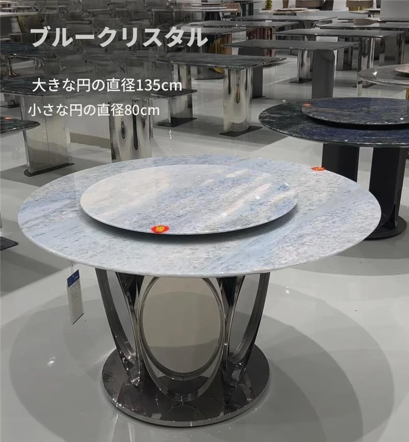 ラグジュアリー大理石デザインのブルークリスタル食卓セット - モダンでシンプル、回転式の大テーブル。広々とした家族向けダイニングに最適!