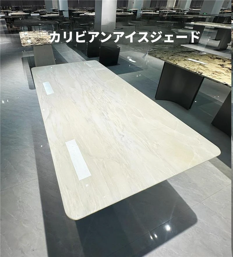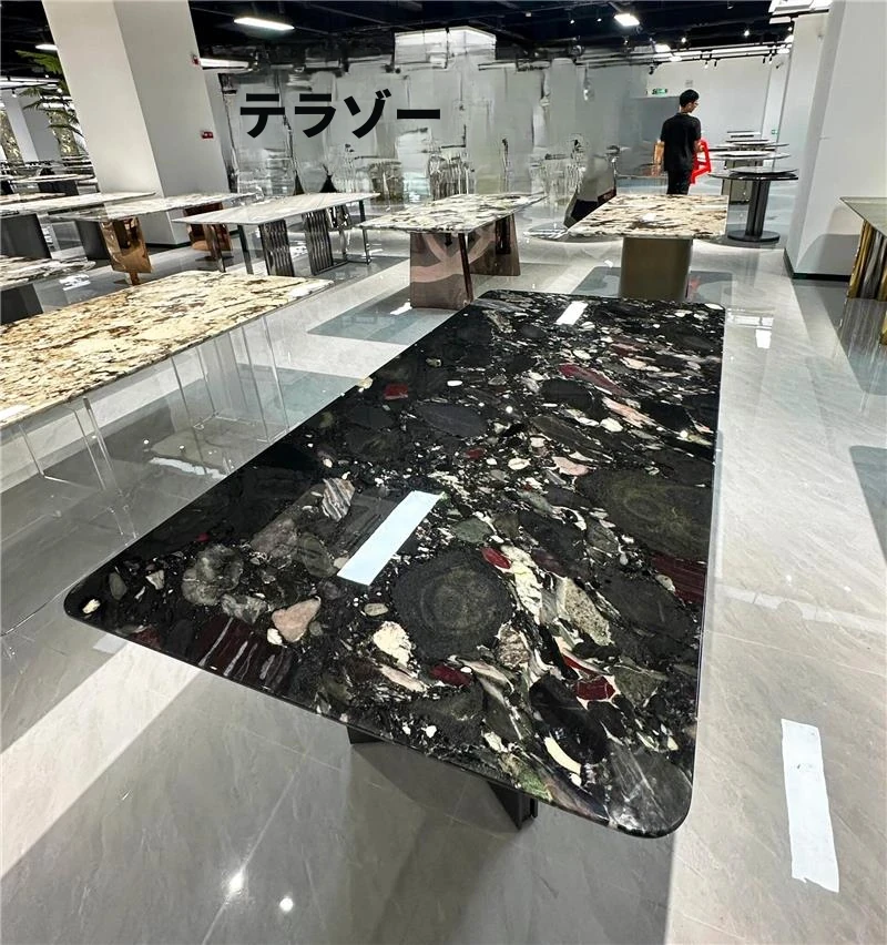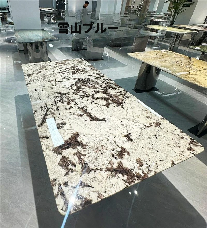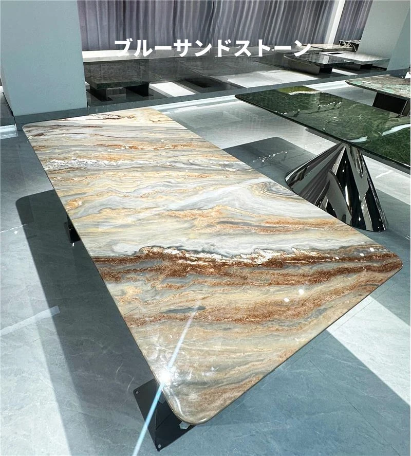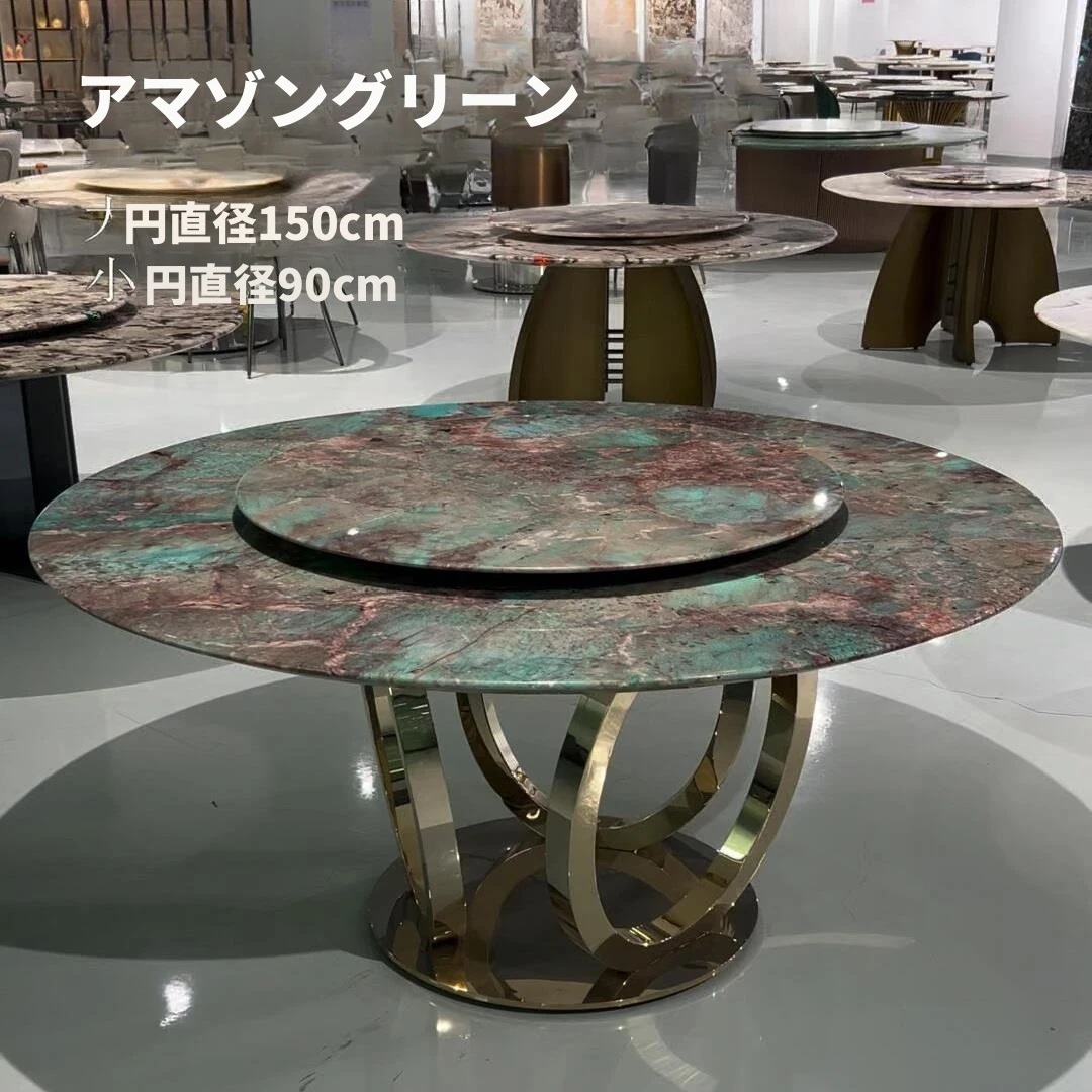ラグジュアリー大理石デザインのブルークリスタル食卓セット - モダンでシンプル、回転式の大テーブル。広々とした家族向けダイニングに最適!