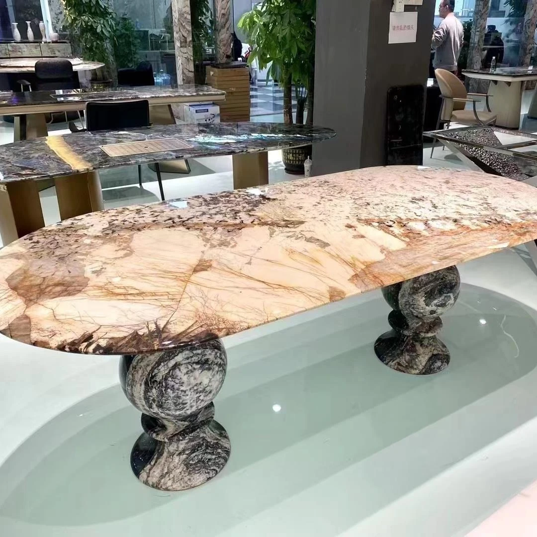 ラグジュアリーな天然大理石ダイニングテーブル - ソフトインテリア全案で、リビングや別荘、ホテル、クラブに最適!洗練されたデザインで、上質な空間を演出。あなたの居住空間を格上げする一品です!