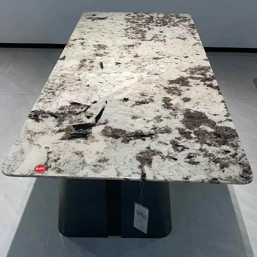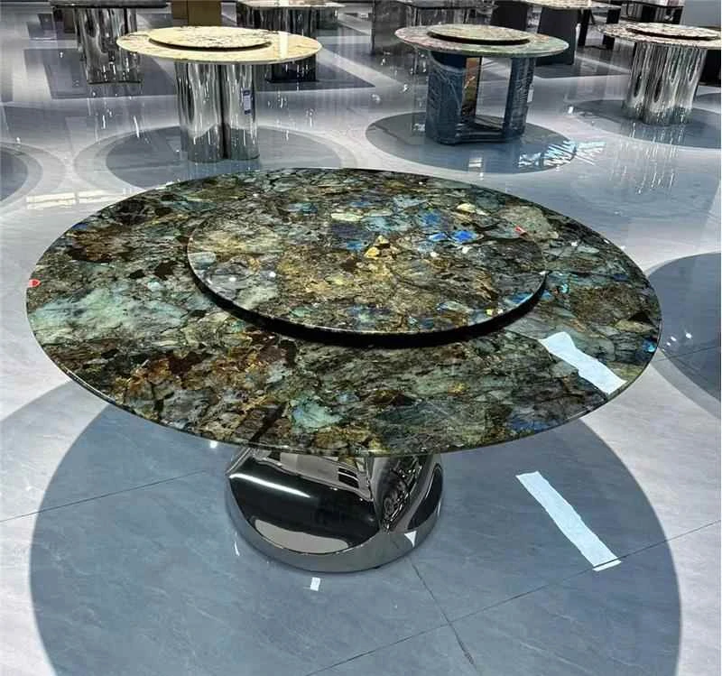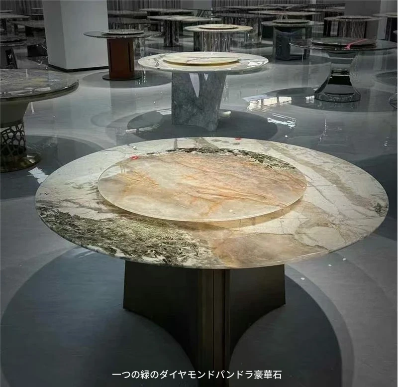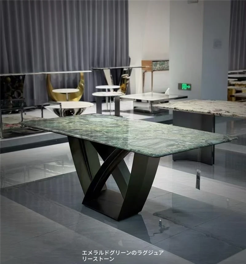 ラグジュアリー天然大理石ダイニングテーブル - 高級感溢れる青いクリスタルの四角いテーブルで、広々としたリビングや別荘に最適!大規模な住居にぴったりの贅沢な選択肢です。