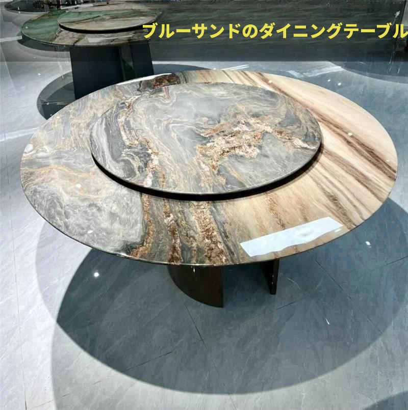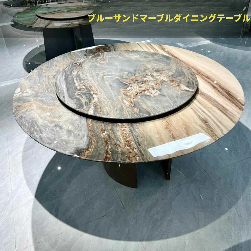 軽やかで贅沢な天然大理石の光るパンドラ石製ダイニングテーブル - モダンな家庭や別荘、大型のホテルにぴったりのラウンドテーブル!