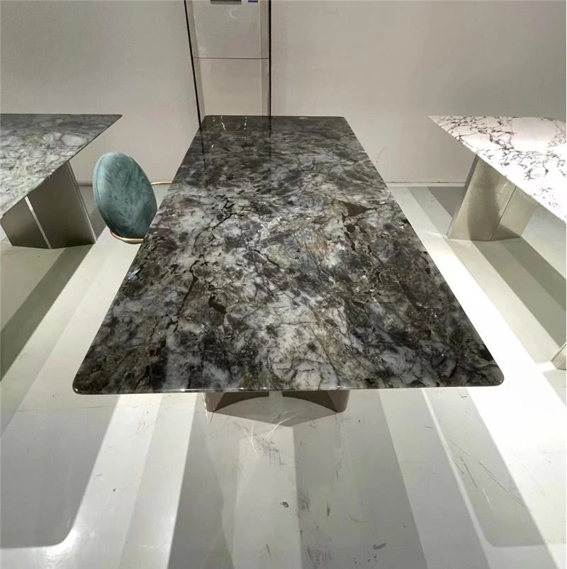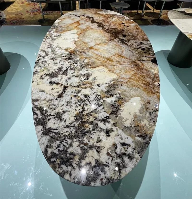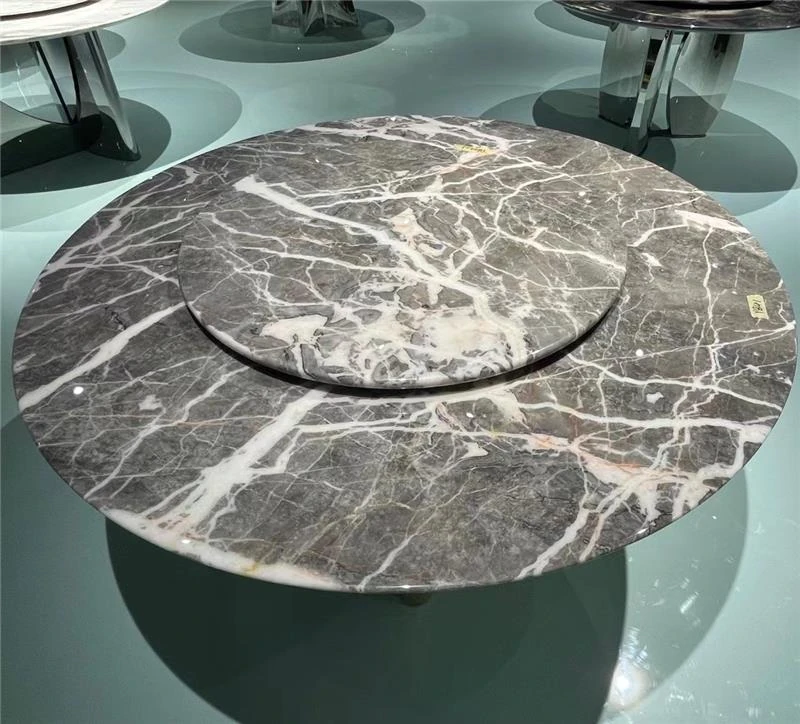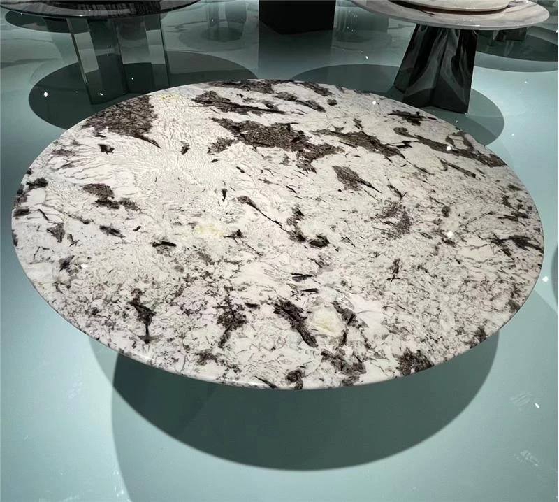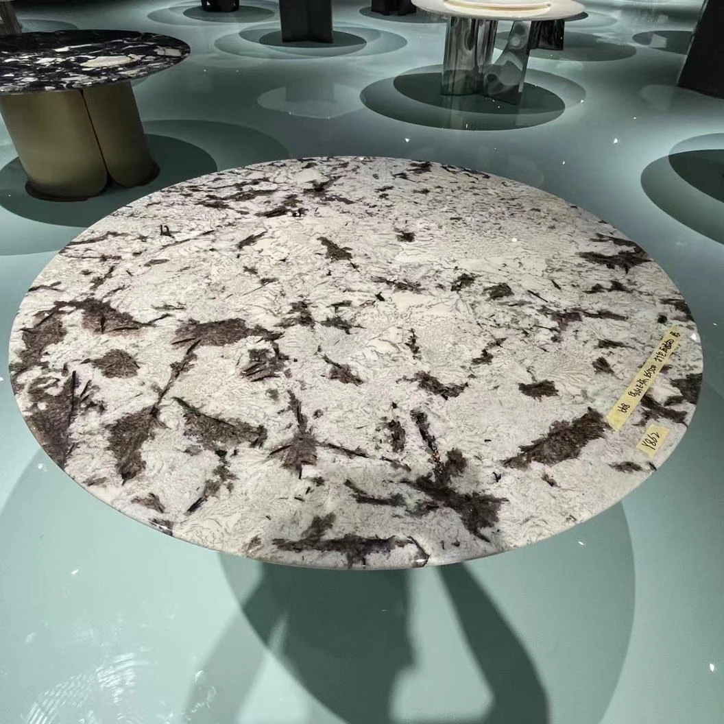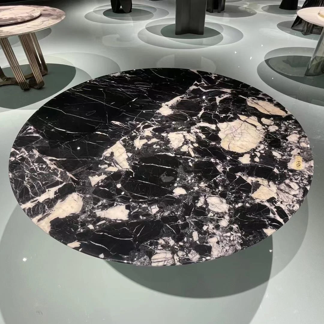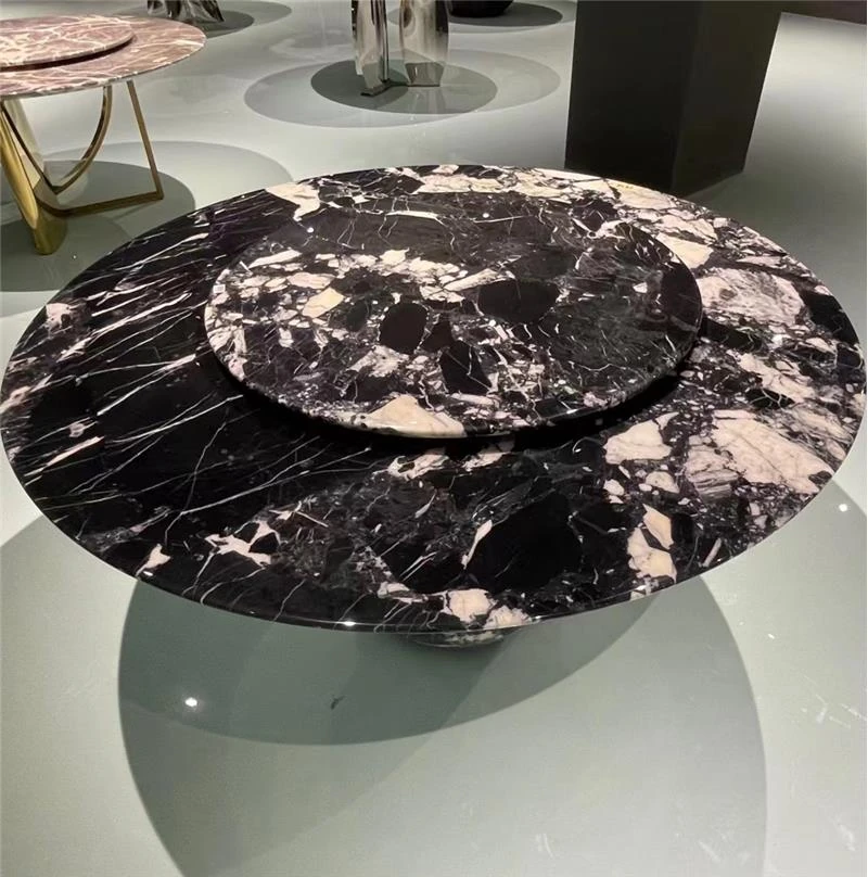 天然大理石のラウンドダイニングテーブル - ヴィラや高級マンションに最適!イタリアンラグジュアリーなデザインで、洗練された空間を演出する高品質の円形テーブルと椅子のセット。