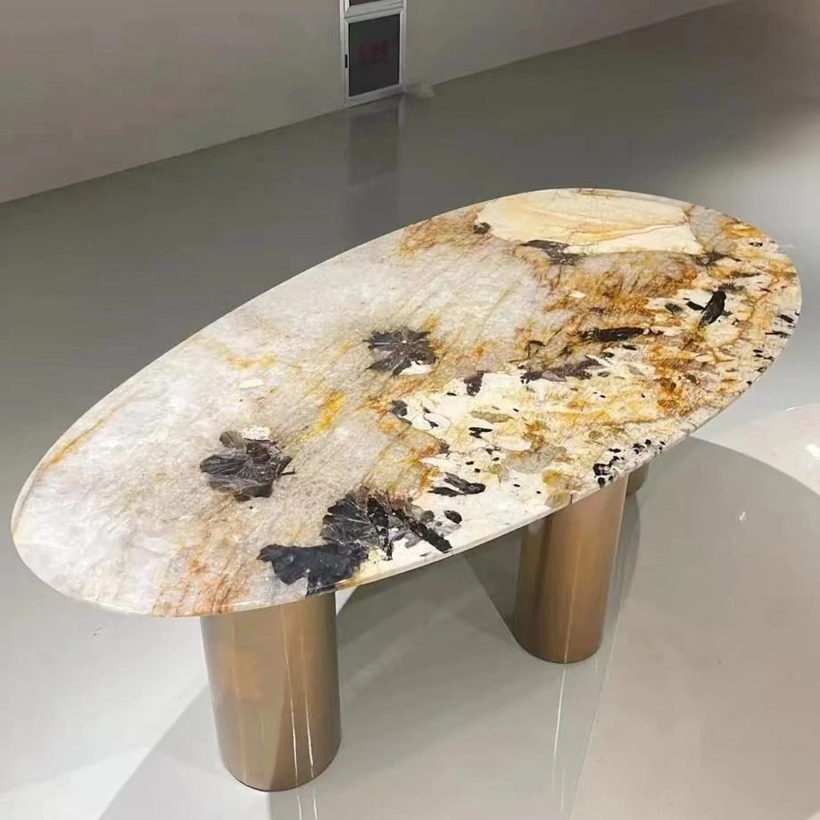 ホテルのラグジュアリー大理石長方形ダイニングテーブル - 高級感溢れる家用、別荘や広々とした豪邸にぴったりな贅沢な石製ダイニングテーブルで、洗練された空間を演出します。