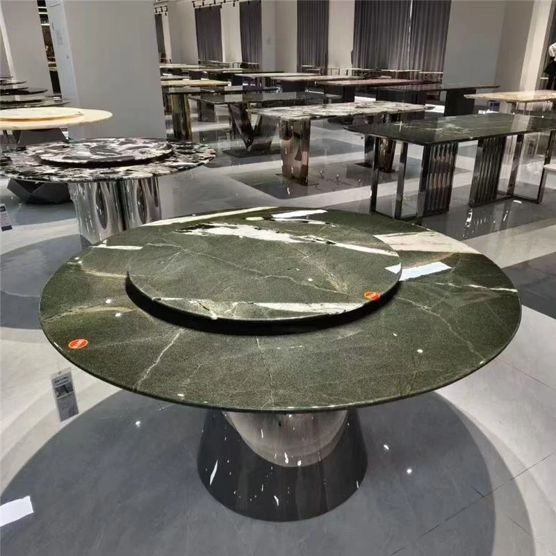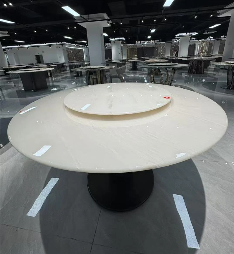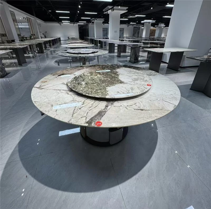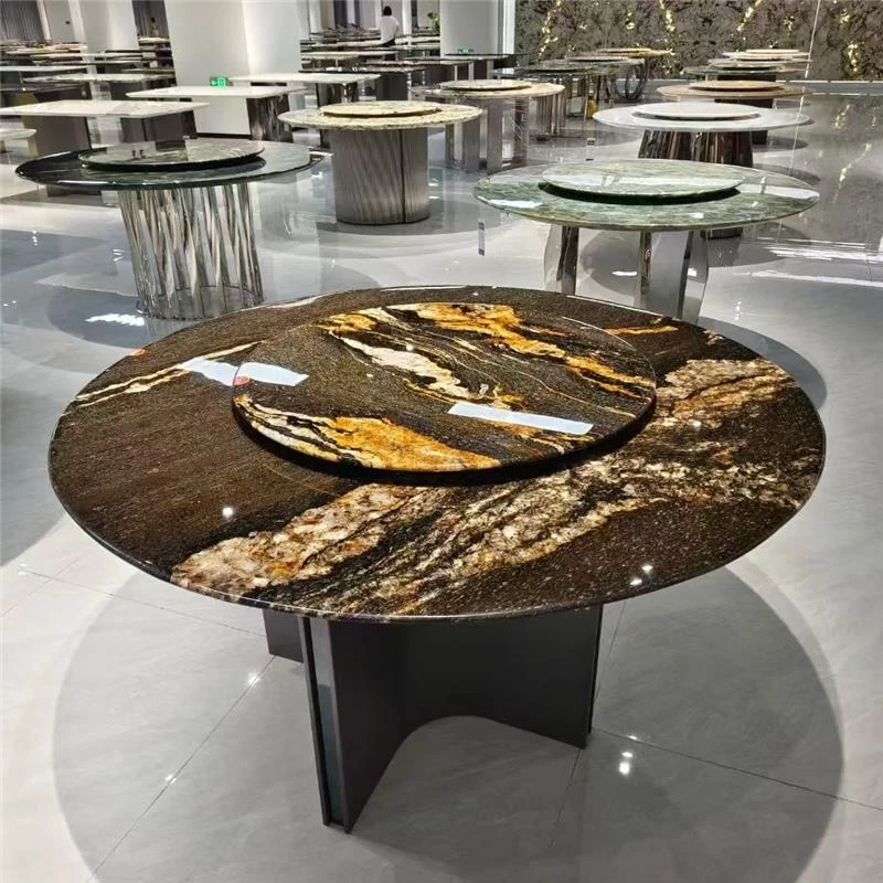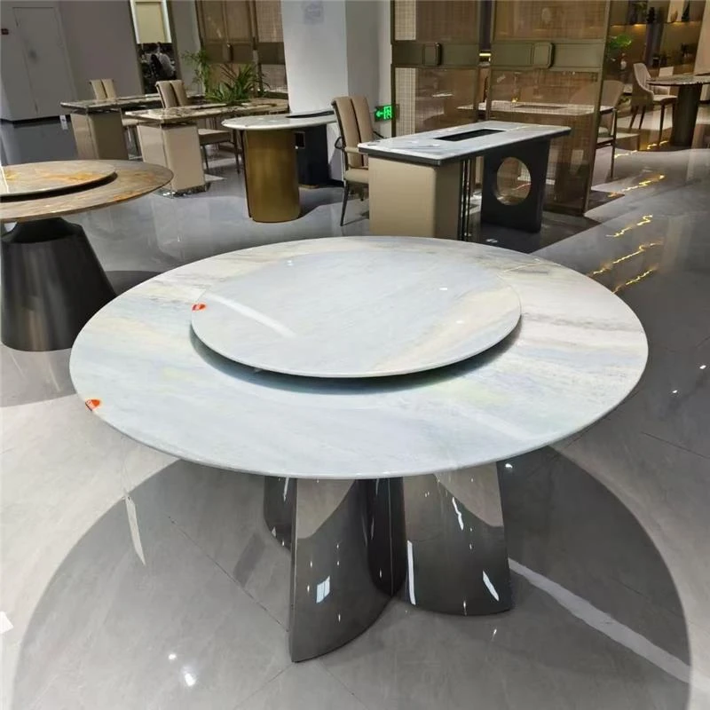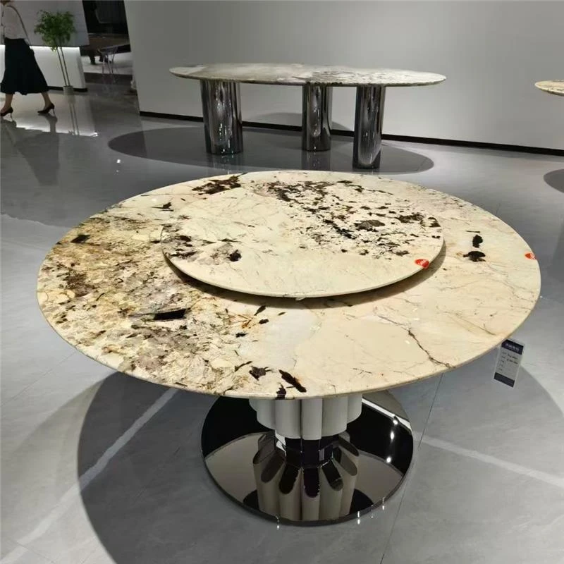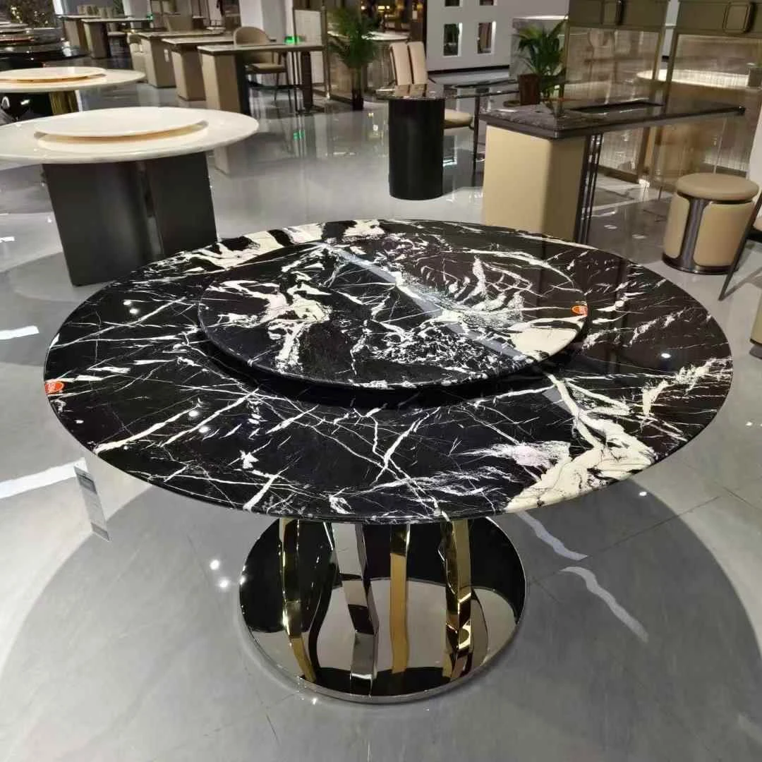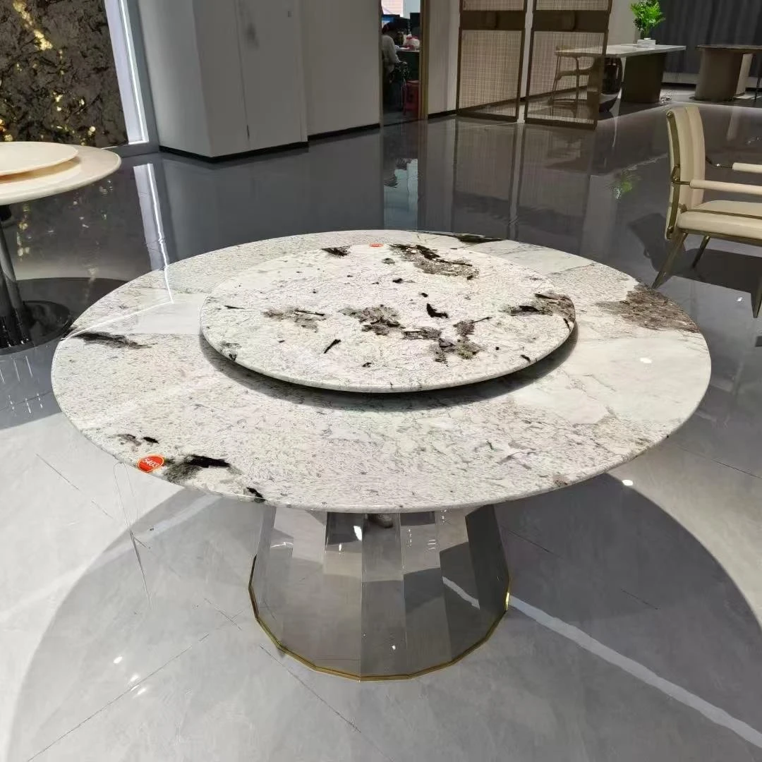 天然大理石のラウンドダイニングテーブル - ヴィラや高級マンションに最適なイタリアンラグジュアリーデザイン、洗練されたスタイルで食卓を彩ります。優雅な座席付き!