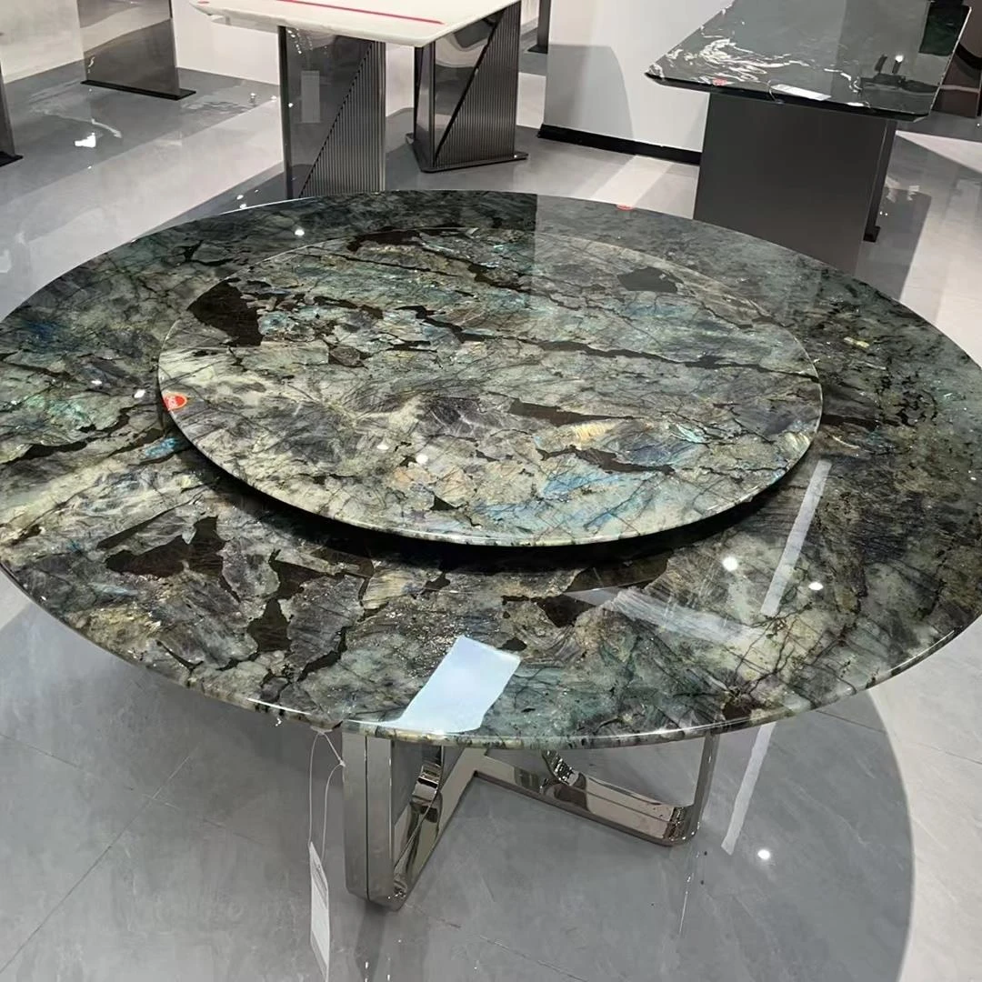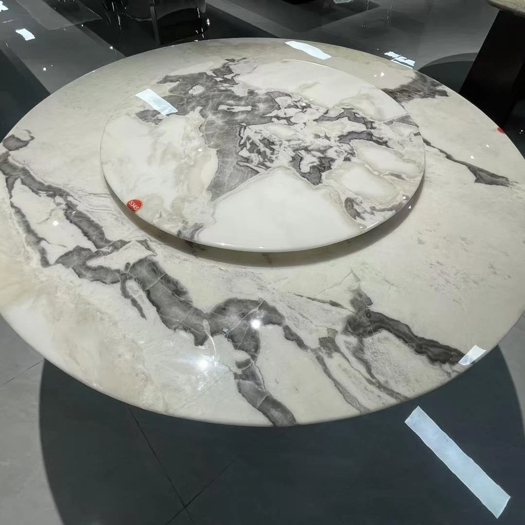 輸入品の高級大理石製ダイニングテーブル&チェアセット - モダンで洗練されたデザイン、ヴィラにもぴったりな天然素材のラウンドテーブルで、贅沢なひとときをお楽しみください。
