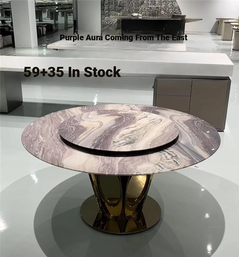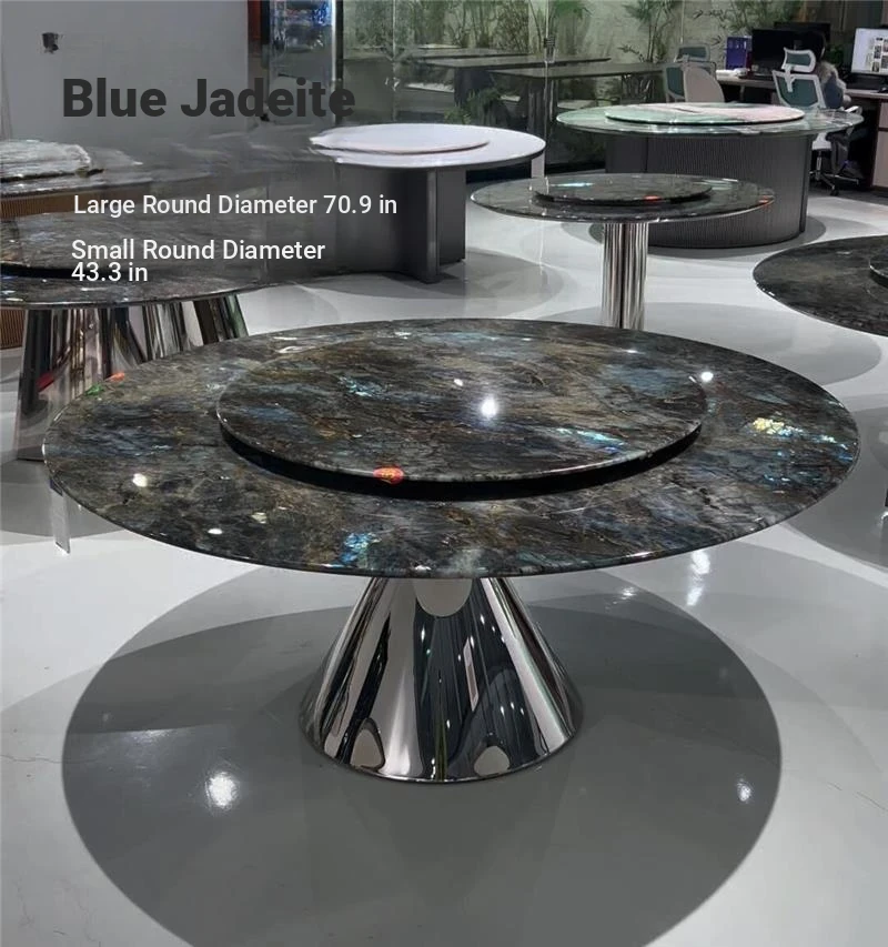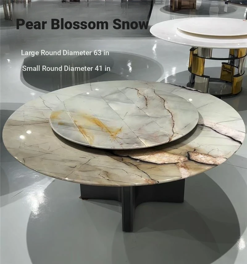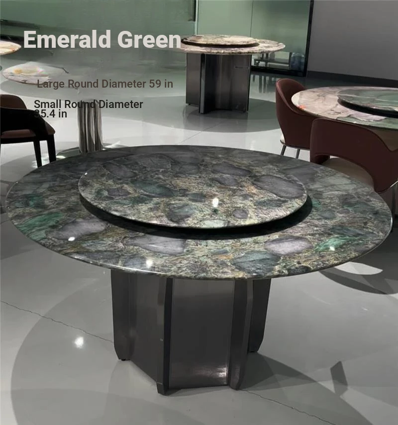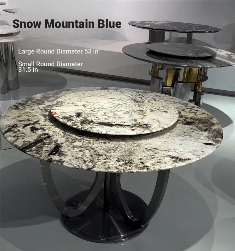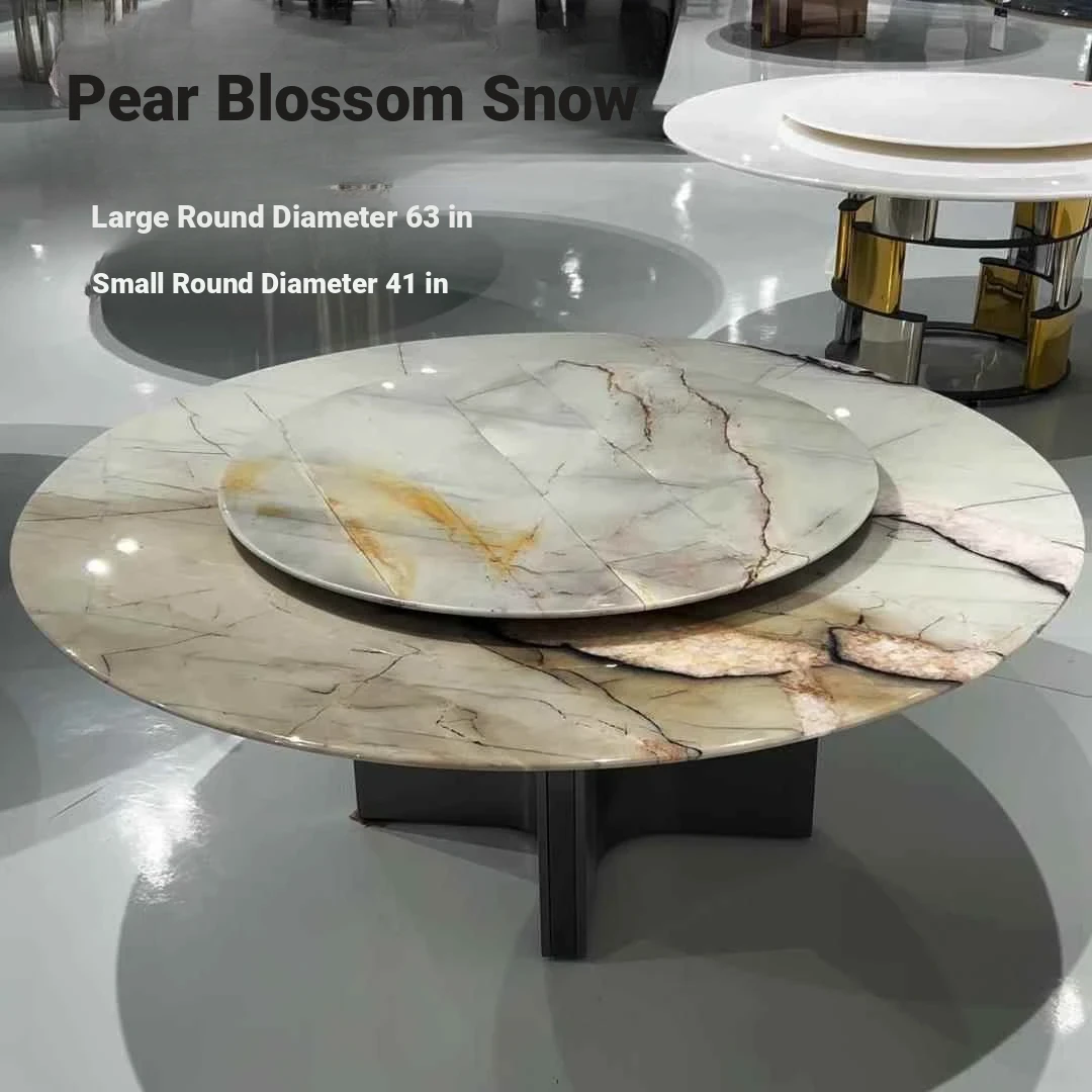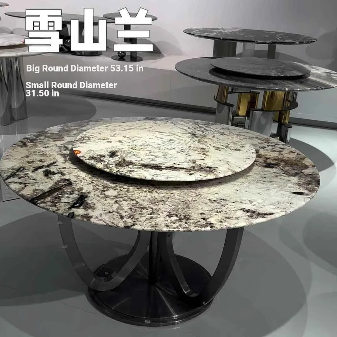 Imported Natural Marble Luxury Jade Dining Table and Chair Set - Round High-End Light Luxury Restaurant Table