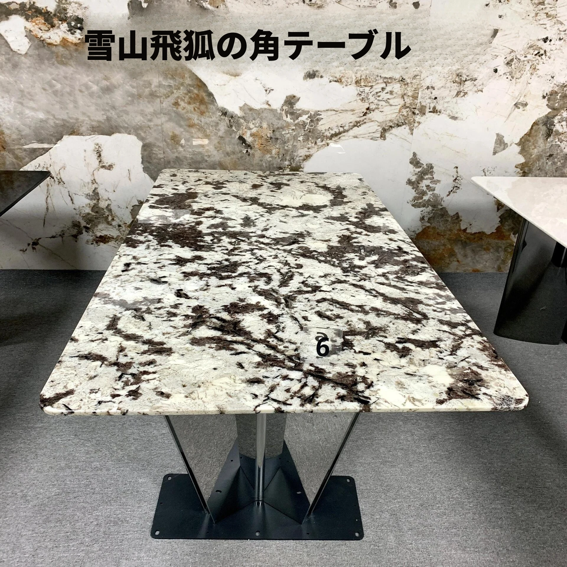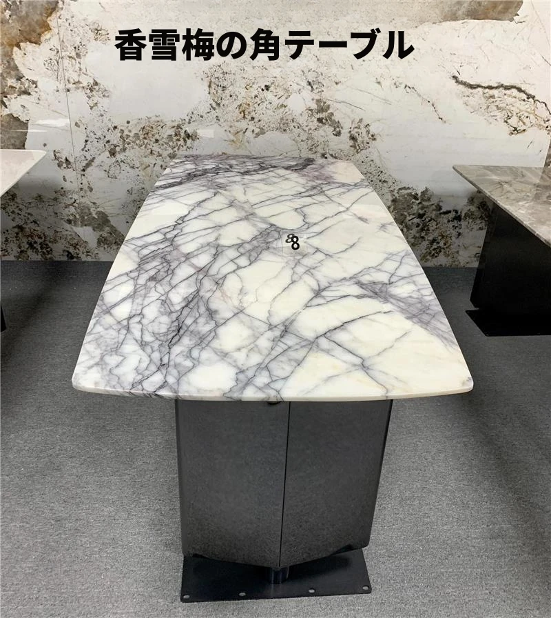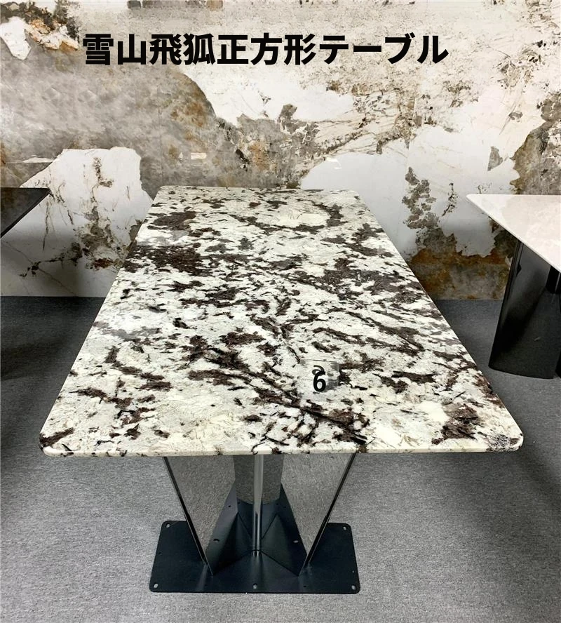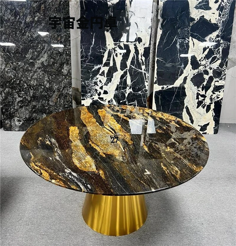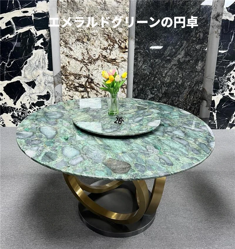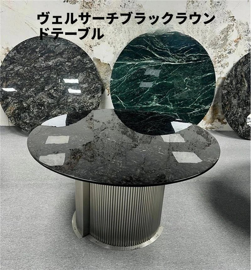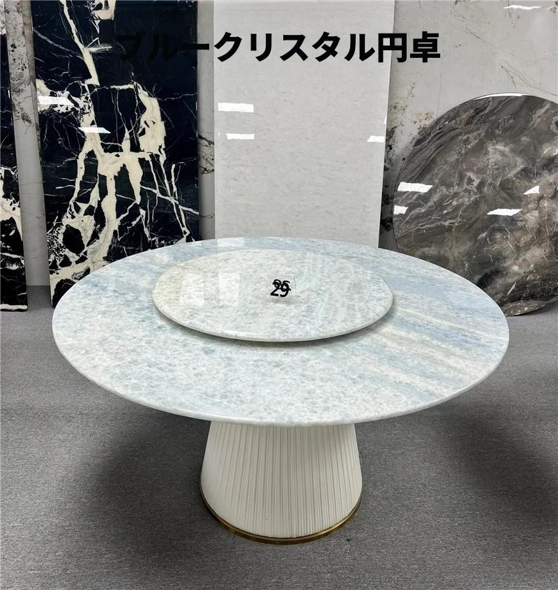 輸入天然大理石のラウンドダイニングテーブル - ラグジュアリーな雪山の飛狐デザイン、現代的なミニマリズムを融合した高級別荘向けの食卓。