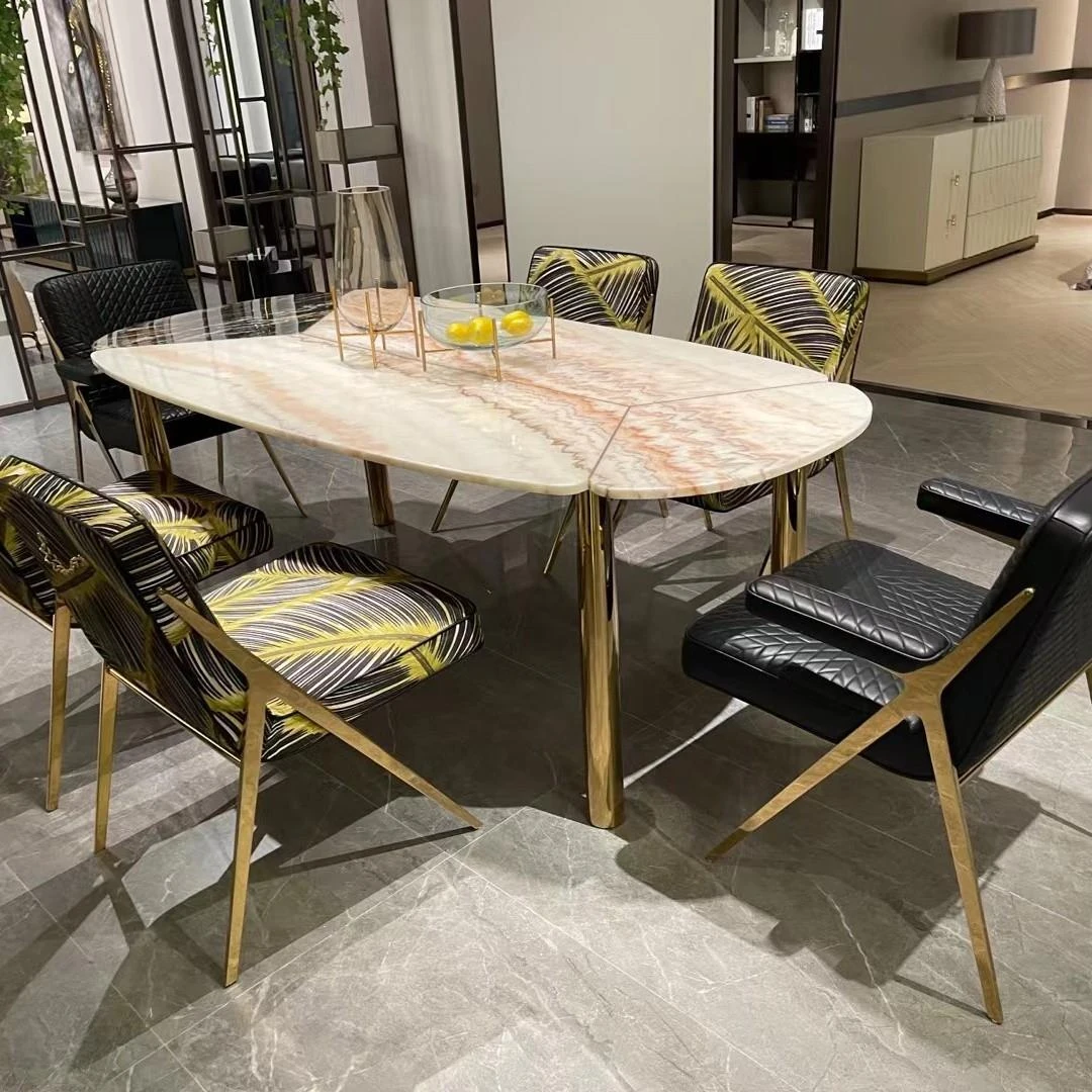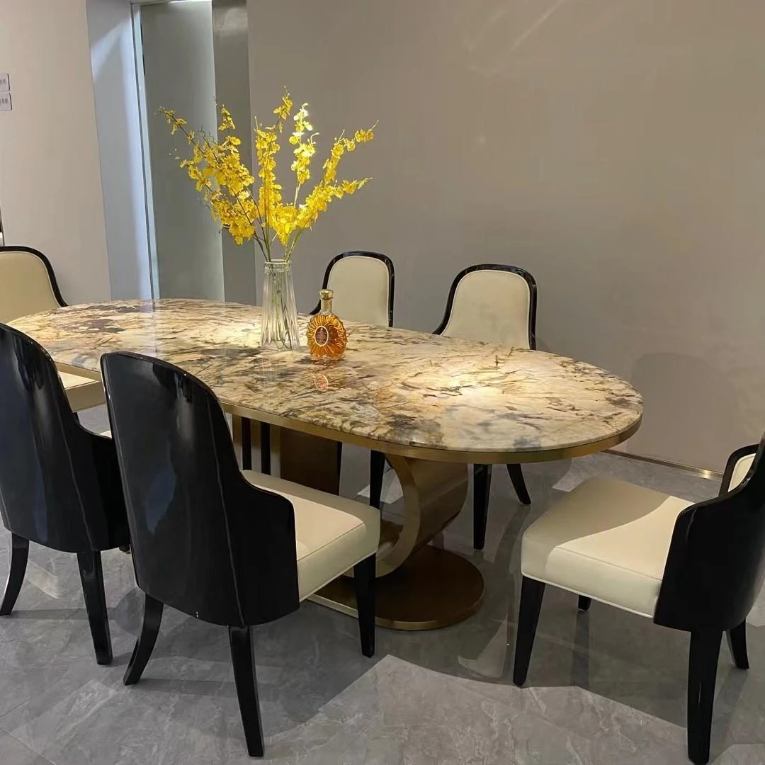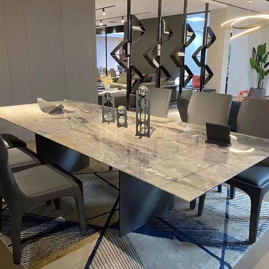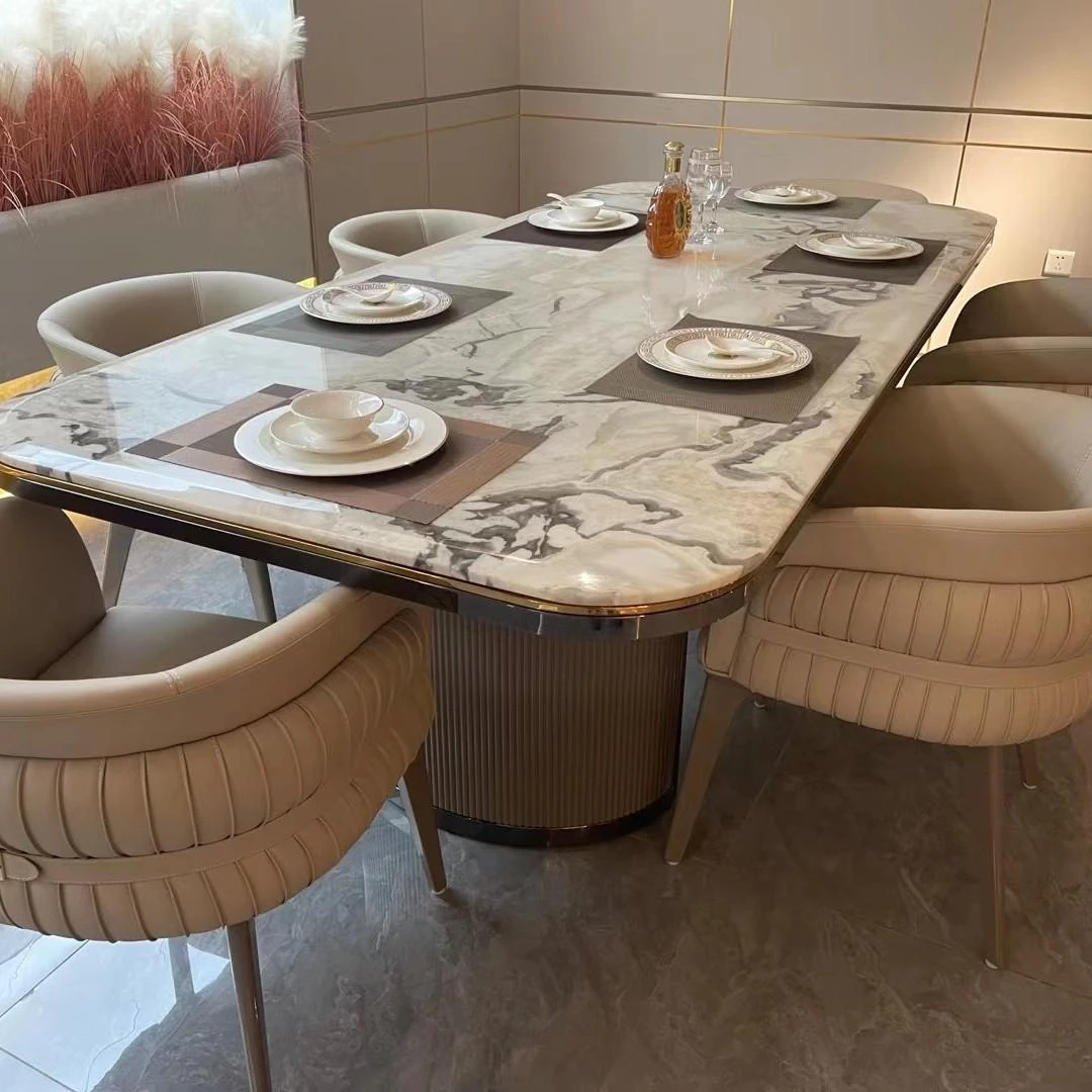 イタリアンラグジュアリー天然大理石ロングテーブル - ヴィラ・高級マンション向けのモダンでシンプルな高級食卓。優雅なデザインで、特別なひとときを演出します。