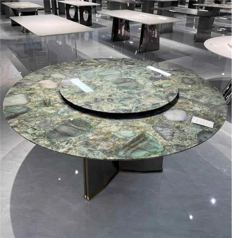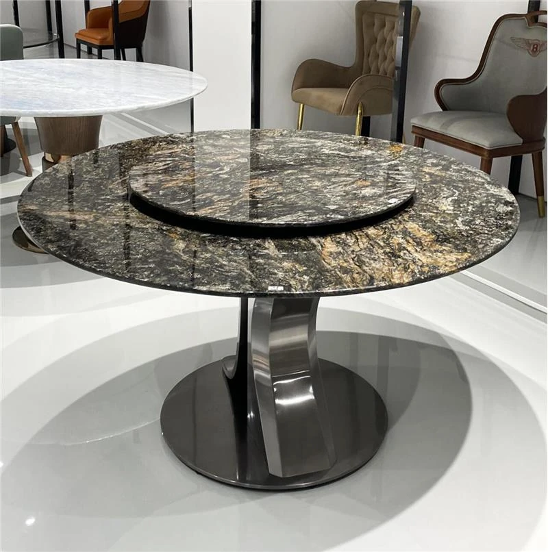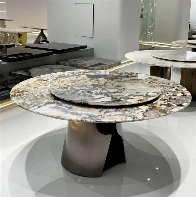 イタリアンラグジュアリー!天然大理石製のラウンドダイニングテーブル、10人用の大平面デザイン。別荘にぴったりな高級感あふれる円形テーブルとチェアのセット。お客様を魅了する特別な空間を演出します!