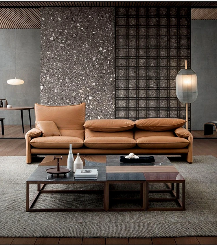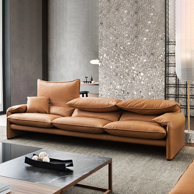 イタリアンミニマルデザイン カッシーナ輸入の本革ソファ 家庭用リビング向け バウハウススタイルの折り畳み布製ソファで、シンプルな美しさと最高の快適さを実現!
