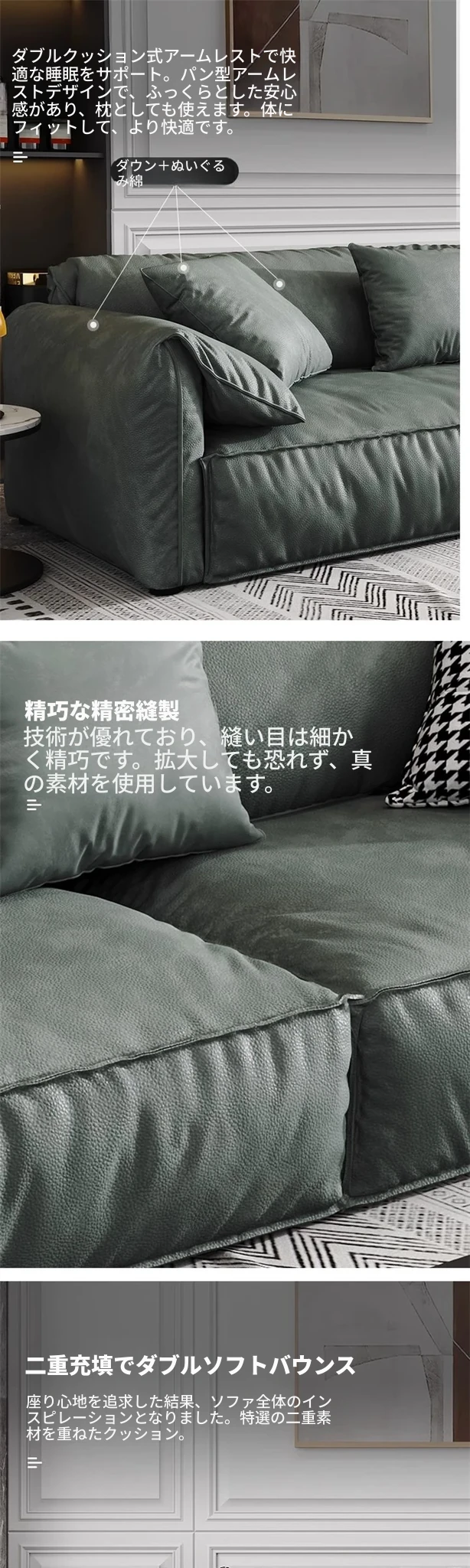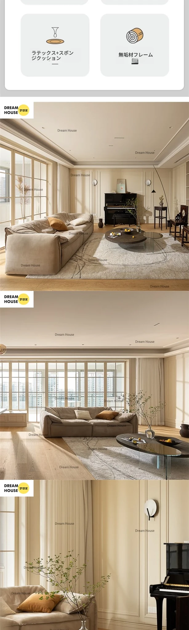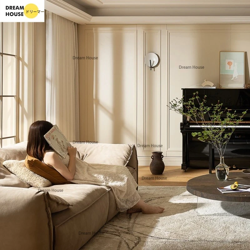 イタリアンミニマルデザインの布製ソファ - 北欧スタイル、テクスチャー感のあるサンドブラスト生地使用、小さなリビングにぴったりなラグジュアリーな象耳ソファ。快適さとスタイルを両立した理想の一品!