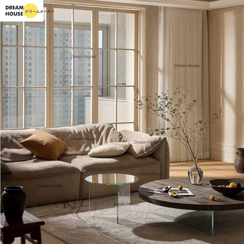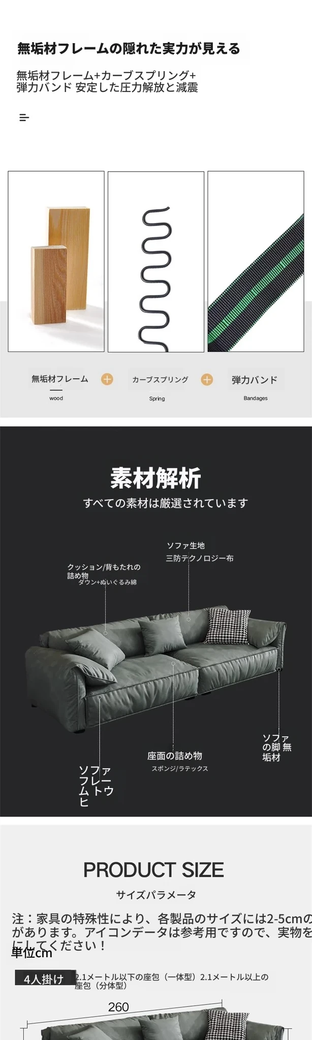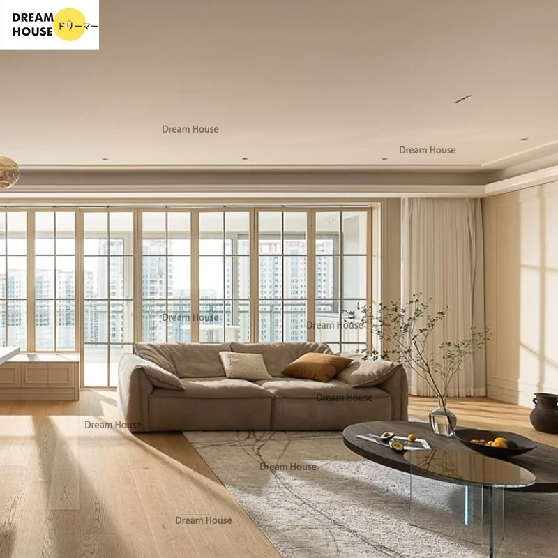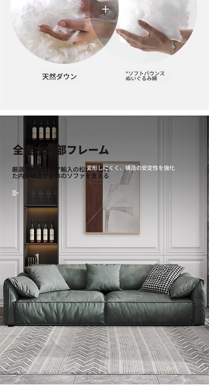 イタリアンミニマルデザインの布製ソファ - 北欧スタイル、テクスチャー感のあるサンドブラスト生地使用、小さなリビングにぴったりなラグジュアリーな象耳ソファ。快適さとスタイルを両立した理想の一品!
