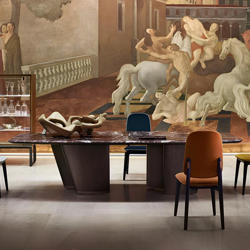 イタリアンミニマリスト輸入大理石長方形ダイニングテーブル 新中式アート ヴィラ・豪邸にぴったりなラウンドテーブル。洗練されたデザインで、エレガントな空間を演出します。おしゃれな食卓を演出し、特別なひとときをお楽しみください。