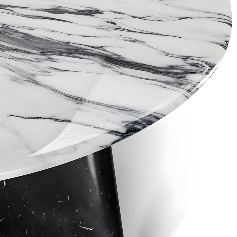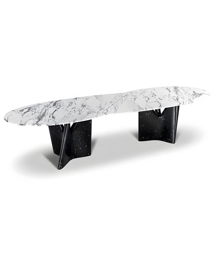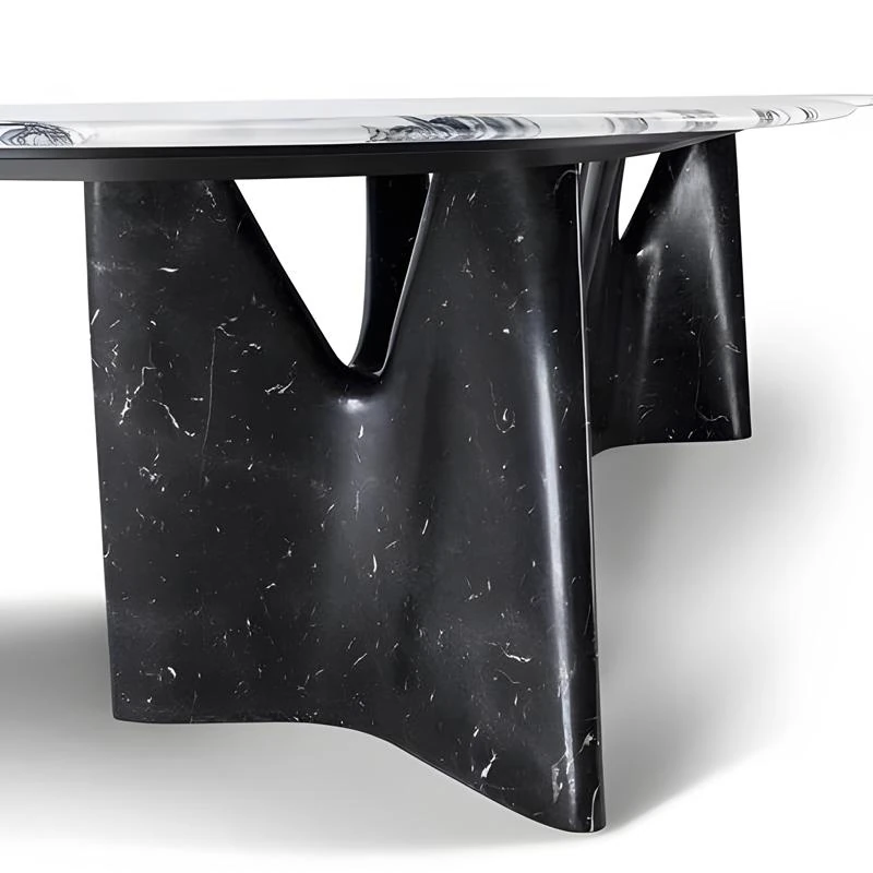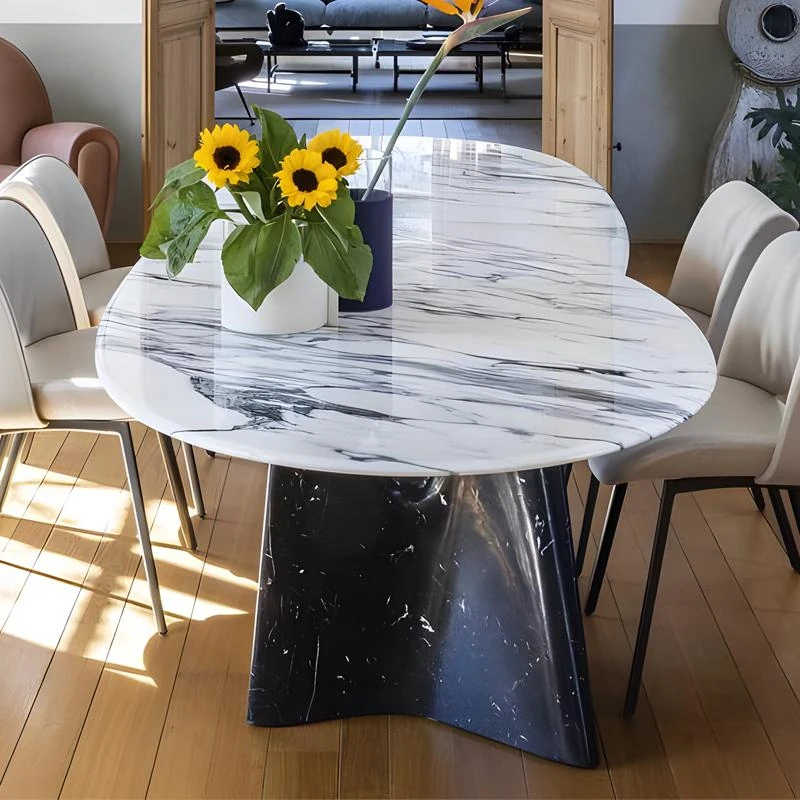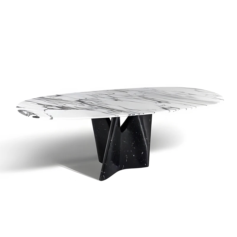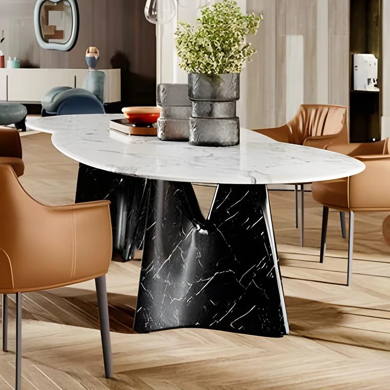 イタリア製天然大理石エレガントオーバルダイニングテーブル - モダンシンプルデザイン、上質な食空間を演出するラグジュアリーなアイテム。
