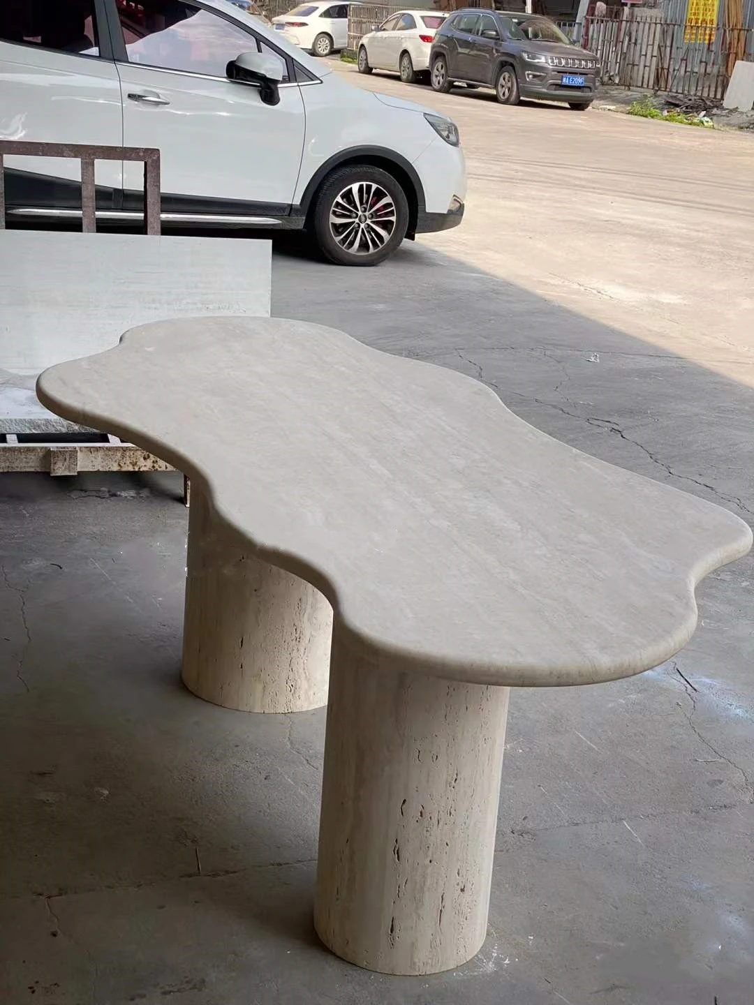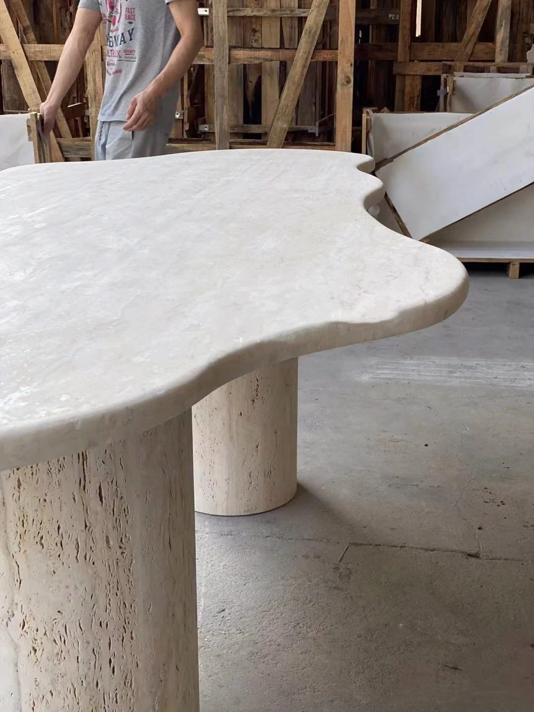 イタリアンホワイトストーン雲のようなデザイン、シンプルで洗練された大理石の長方形テーブル。民宿やインテリアにぴったり!インスタ映えするデザイナーズダイニングテーブルで、特別なひとときを演出します。
