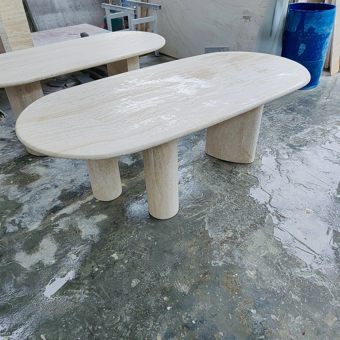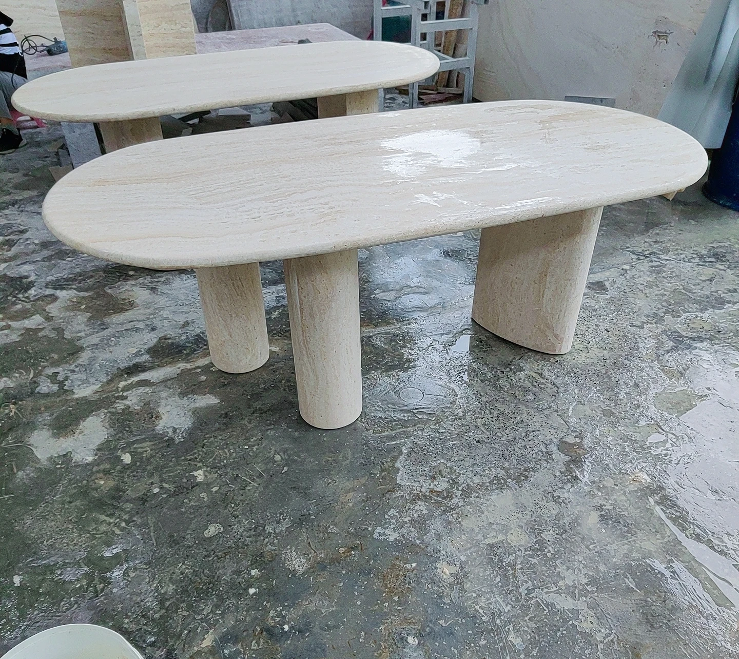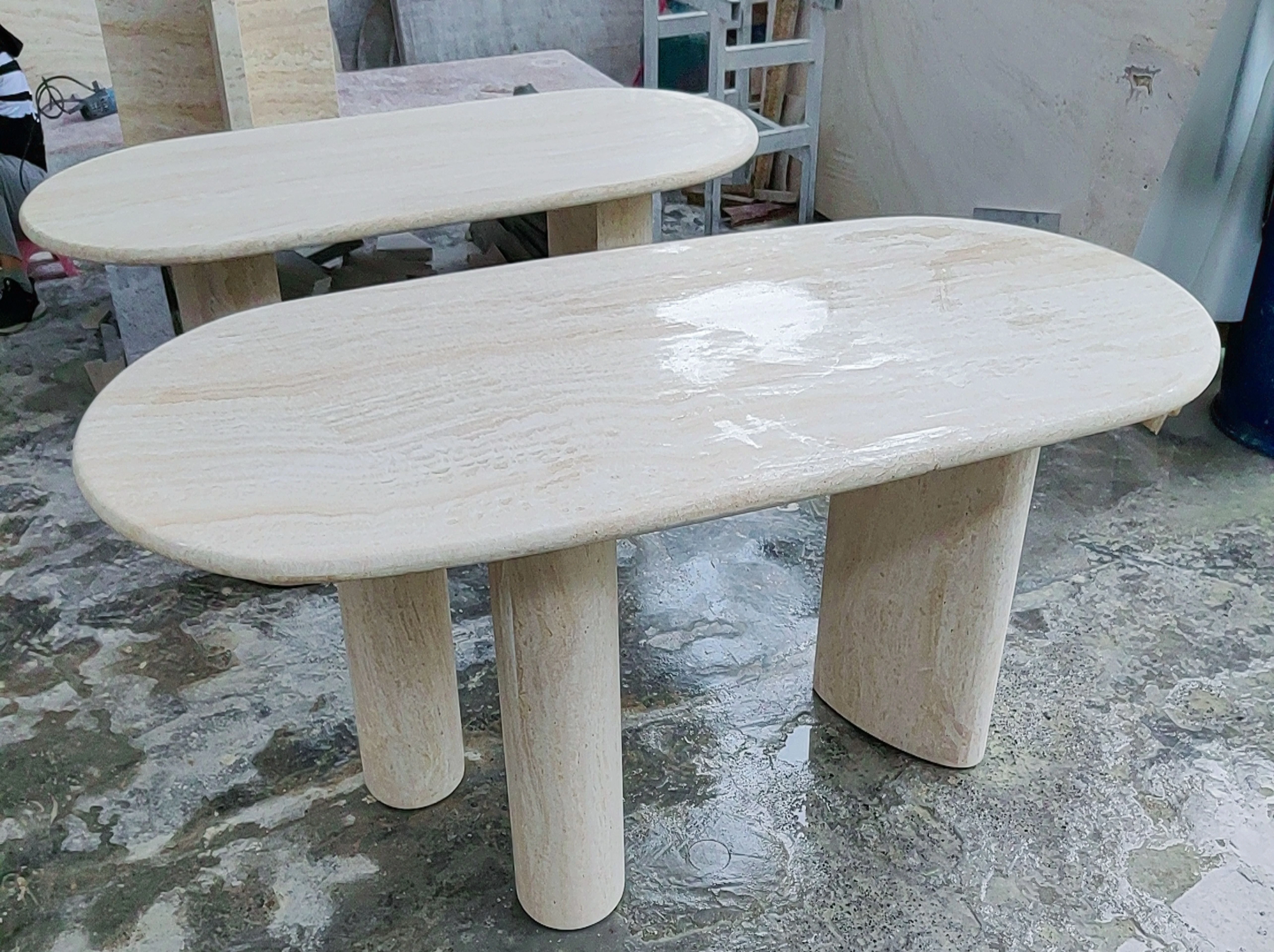 アイボリーホワイトのドットストーンダイニングテーブル - イタリアンミニマリズムで、別荘やホテルのスタイリッシュなモデルルームに最適なデザイナーズアイテム。トレンド感満載のフレンチテーブルで、洗練された食卓を演出します!