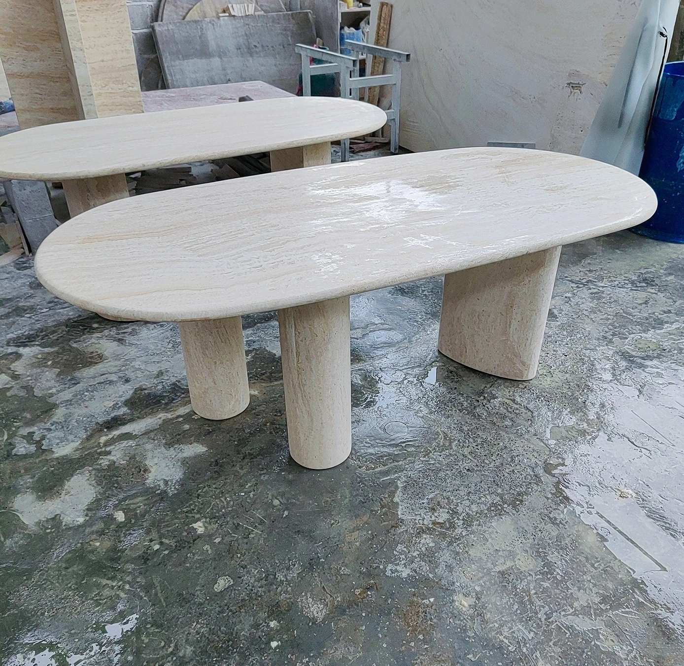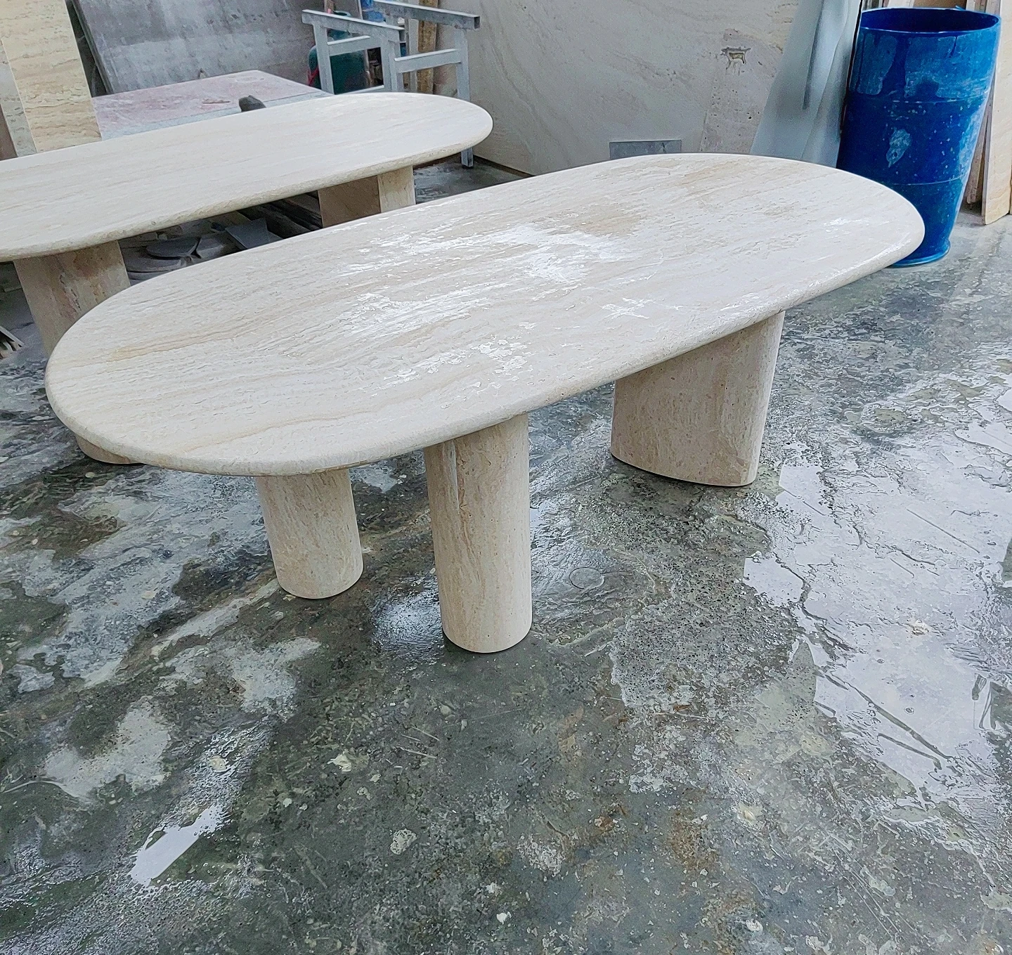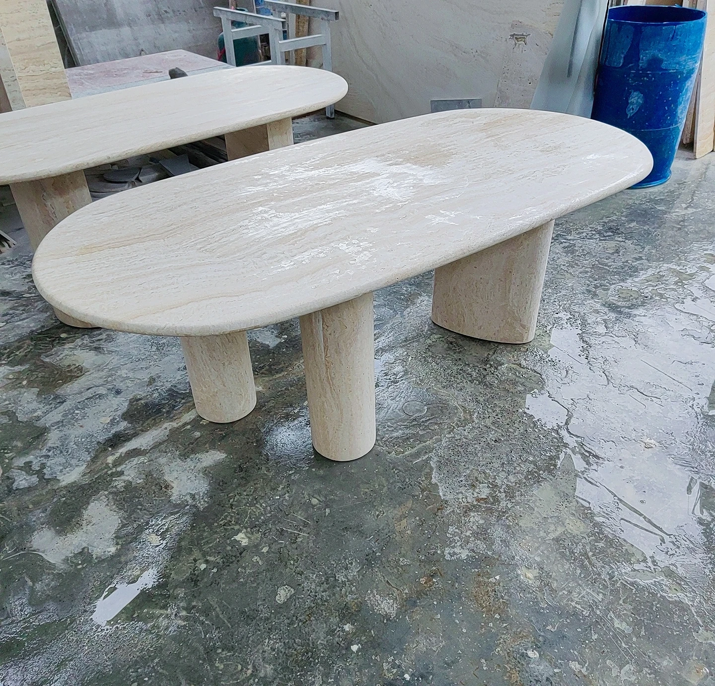 アイボリーホワイトのドットストーンダイニングテーブル - イタリアンミニマリズムで、別荘やホテルのスタイリッシュなモデルルームに最適なデザイナーズアイテム。トレンド感満載のフレンチテーブルで、洗練された食卓を演出します!