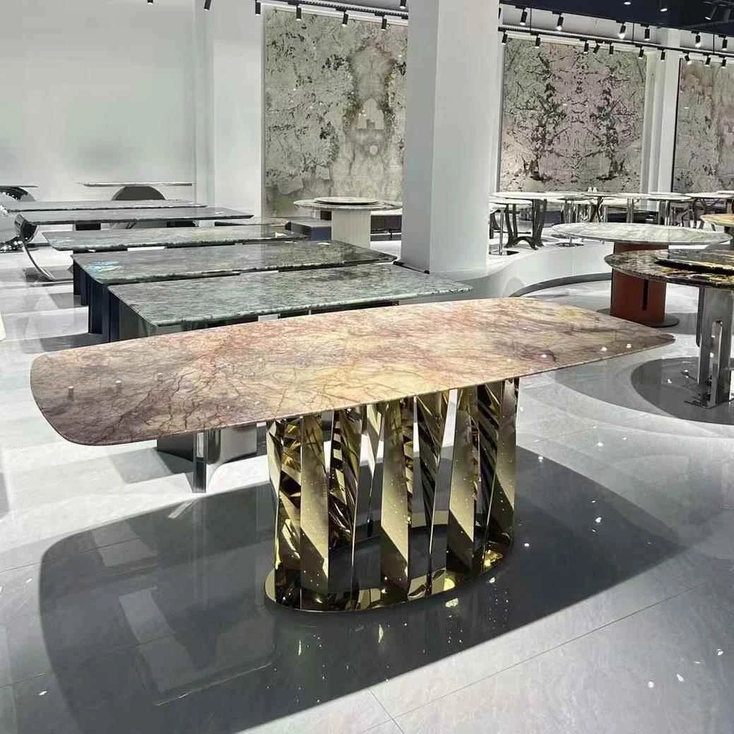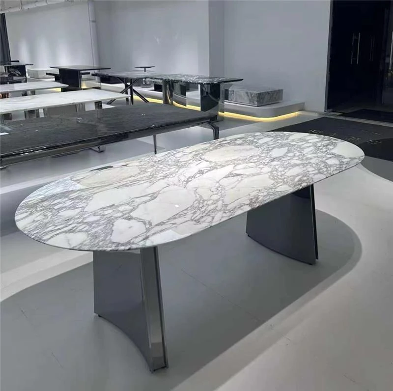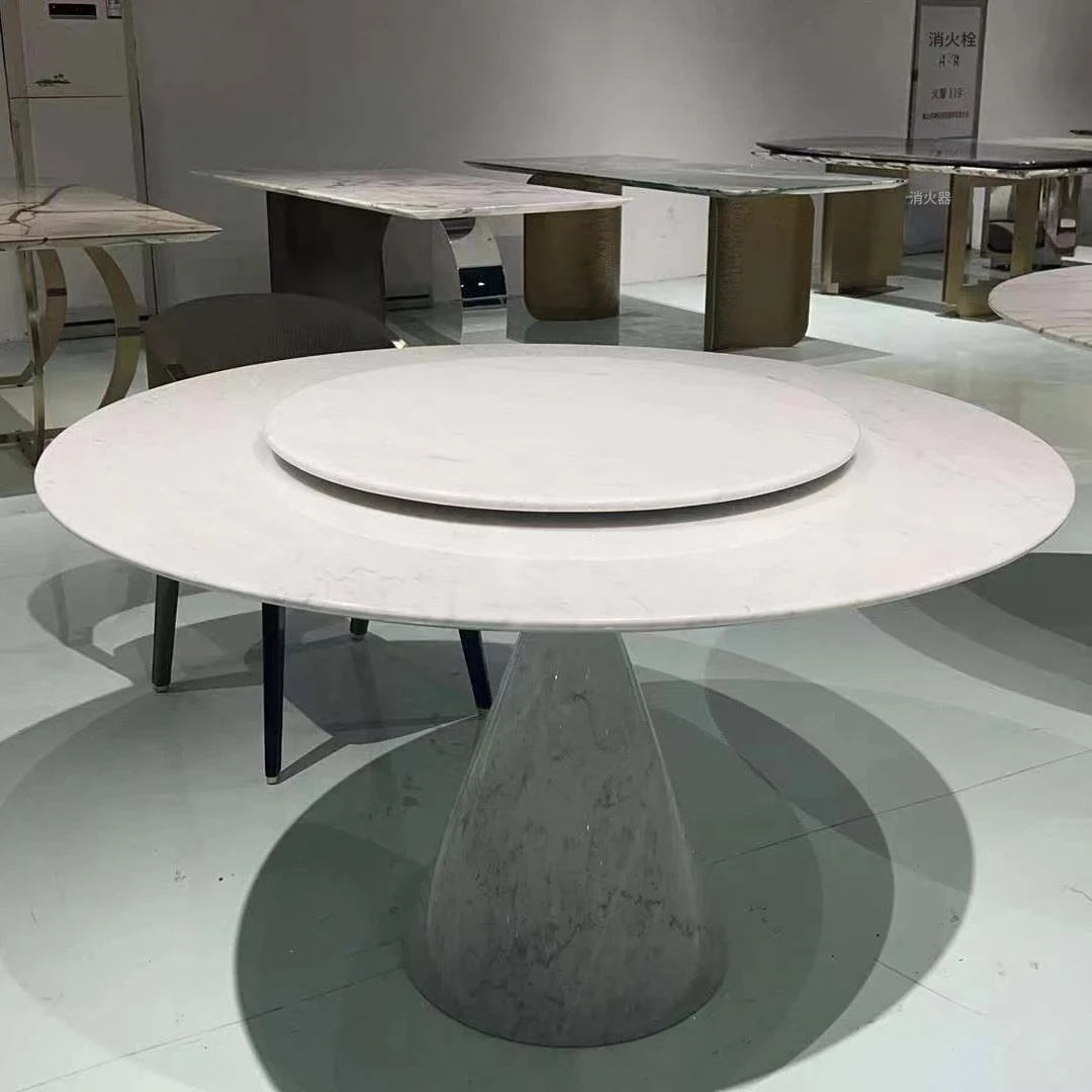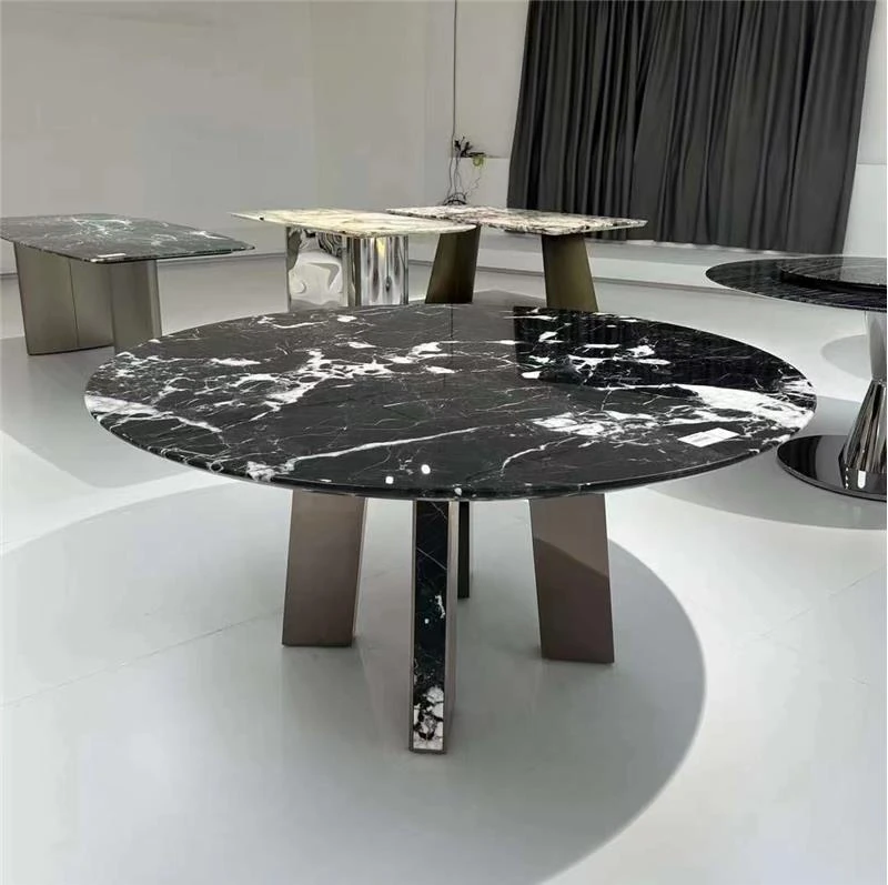 高級感溢れる天然大理石製ダイニングテーブル - モダンでシンプルなデザイン、家族や友人との特別なひとときを演出するラウンドテーブル。贅沢な食事体験をお届けします。