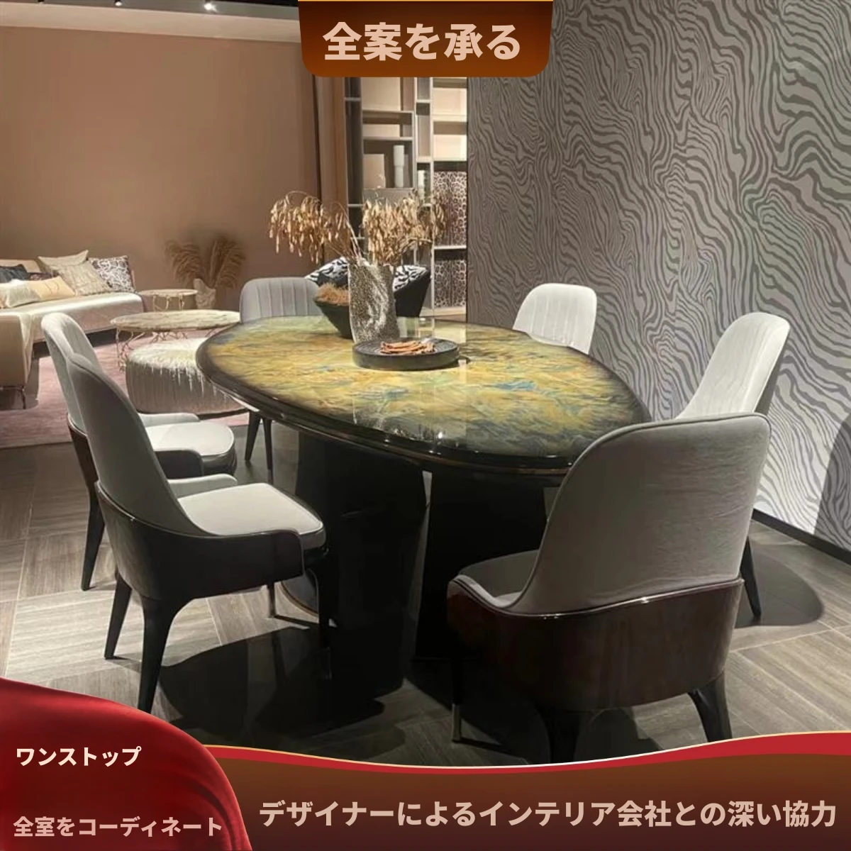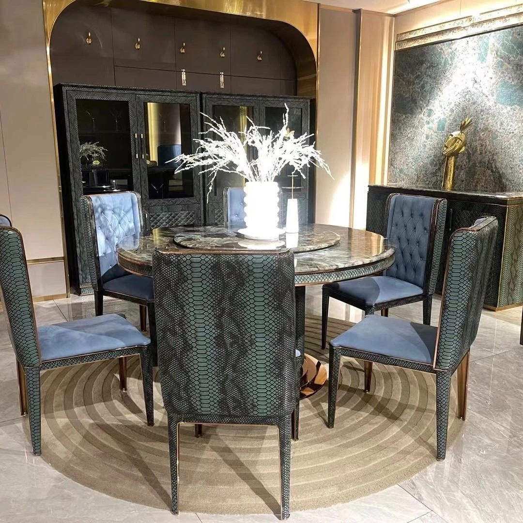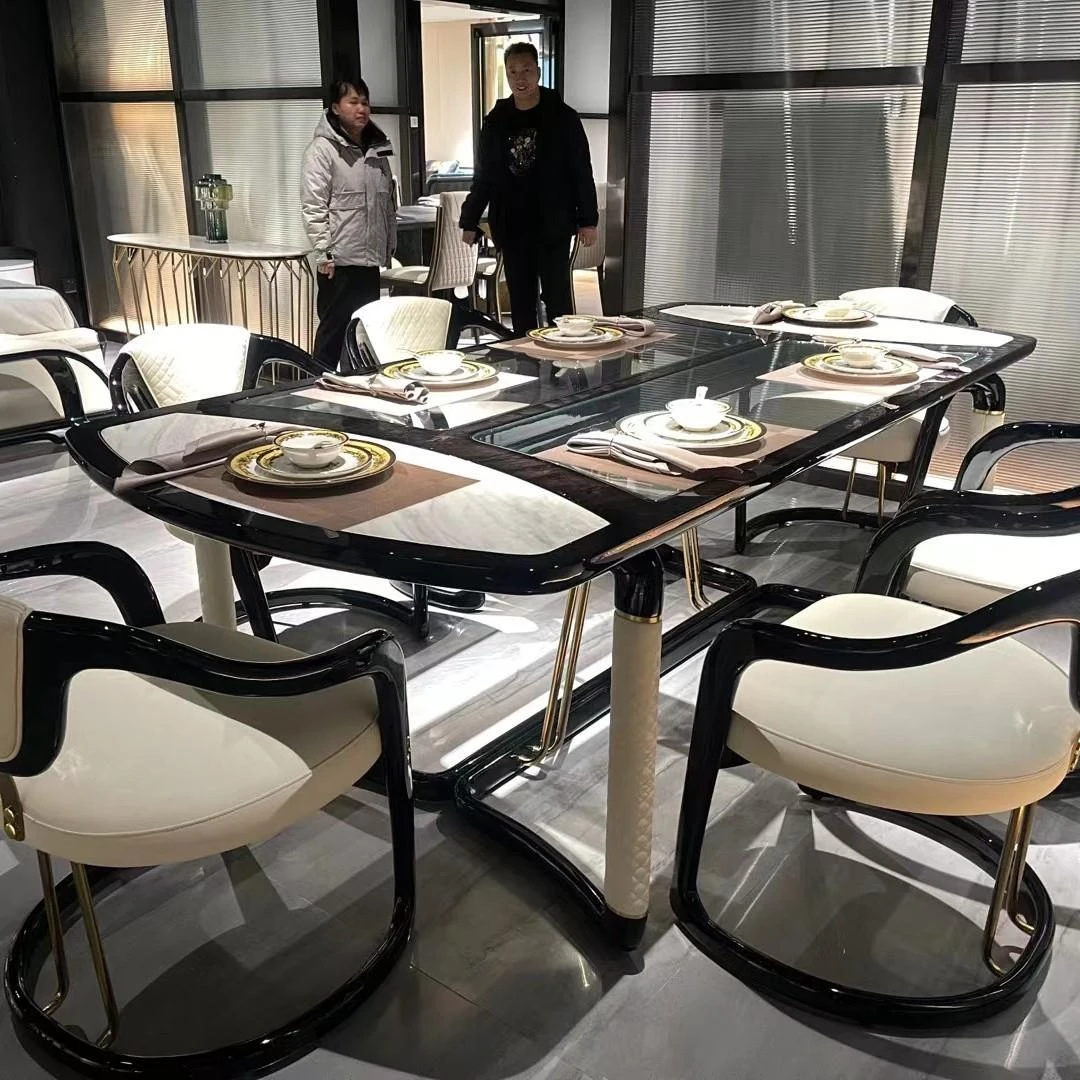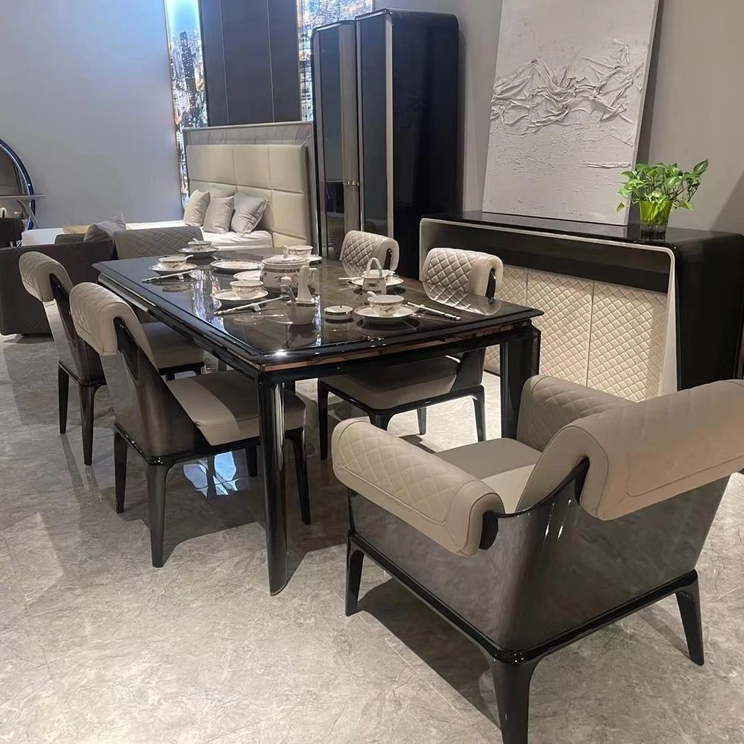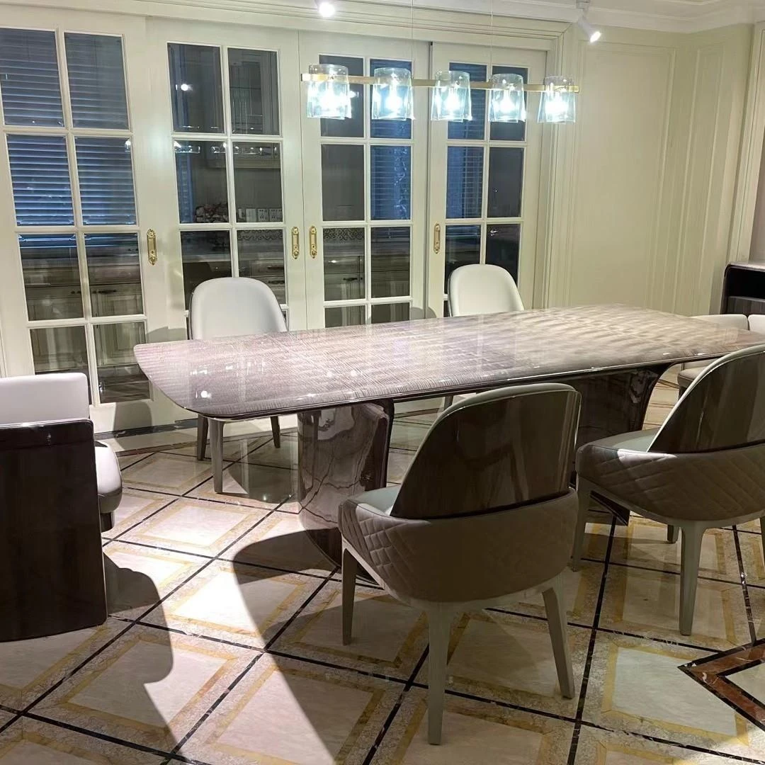 天然大理石のラグジュアリーなダイニングテーブル - 高級ヴィラや広々としたモダンな空間にぴったりのイタリアンデザイン。洗練されたスタイルで、特別なひとときを演出します。