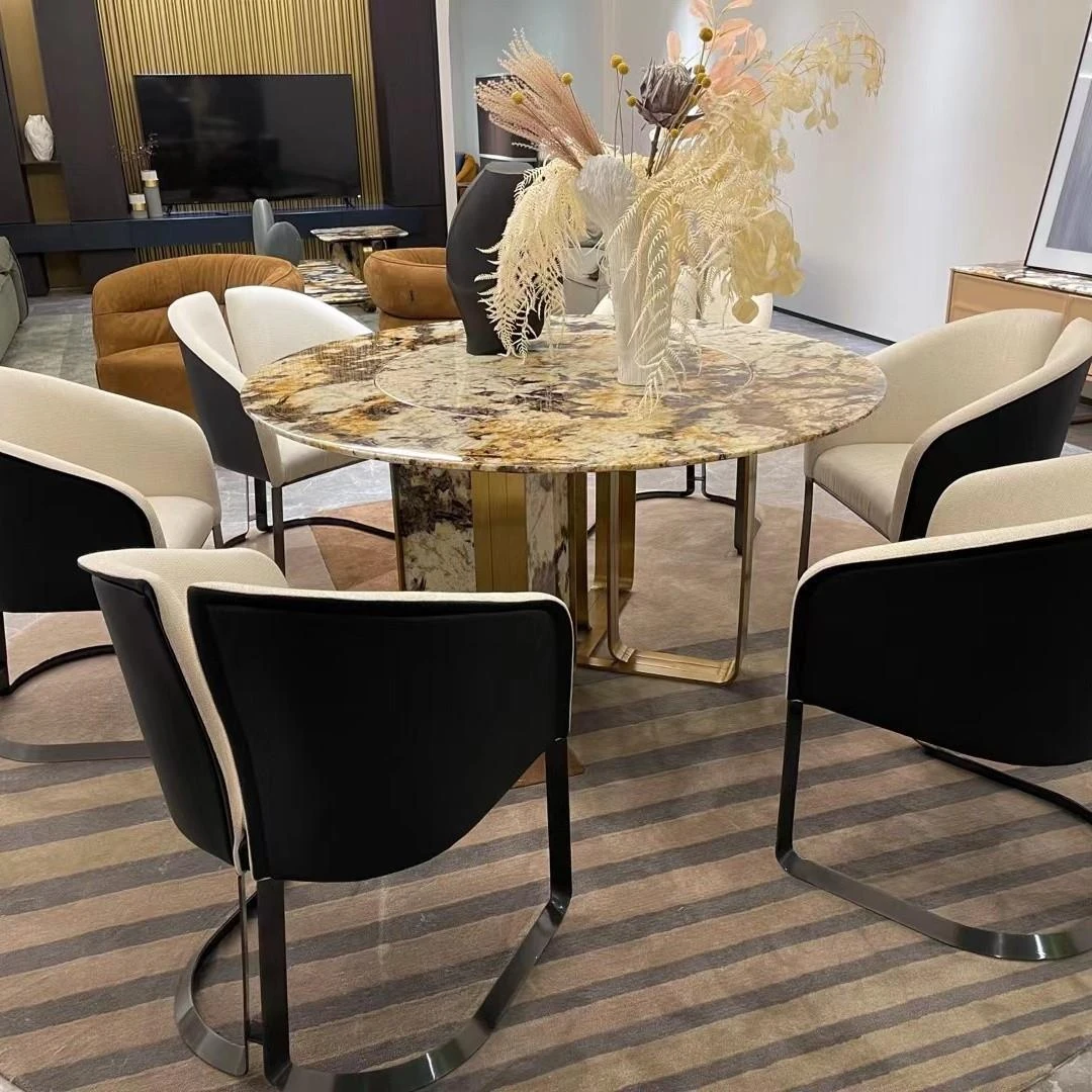 高級デザインのイタリア製天然大理石ラウンドテーブル - ヴィラや豪邸に最適なモダンファニチャーで、贅沢な暮らしを演出します。高品質で洗練されたスタイルをお楽しみください。