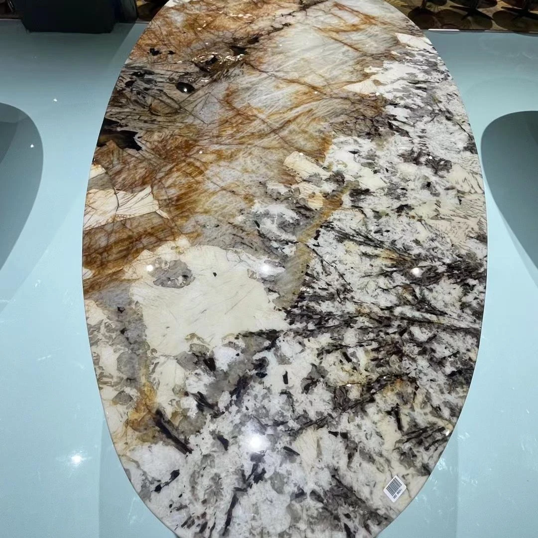 輸入:インポート高級大理石ダイニングテーブルセット - モダンな別荘用の天然石製品!ラグジュアリーなソフトインテリアで、居心地の良い空間を演出。優雅なデザインで特別な食事体験を提供します。
