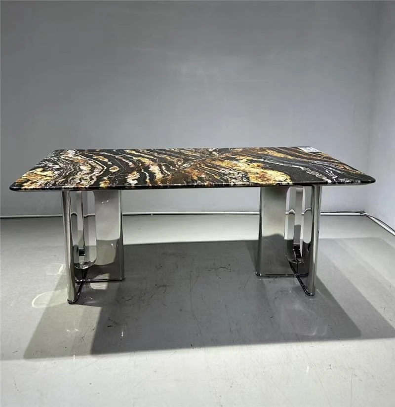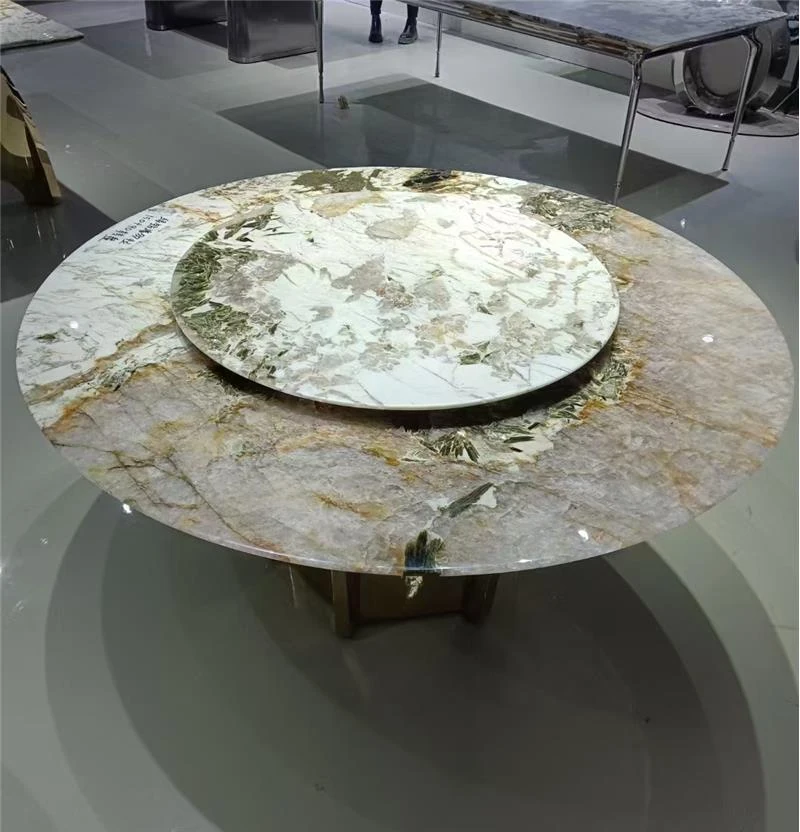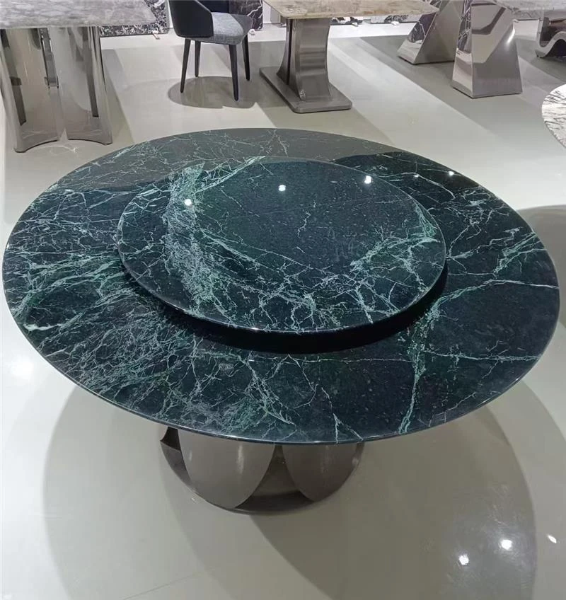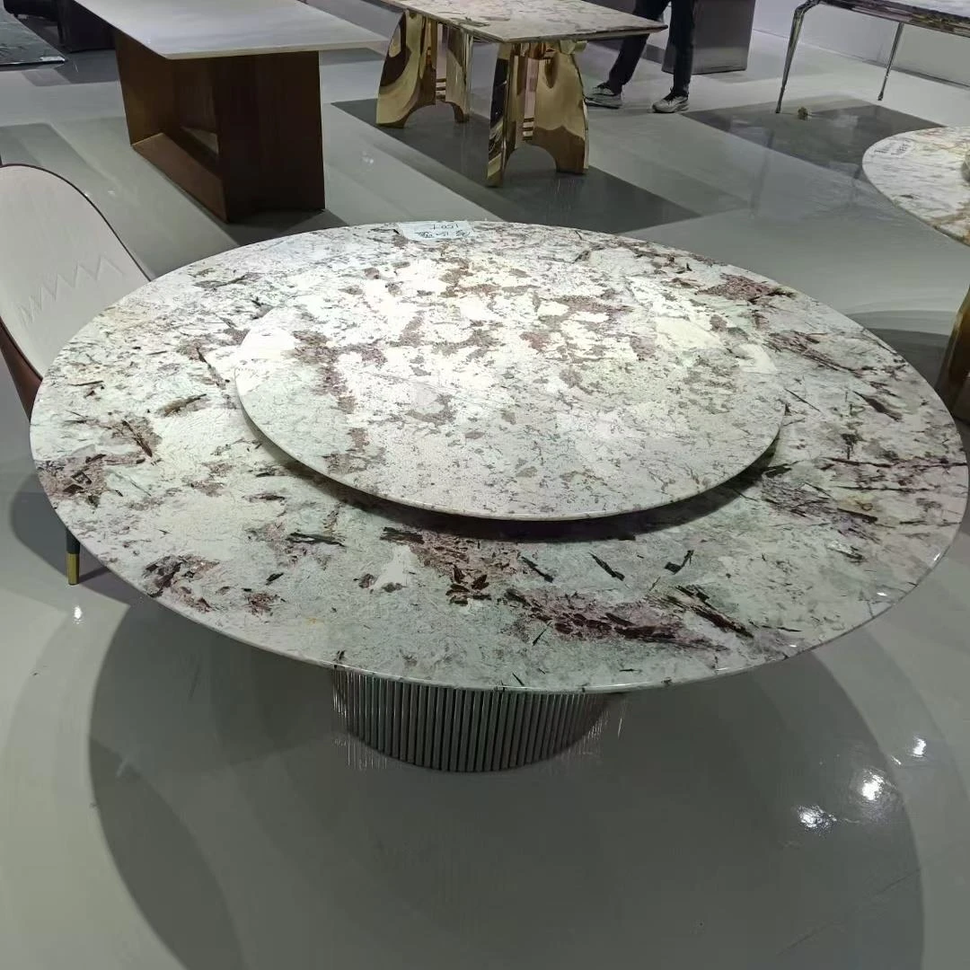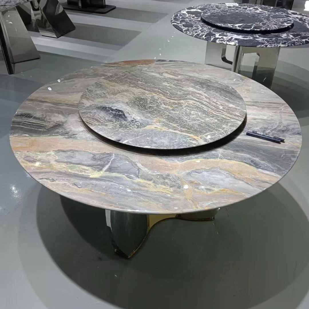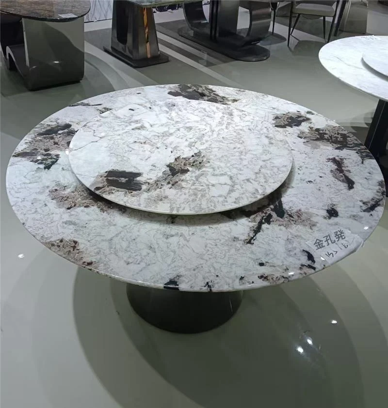 ホテル輸入の高級大理石ダイニングテーブルセット - 天然素材使用のラウンドテーブル、別荘や家庭にぴったりのモダンで上質なデザイン。食事の時間を贅沢に演出します!